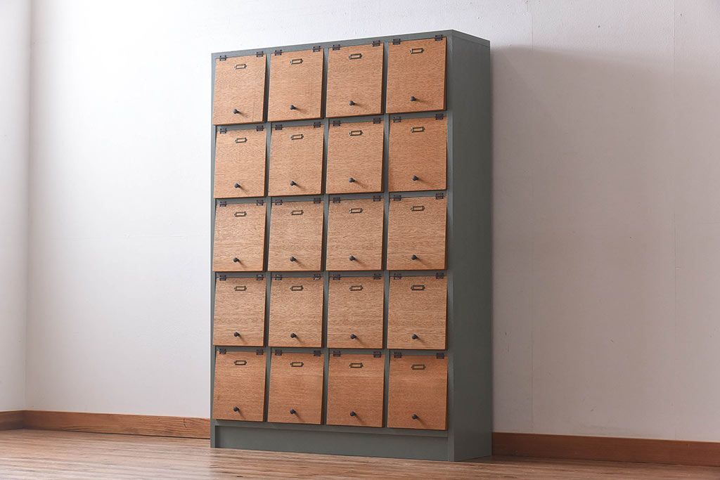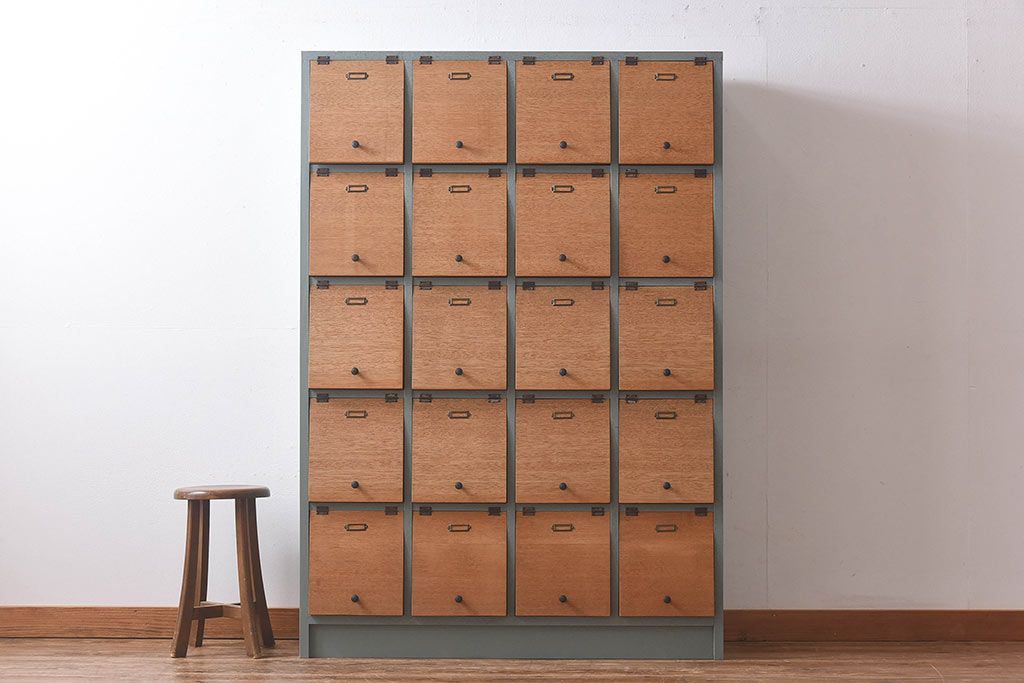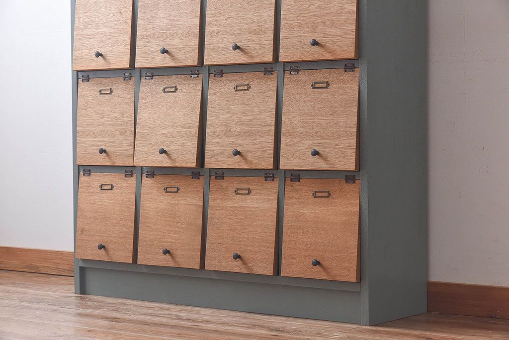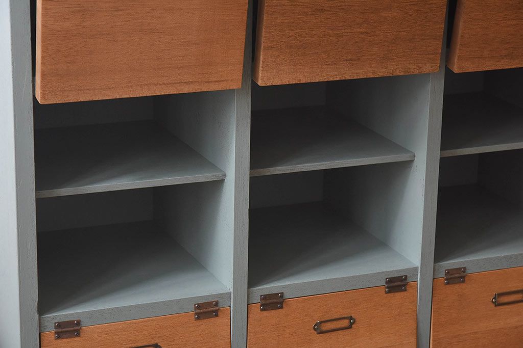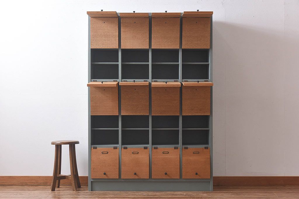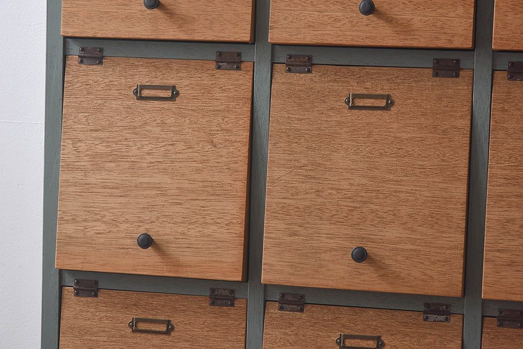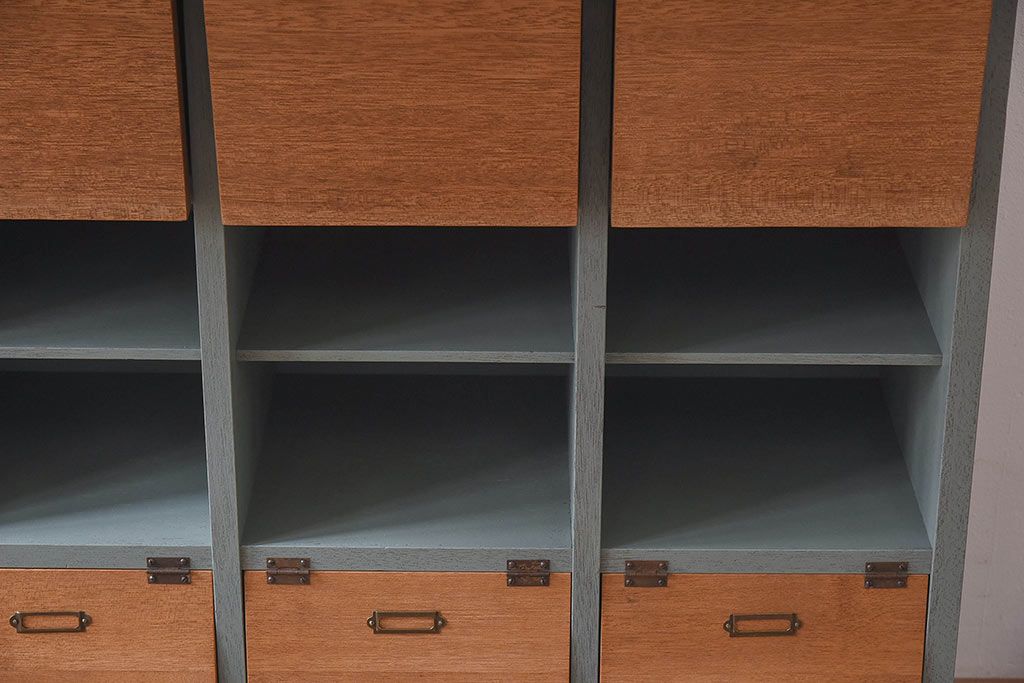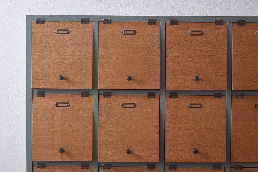 ペイント家具 ラフジュ工房オリジナル 5×4 淡いペイントカラーのパタパタマス目棚(戸棚、下駄箱)