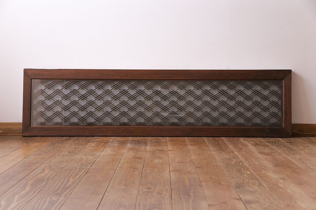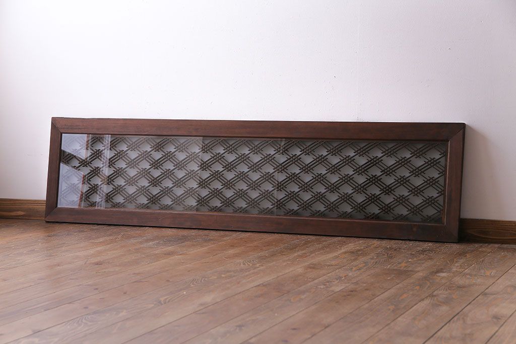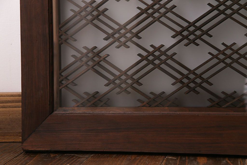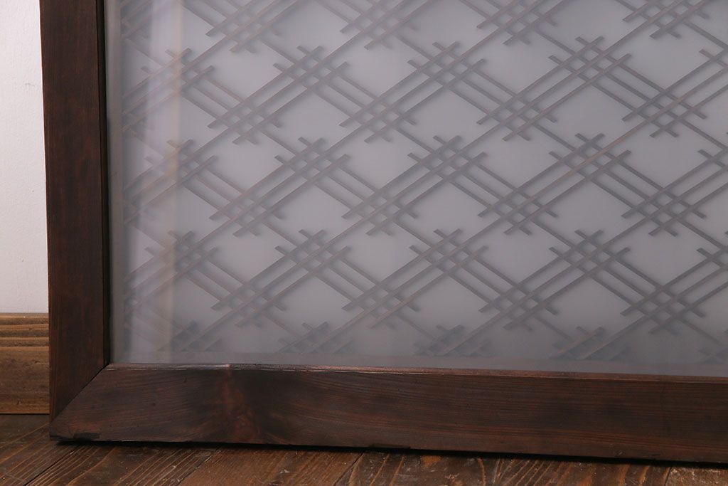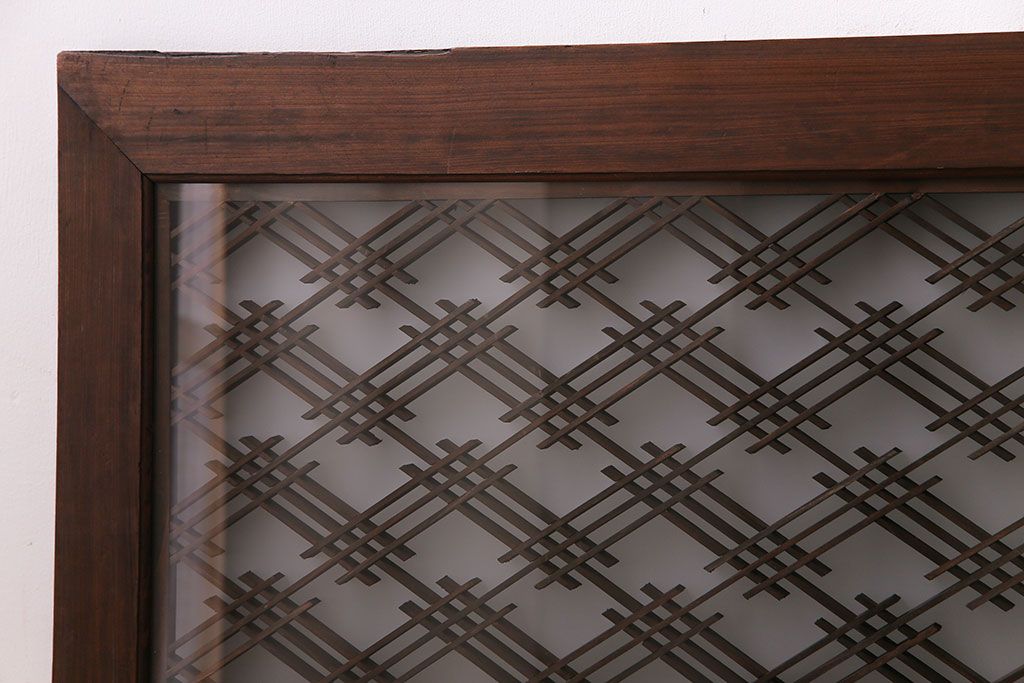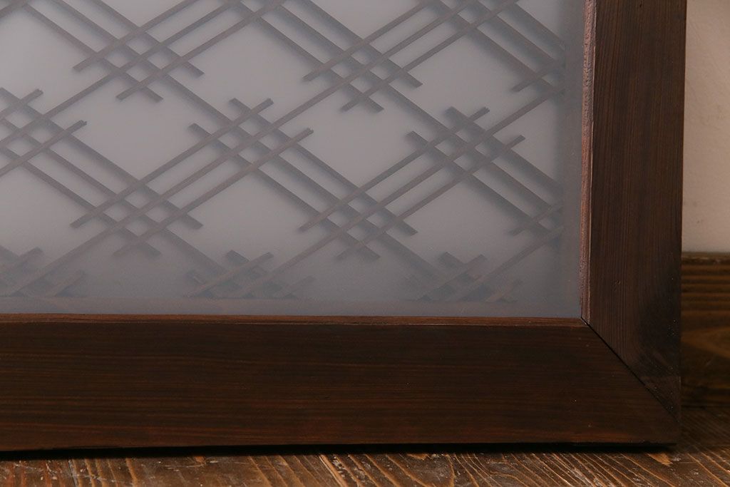 幾何学的なデザインが魅力の割菱組子欄間(ガラス欄間、はめ殺し戸)(2)です。 割菱の幾何学的なデザインが魅力の 昭和初期の組子欄間です。 繊細な雰囲気が漂う欄間を取り入れれば お部屋もひとつ上の演出ができますよ。 裏側に曇りガラスが入った両面ガラスなので、 お手入れもしやすいです。 和モダンなお部屋のアクセントにもおすすめです。 使用上問題のあるダメージはありません。 ■框サイズ 上65mm/左55mm/右55mm/下55mm ■重量 約9kg