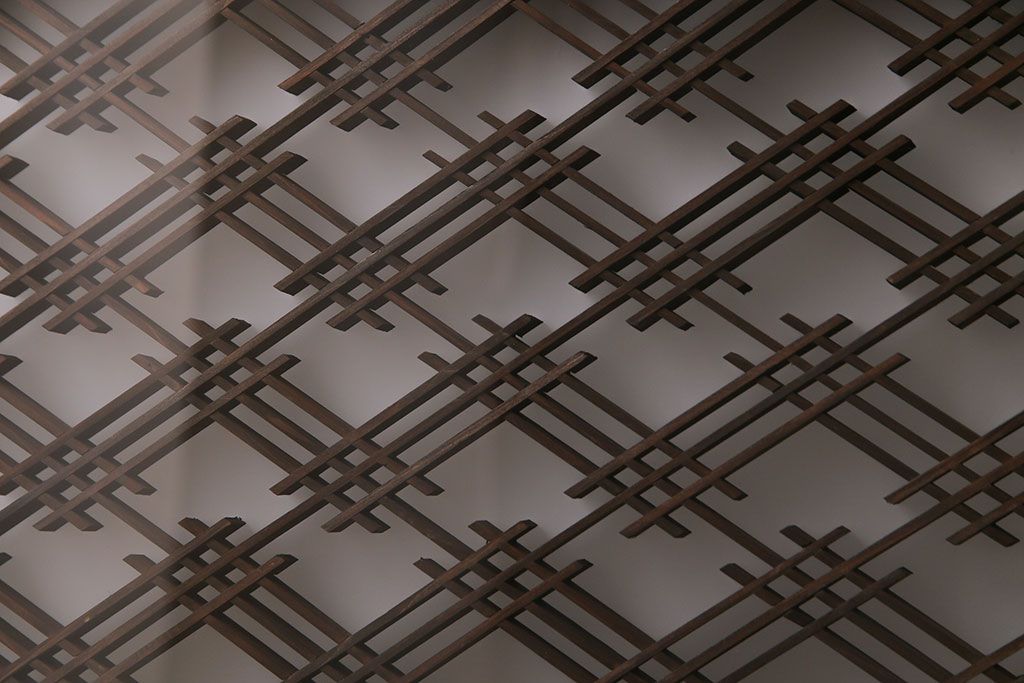幾何学的なデザインが魅力の割菱組子欄間(ガラス欄間、はめ殺し戸)(2)