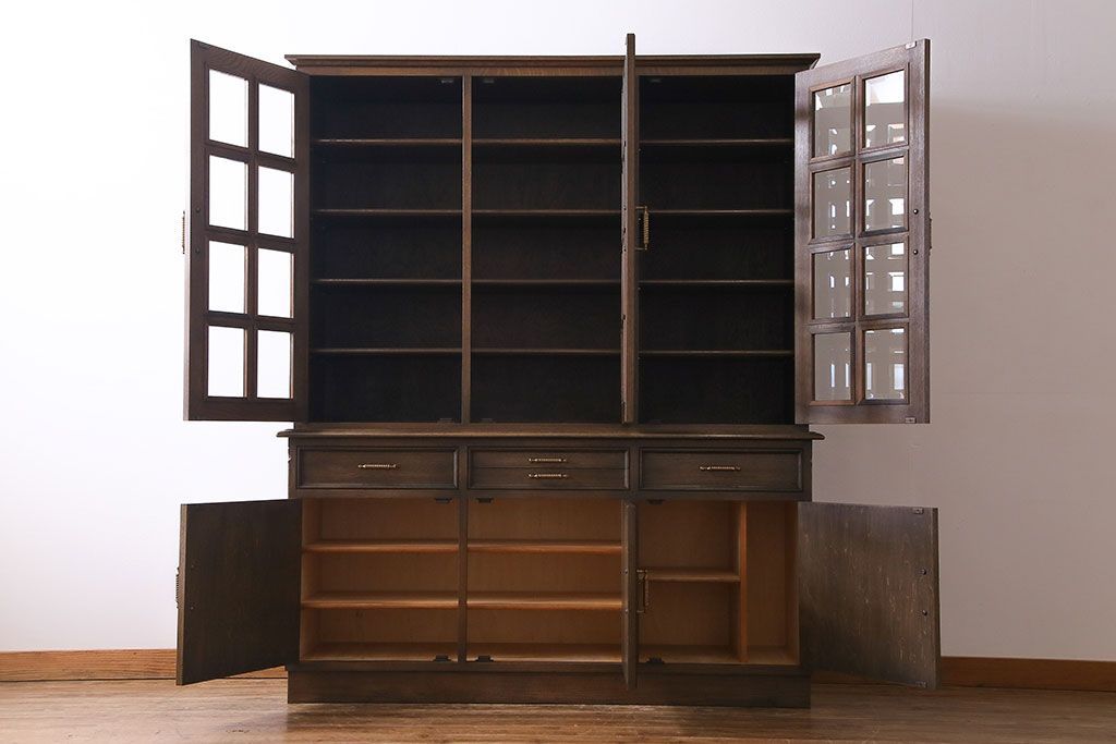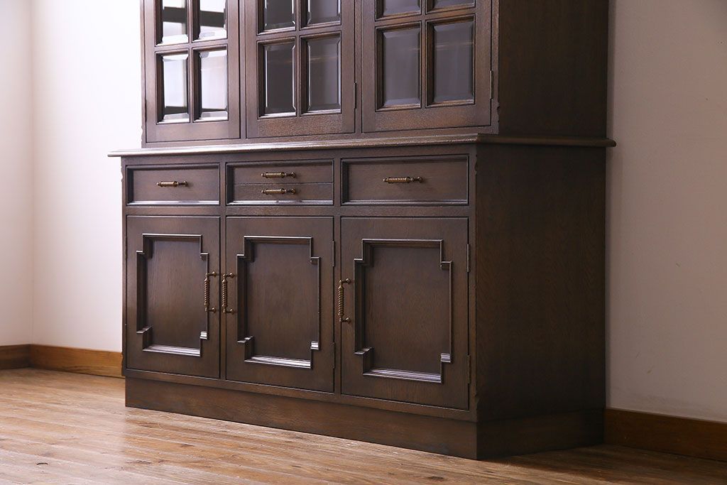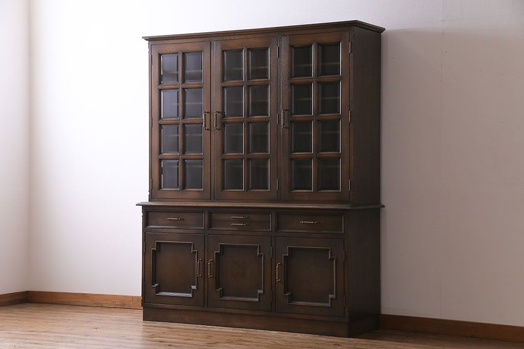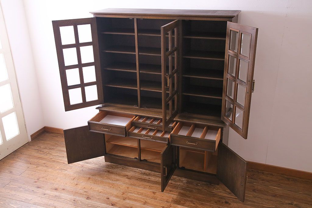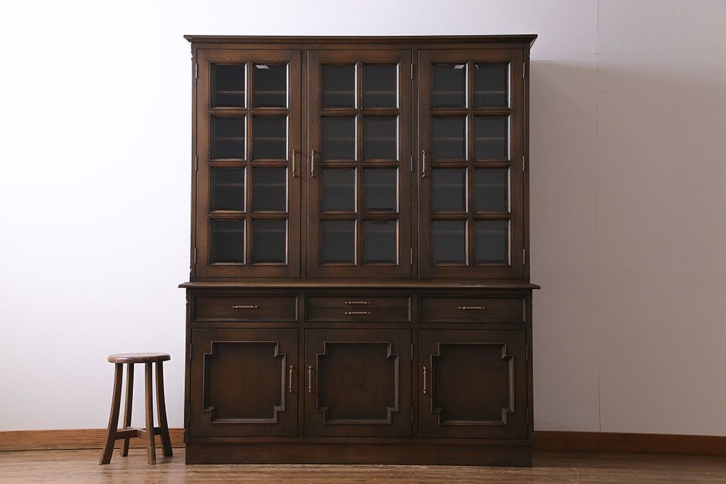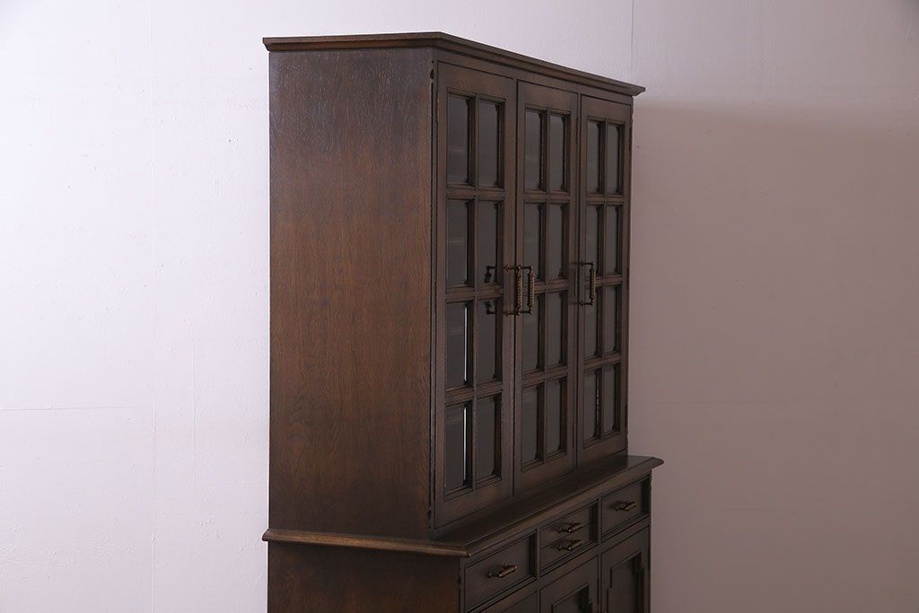 ビンテージ 永田良介商店 気品あふれる佇まいの格子型3枚扉食器棚(カップボード、飾り棚、収納棚、ヴィンテージ)(定価約126万円)(1)