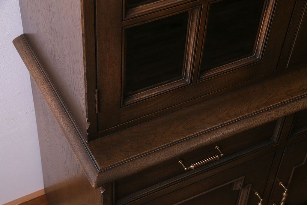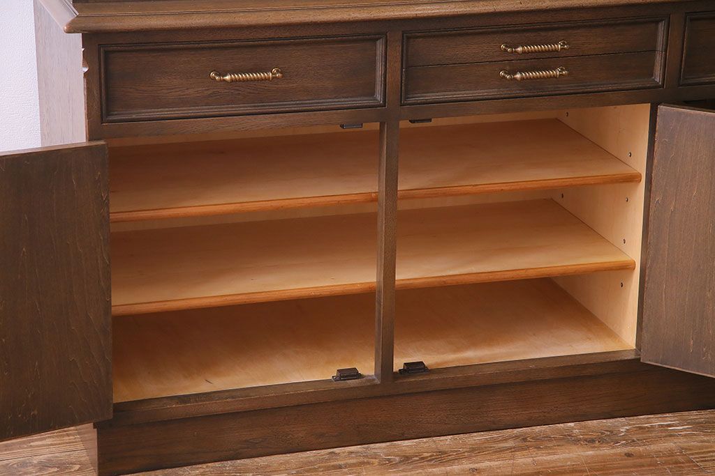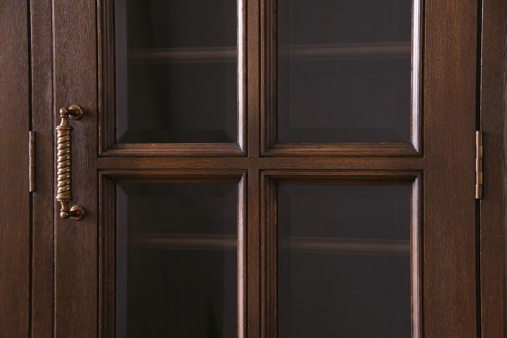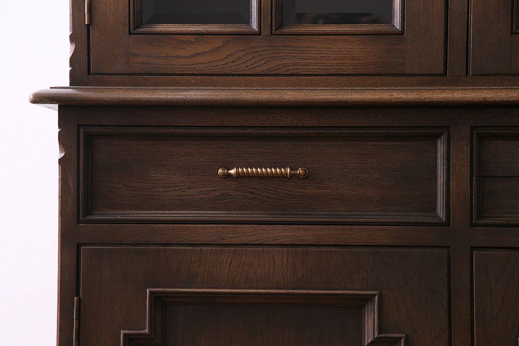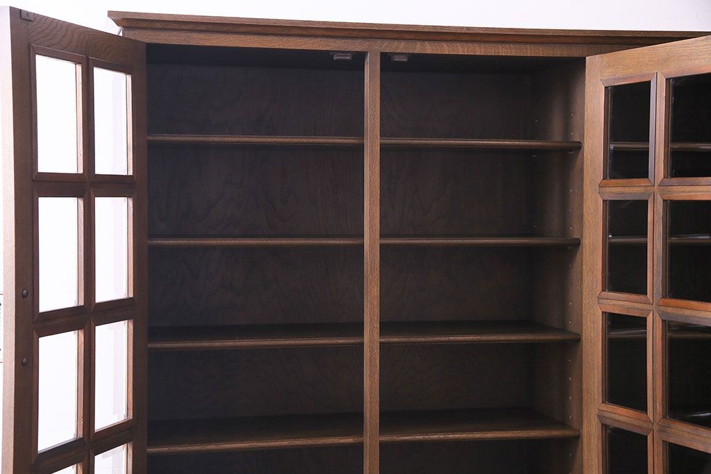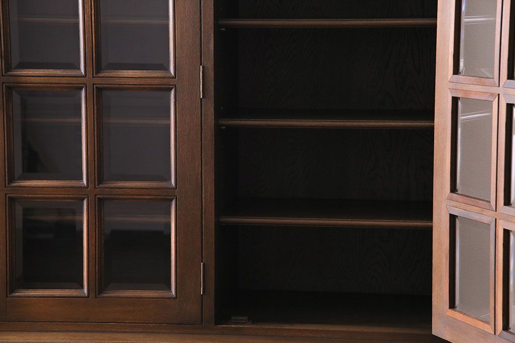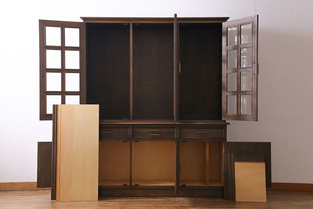 ビンテージ 永田良介商店 気品あふれる佇まいの格子型3枚扉食器棚(カップボード、飾り棚、収納棚、ヴィンテージ)(定価約126万円)(1)