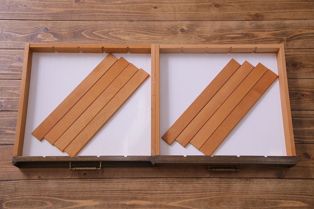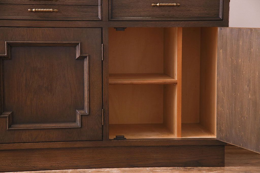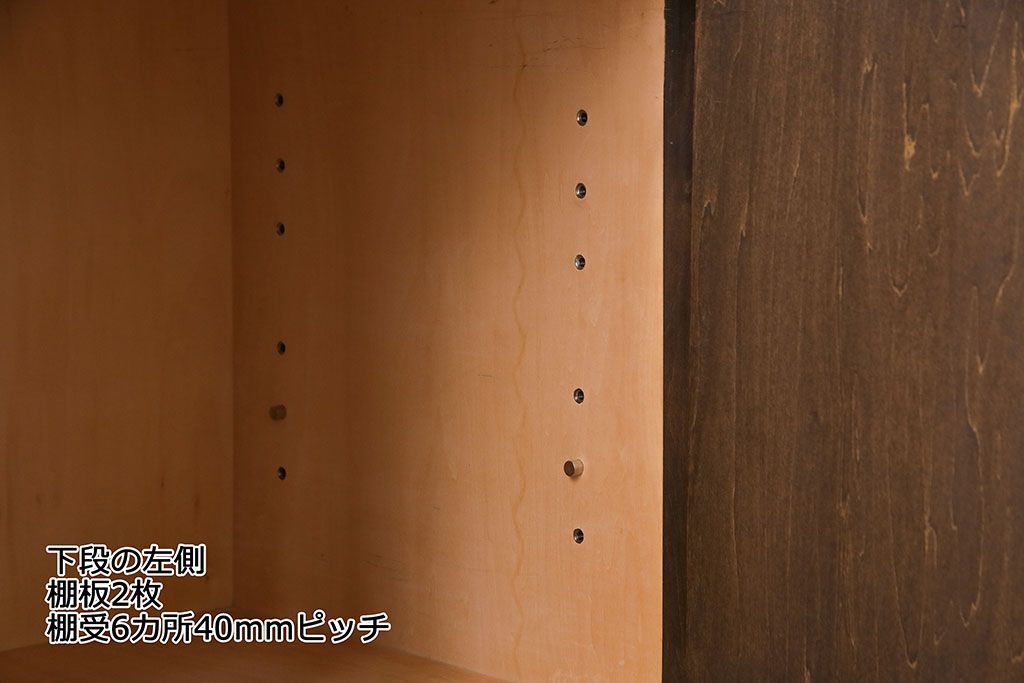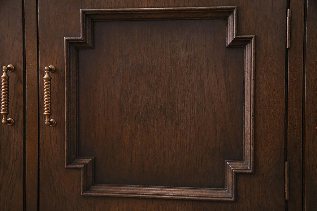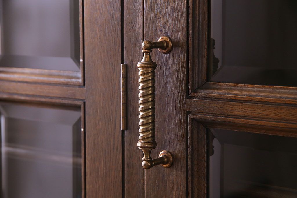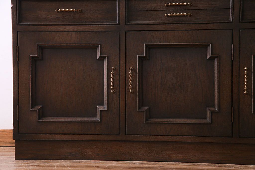 ビンテージ 永田良介商店 気品あふれる佇まいの格子型3枚扉食器棚(カップボード、飾り棚、収納棚、ヴィンテージ)(定価約126万円)(1)