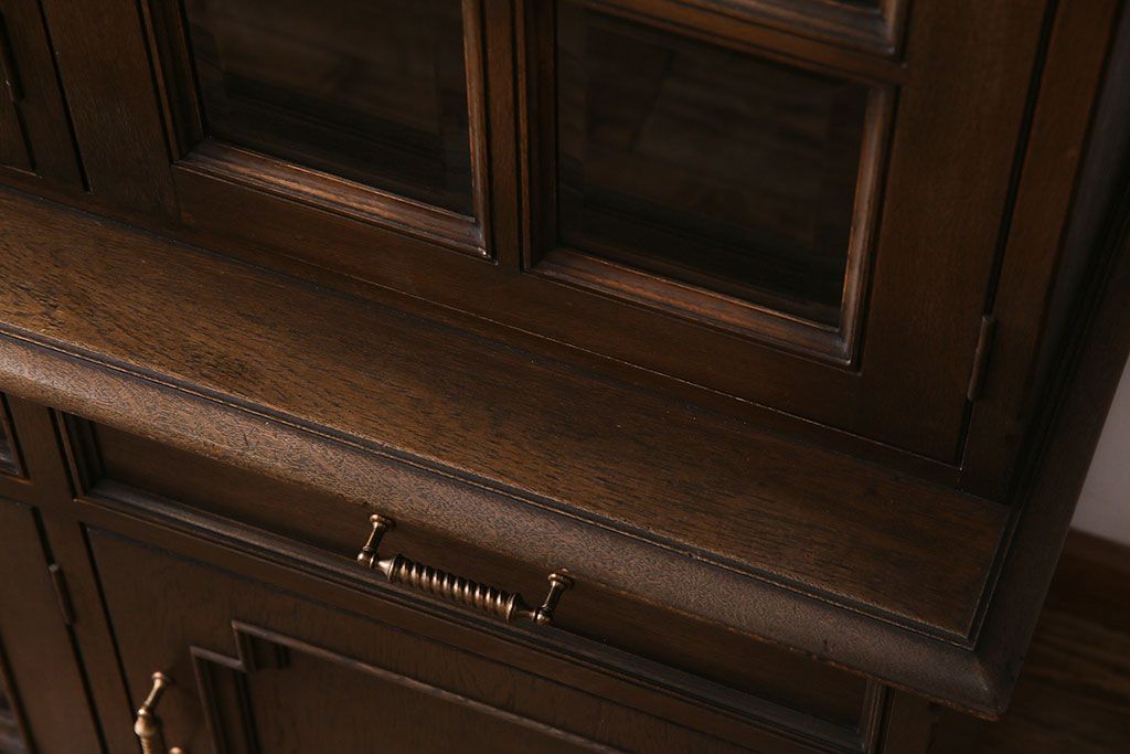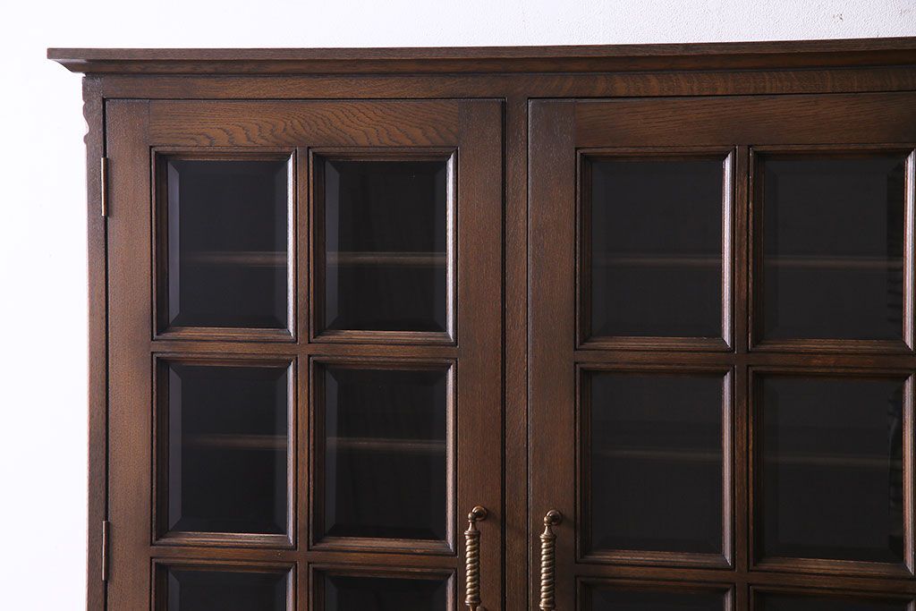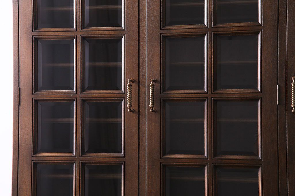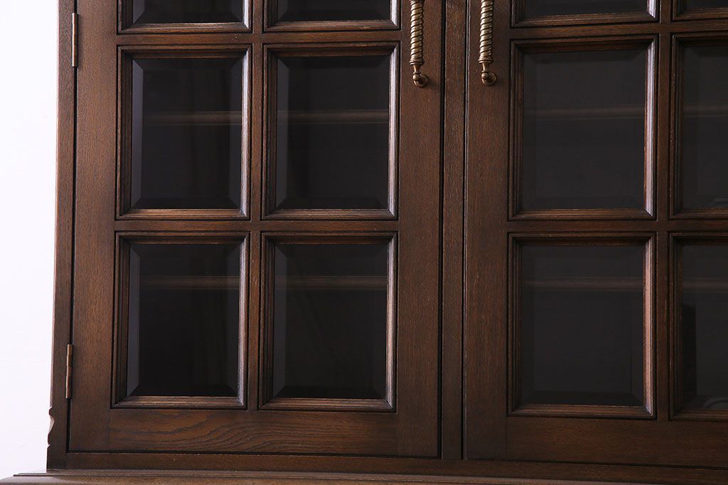 ラフジュ工房> キャビネット・戸棚> 食器棚・カップボード > ビンテージ 永田良介商店 気品あふれる佇まいの格子型3枚扉食器棚(カップボード、飾り棚、収納棚、ヴィンテージ)(定価約126万円)(1)