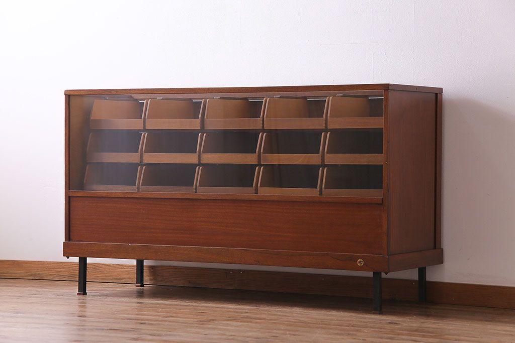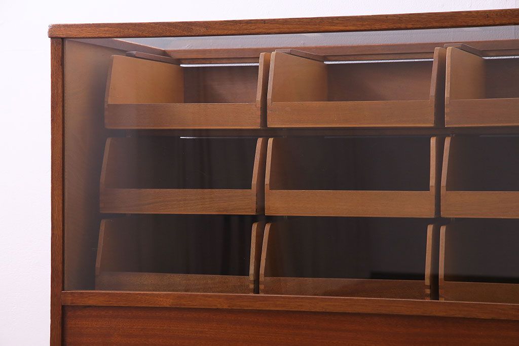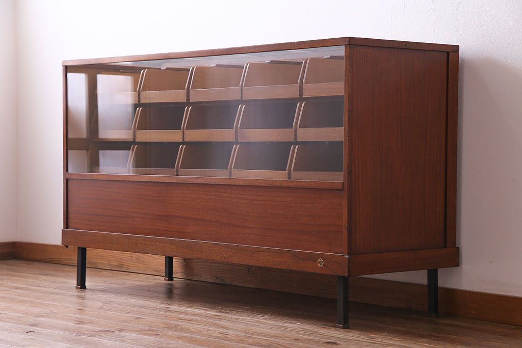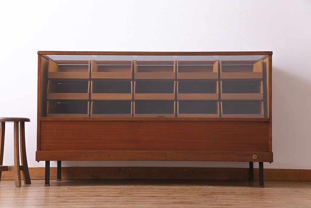 ラフジュ工房> 店舗什器 > イギリスビンテージ 美品 チーク材 おしゃれで収納力も充実したシャツケース(ガラスケース、ショーケース)