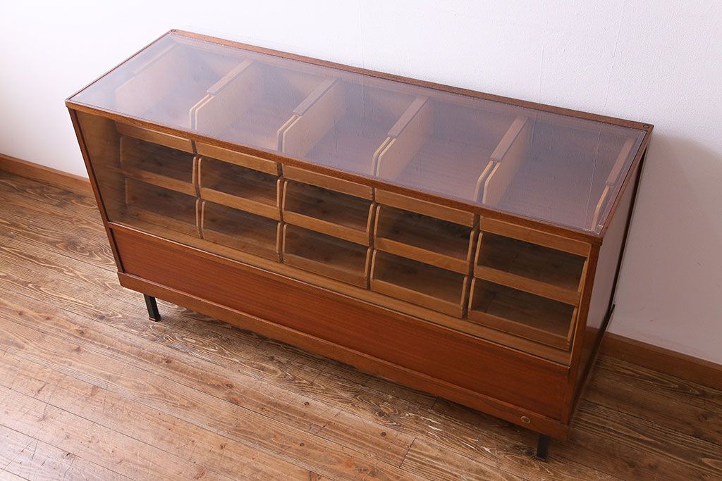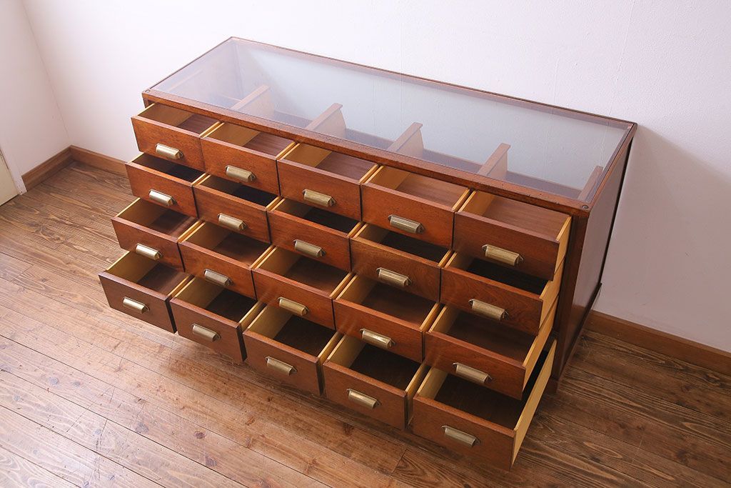 ラフジュ工房> チェスト・引き出し > イギリスビンテージ 美品 チーク材 おしゃれで収納力も充実したシャツケース(ガラスケース、ショーケース)