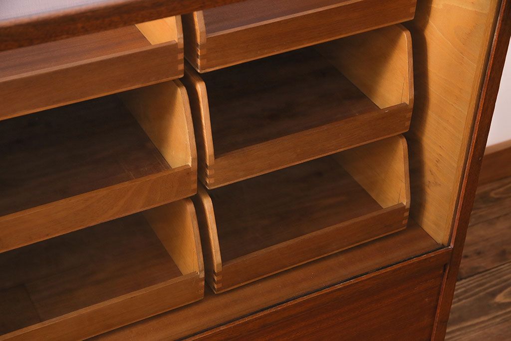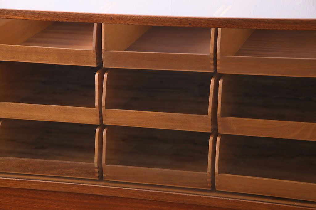 イギリスビンテージ 美品 チーク材 おしゃれで収納力も充実したシャツケース(ガラスケース、ショーケース)