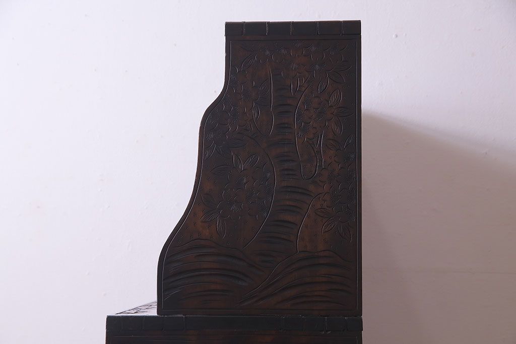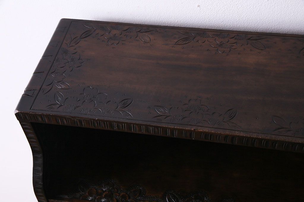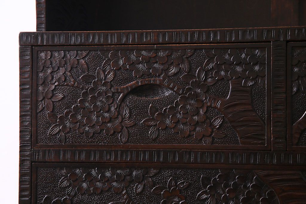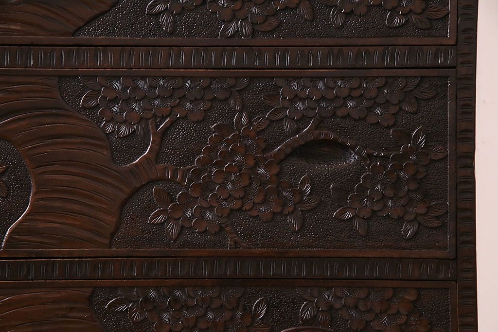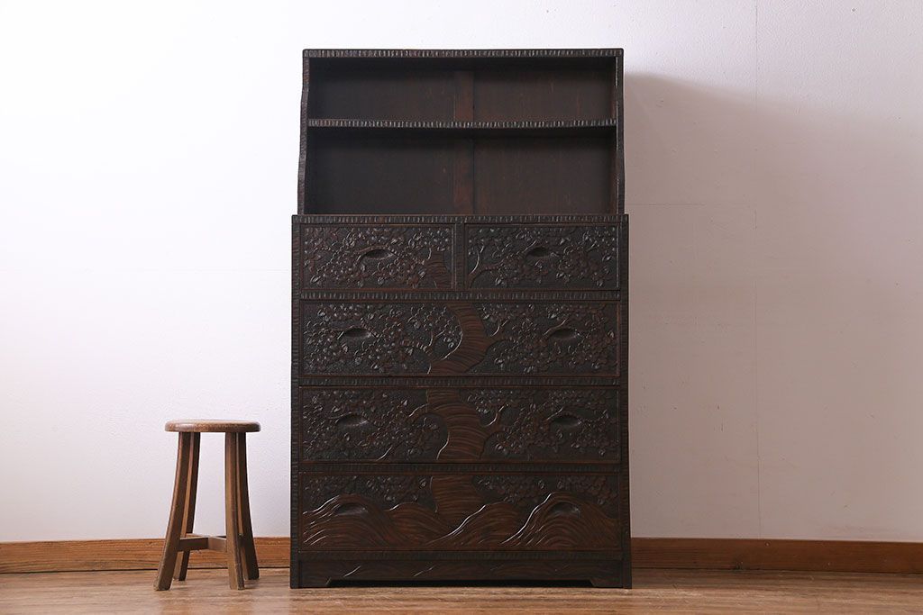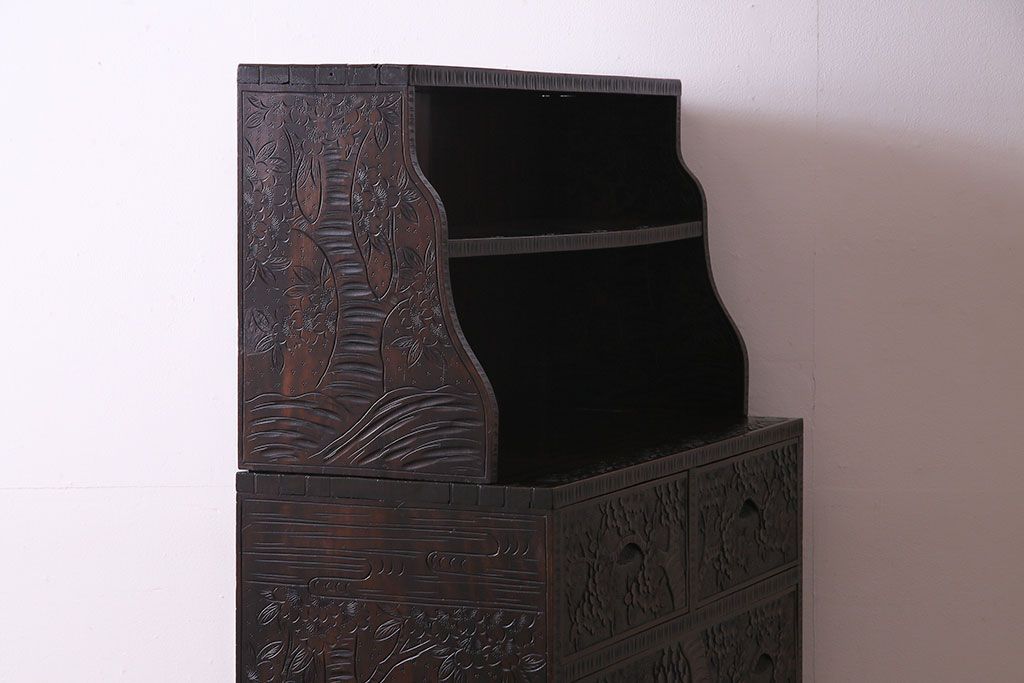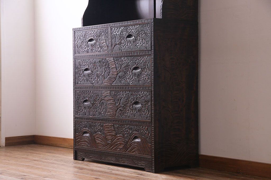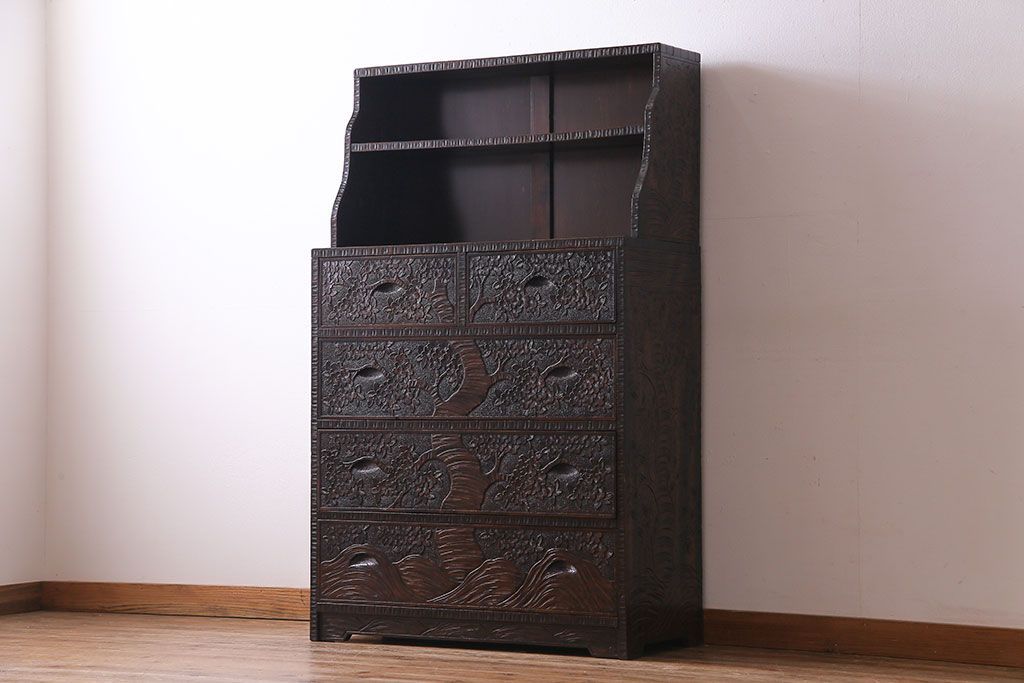 中古美品 伝統工芸 軽井沢彫り 繊細な彫りが豪華さを演出する棚付きチェスト(衣装箪笥、引き出し)