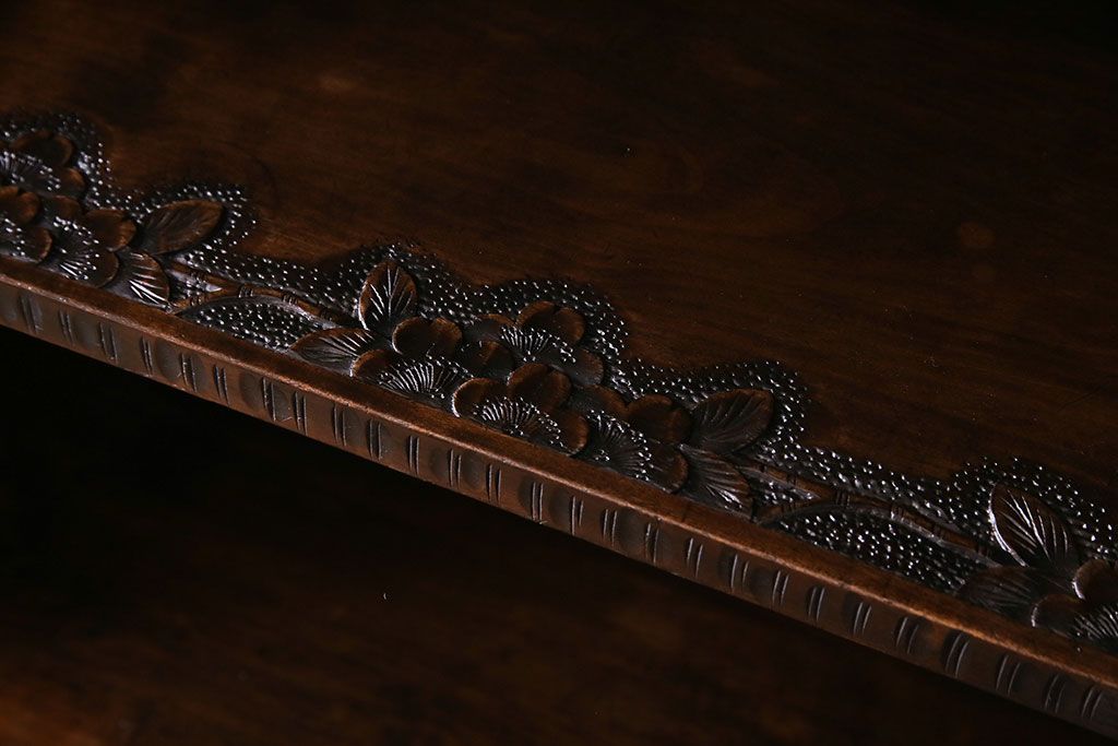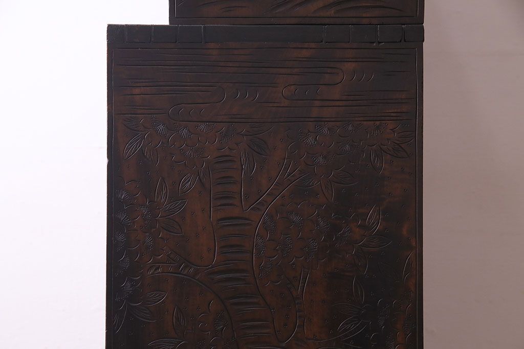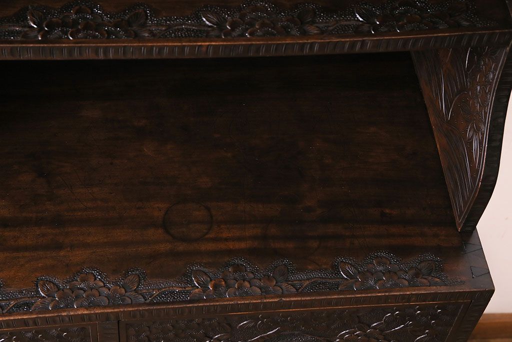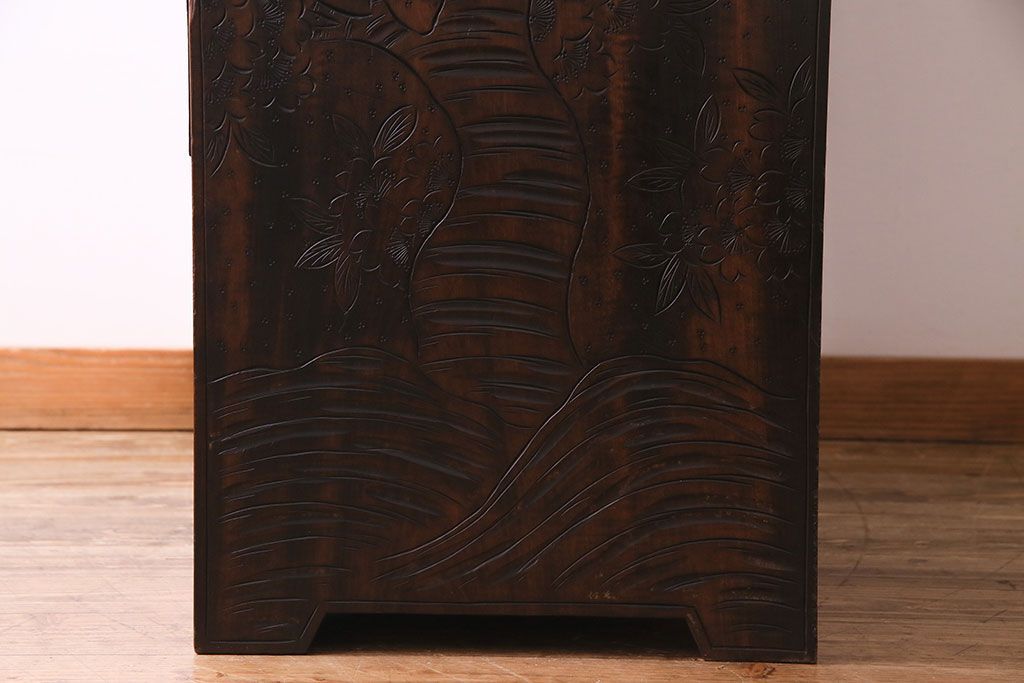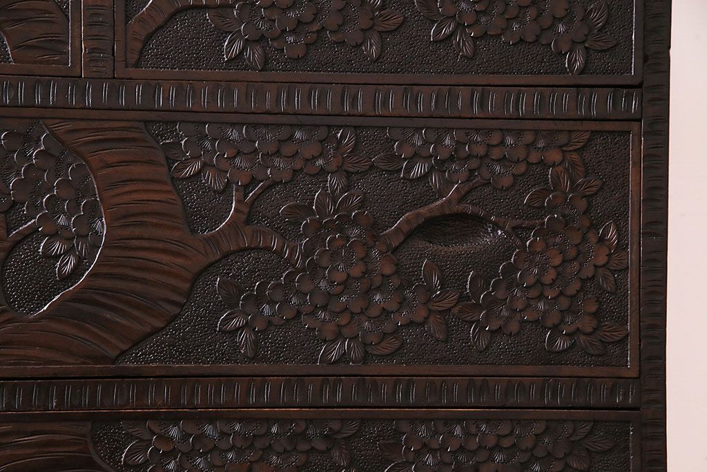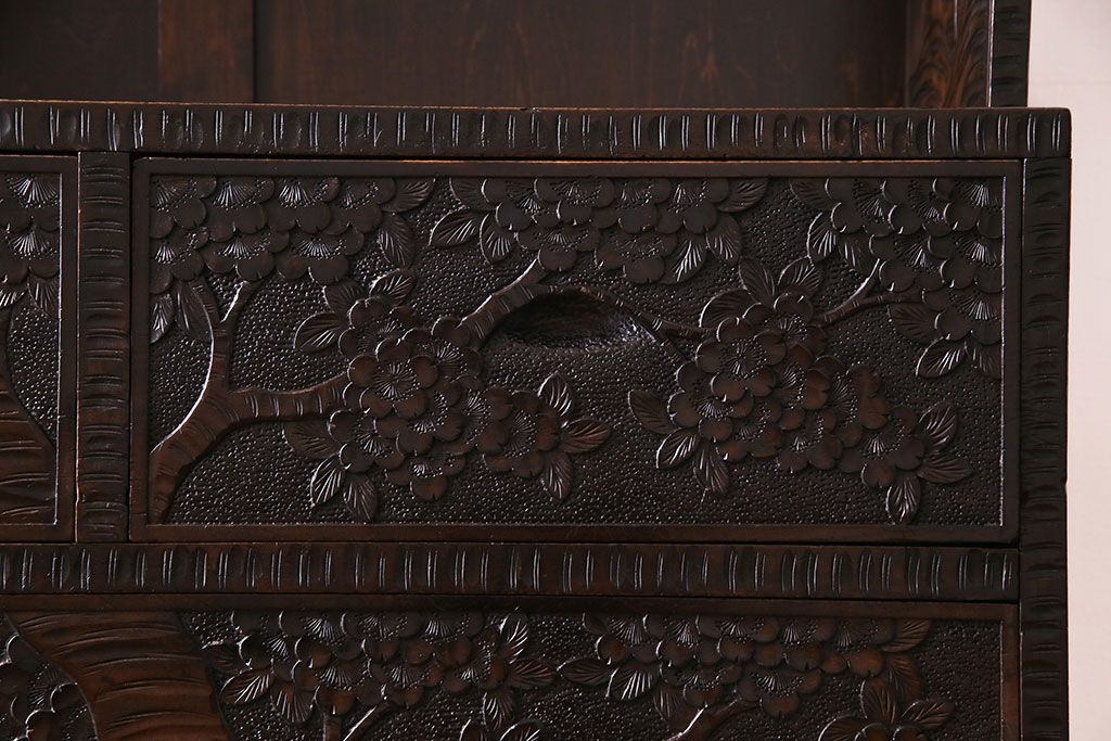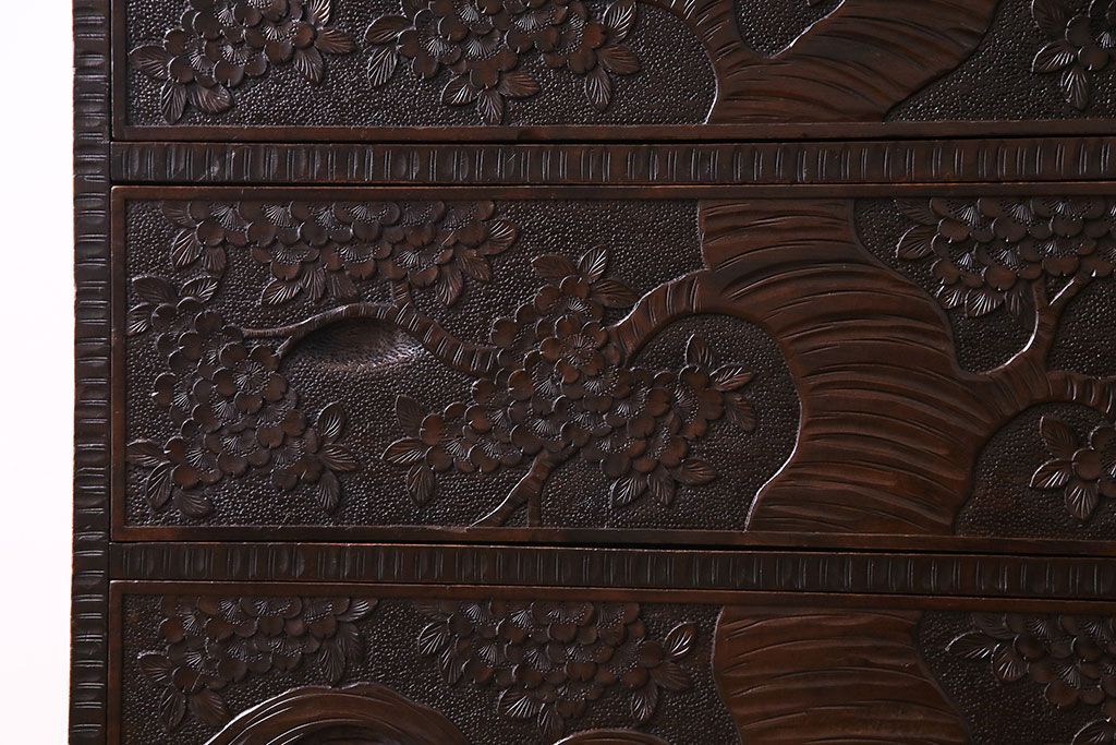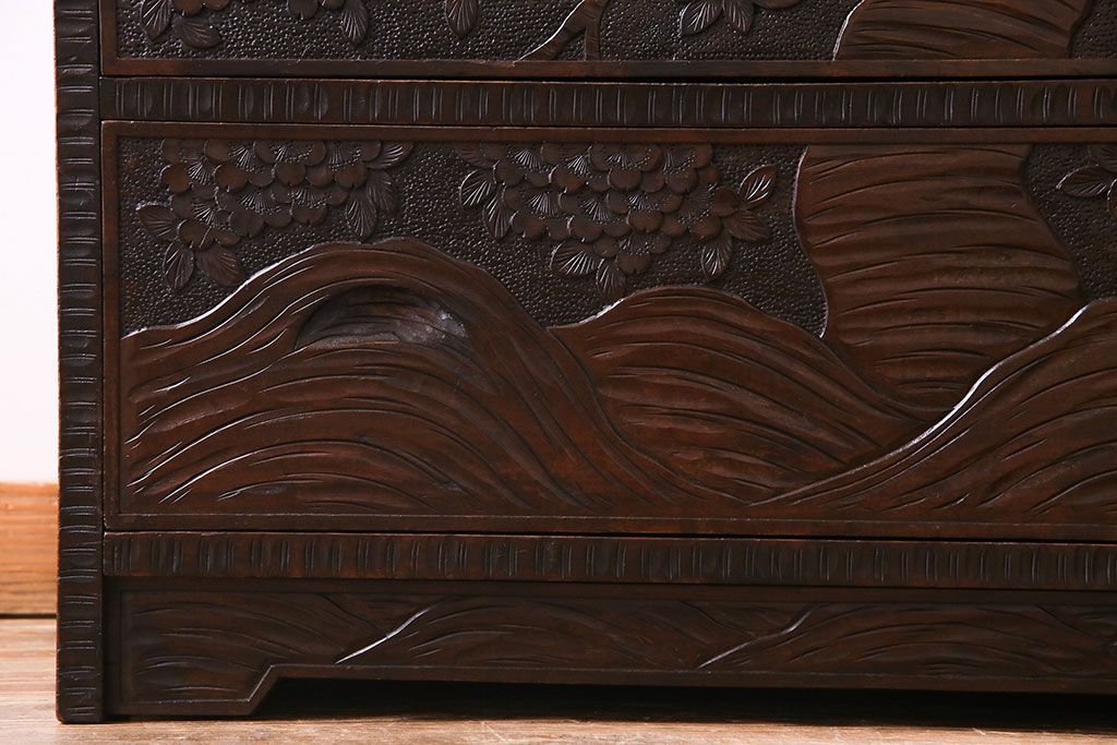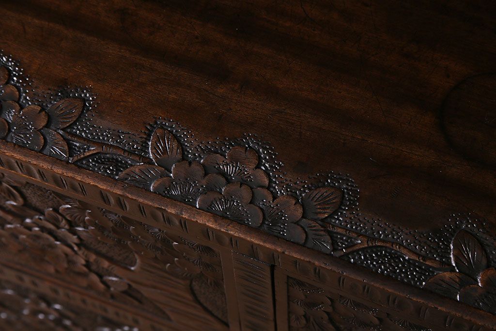 中古美品 伝統工芸 軽井沢彫り 繊細な彫りが豪華さを演出する棚付きチェスト(衣装箪笥、引き出し)