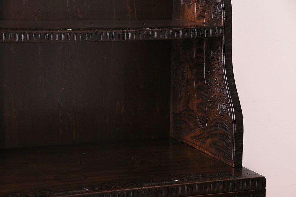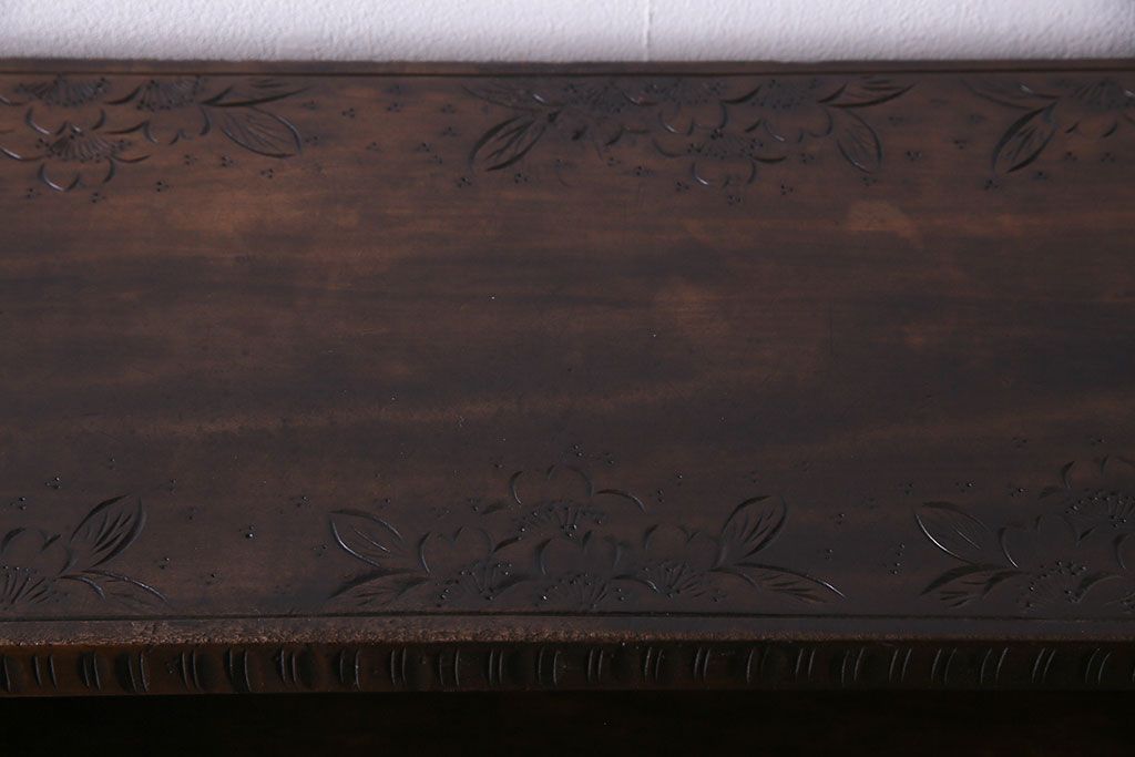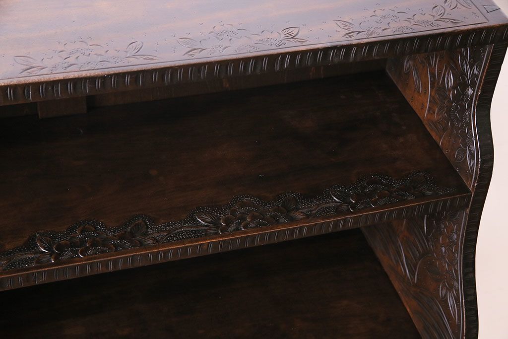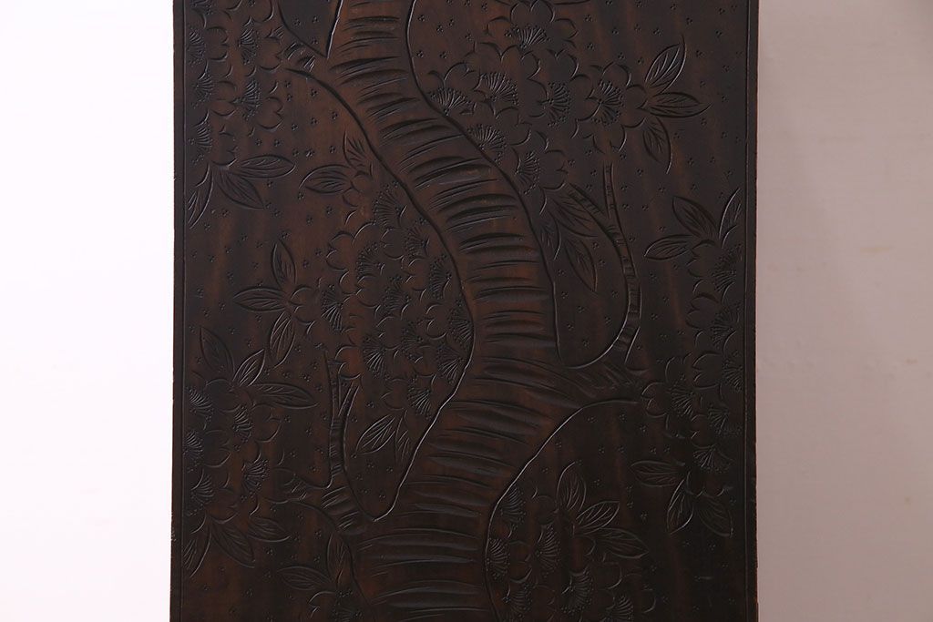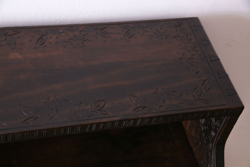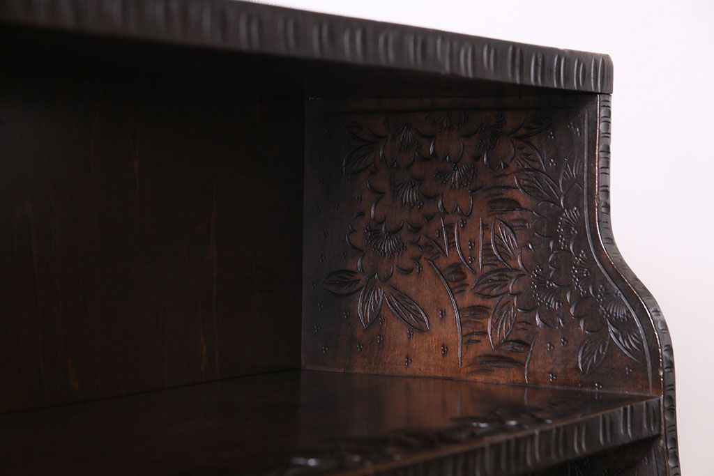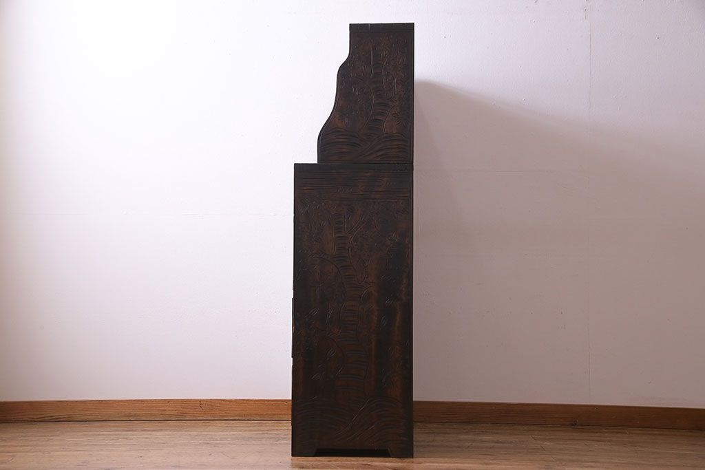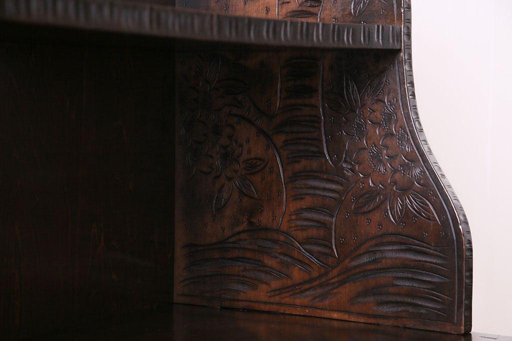 中古美品 伝統工芸 軽井沢彫り 繊細な彫りが豪華さを演出する棚付きチェスト(衣装箪笥、引き出し)