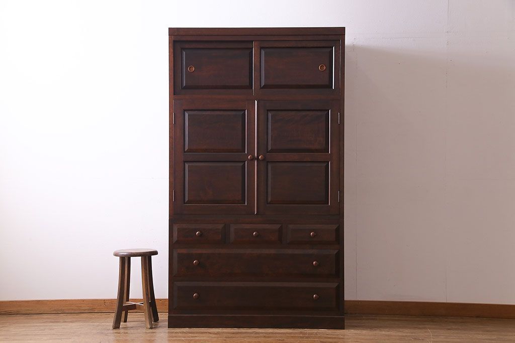 中古美品 松本民芸家具 直線的なデザインが美しいD型和タンス(箪笥、チェスト)(定価約54万円)