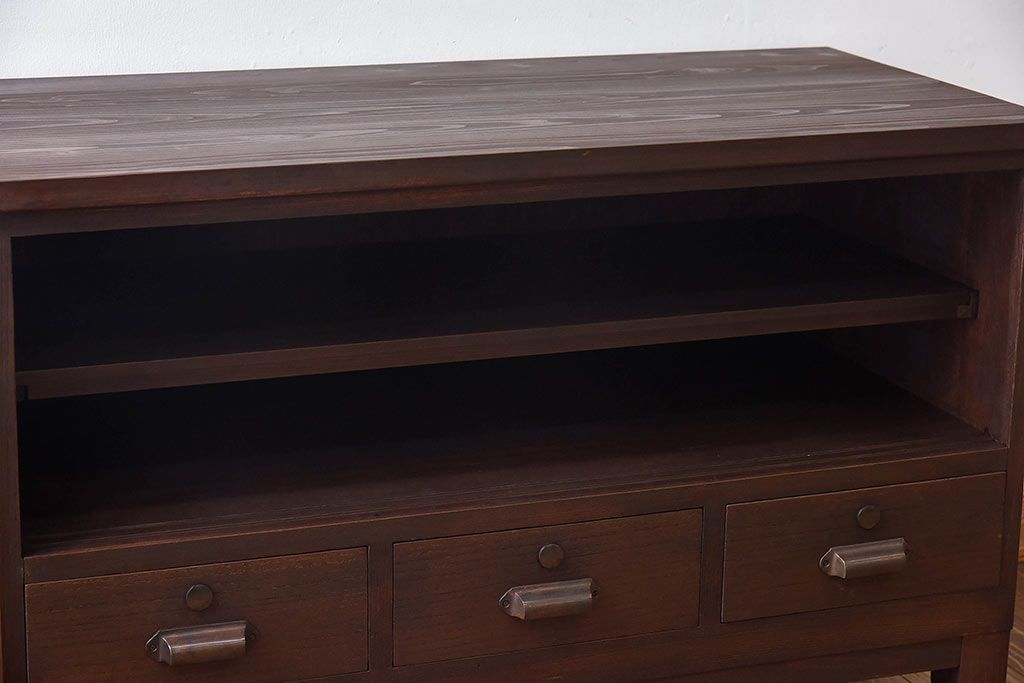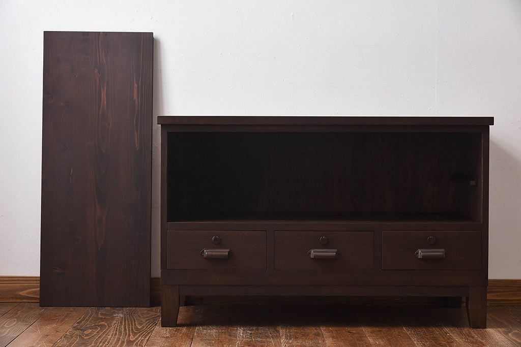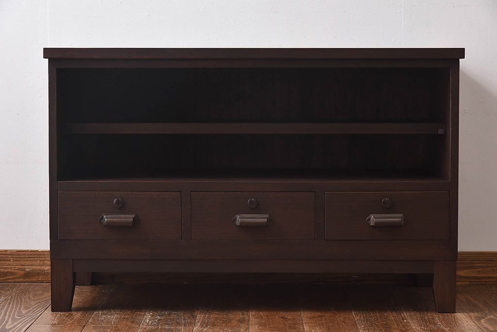 ラフジュ工房> キャビネット・戸棚> テレビ台・ローボード > レトロ家具 昭和レトロ リメイク オープンラックの脚付ローボード(リビングボード)(1)