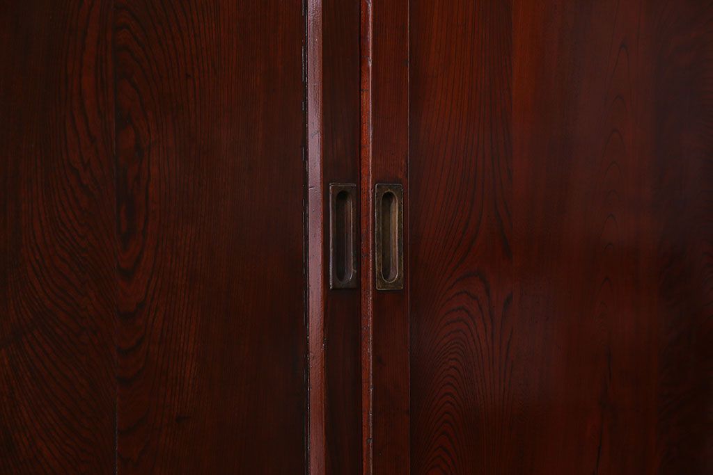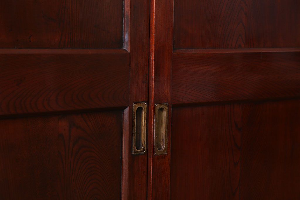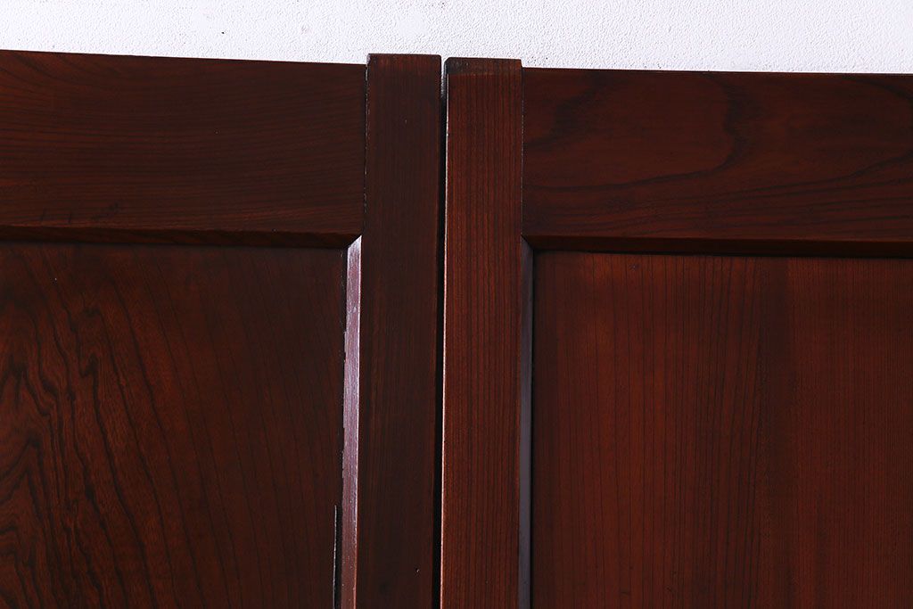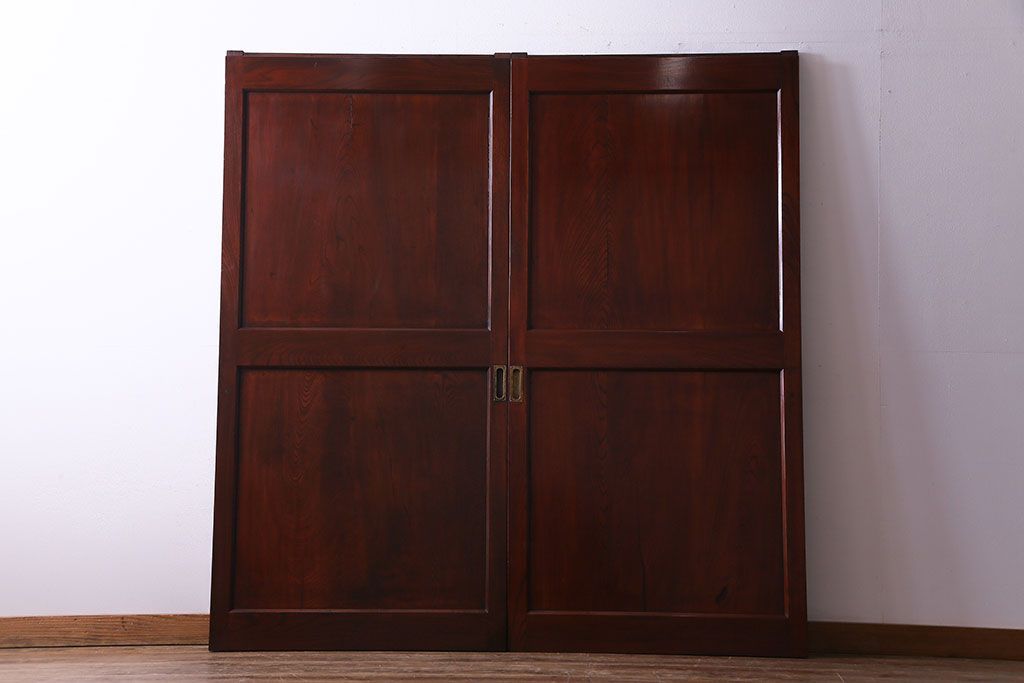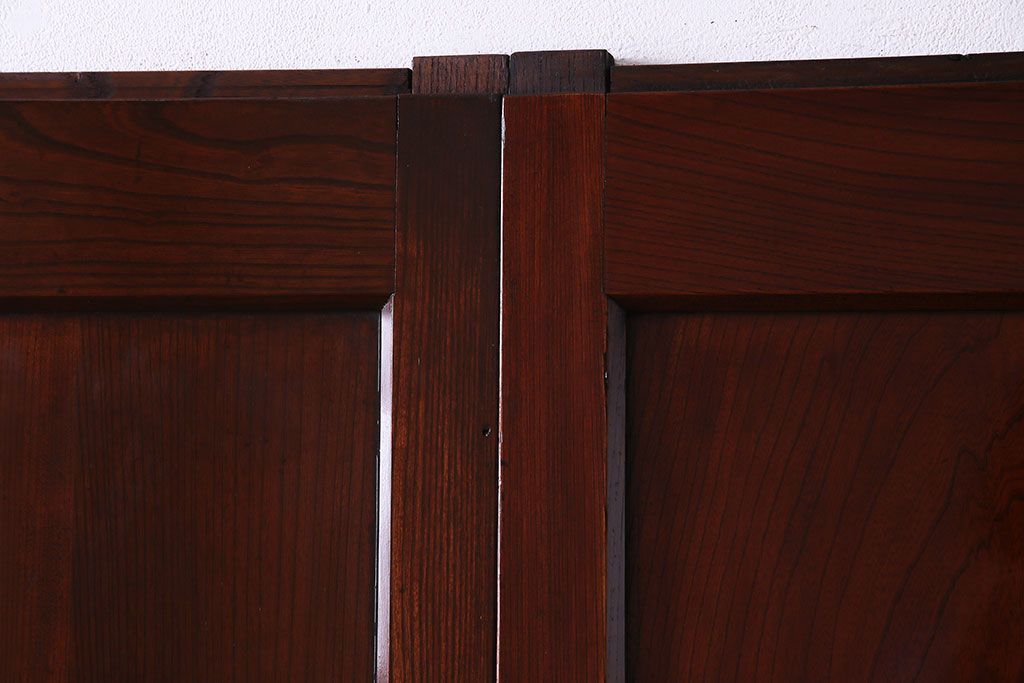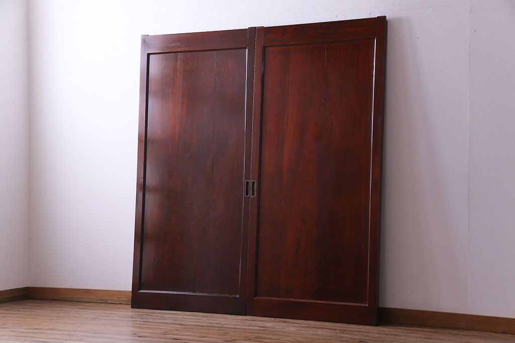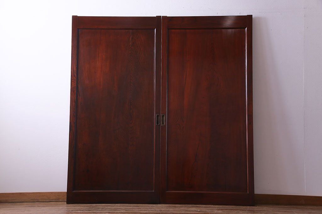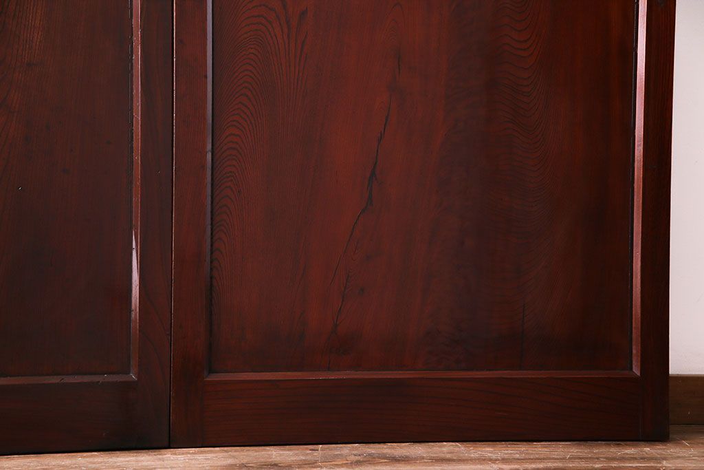 和製アンティーク 総ケヤキ材 力強い杢目が重厚感を醸し出す板戸(建具、引き戸)2枚組です。