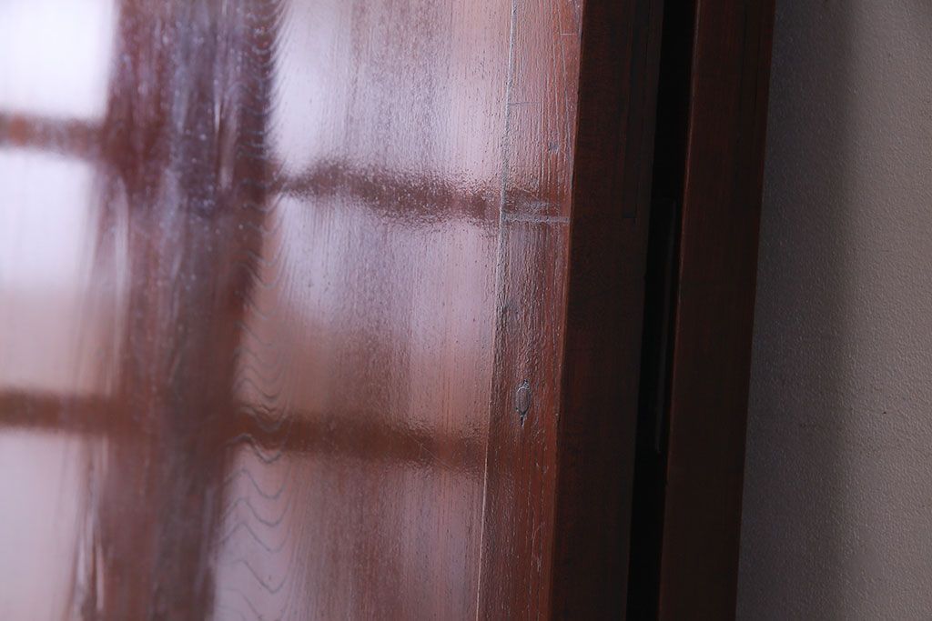 14枚目の画像にありますように左側の戸に反りがあり、2枚合わせた時に戸同士がぴったりと合わず隙間ができますが、ご理解の上お願いします。使用上問題のあるダメージはありません。