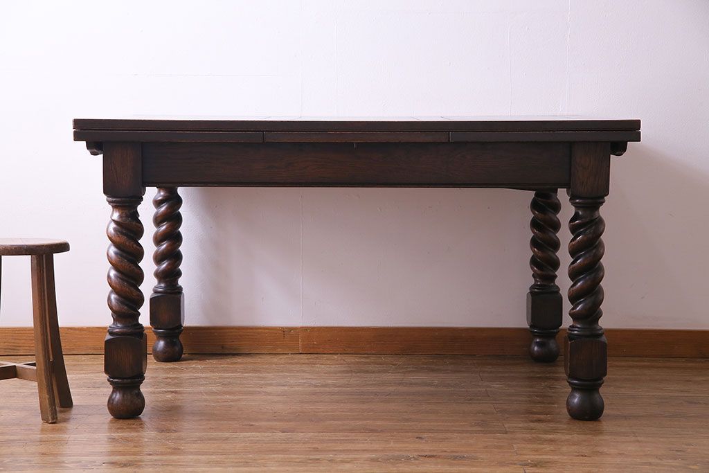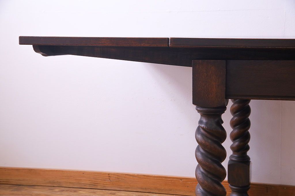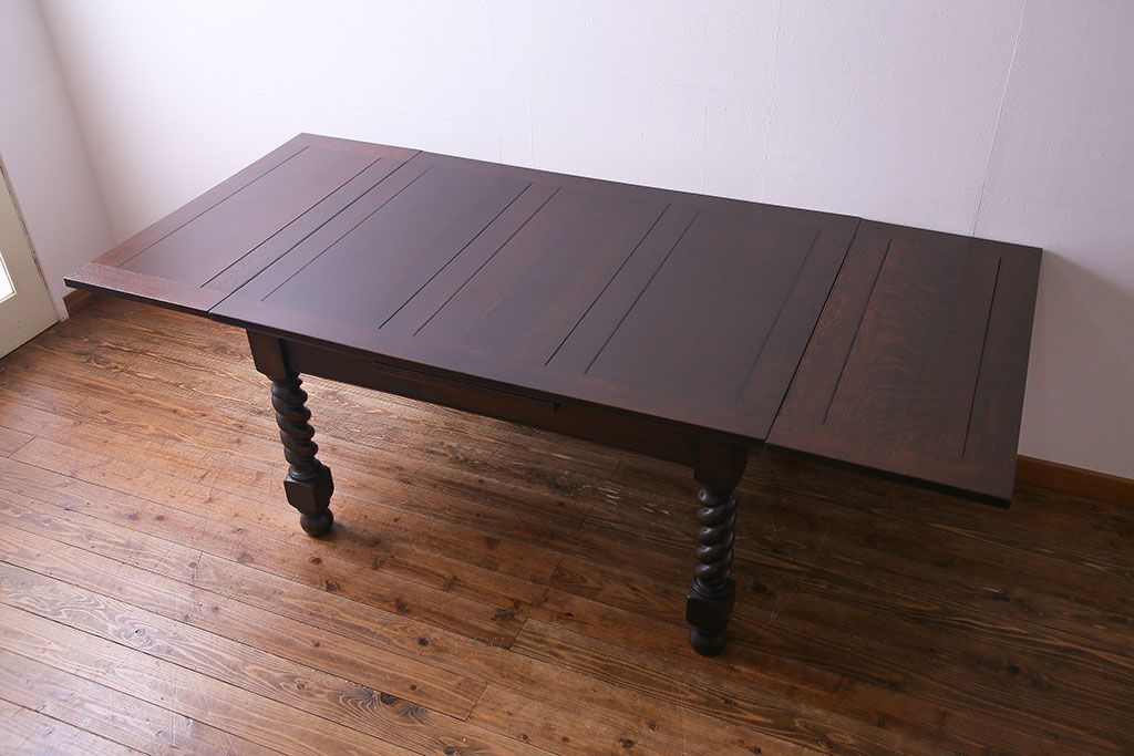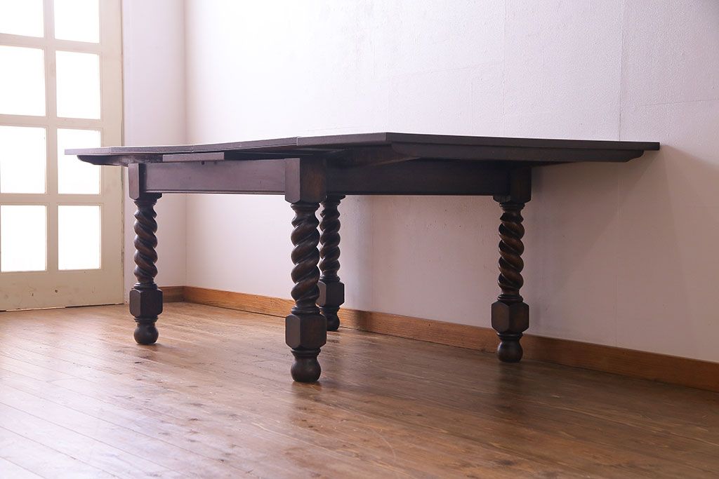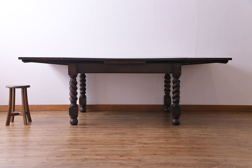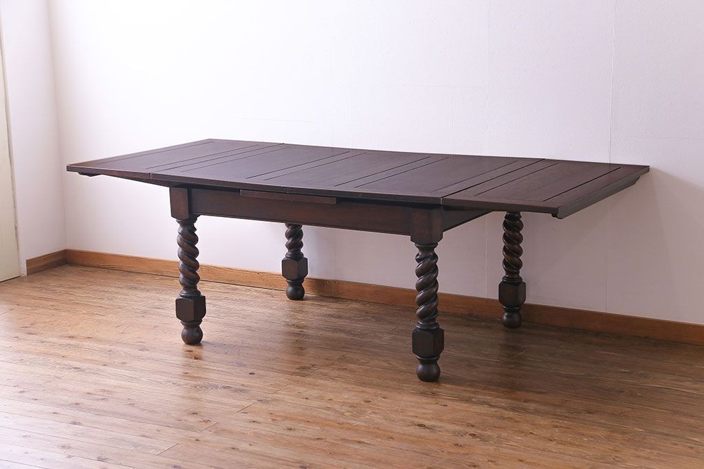 アンティーク家具 イギリスアンティーク 太めのツイストレッグが存在感を放つエクステンションテーブル(ダイニングテーブル、ドローリーフテーブル)