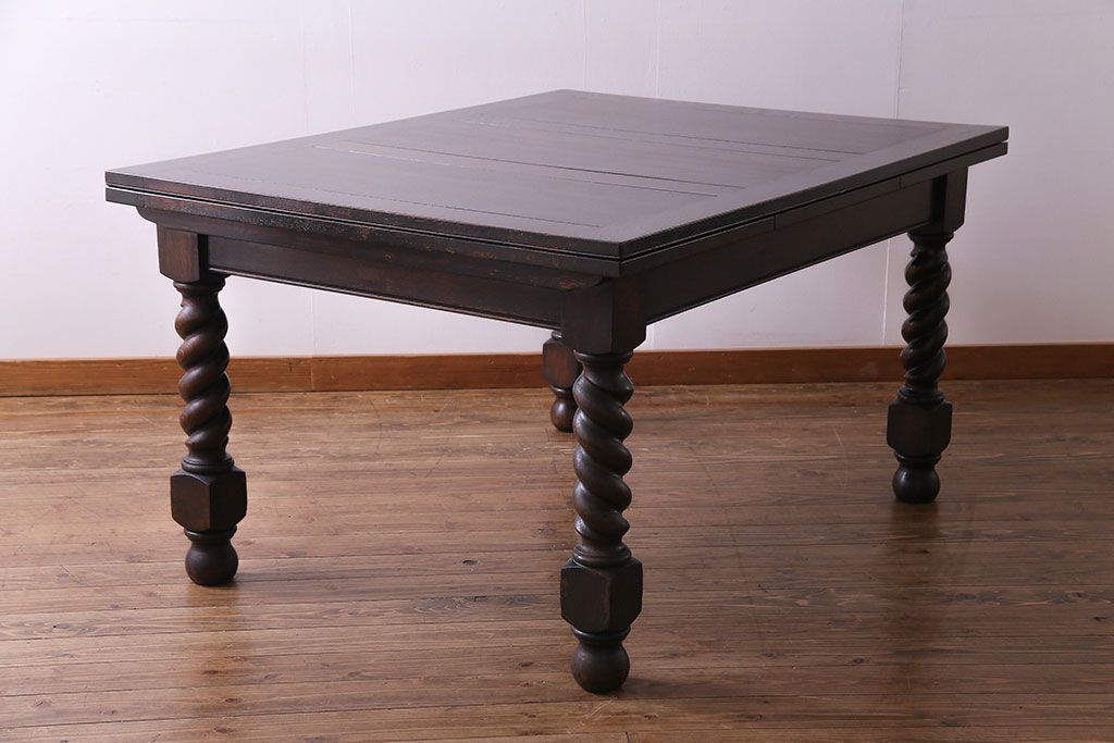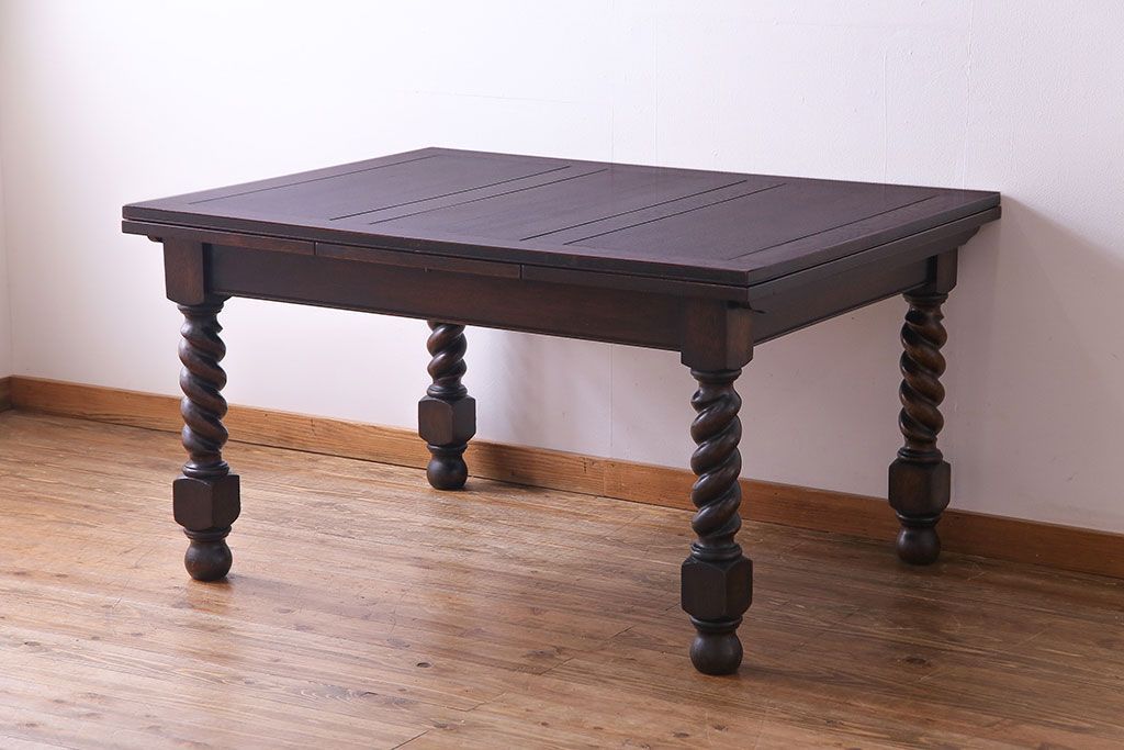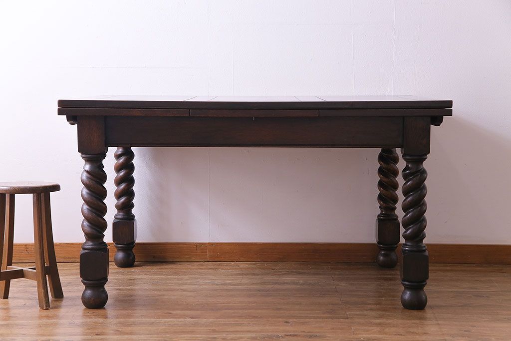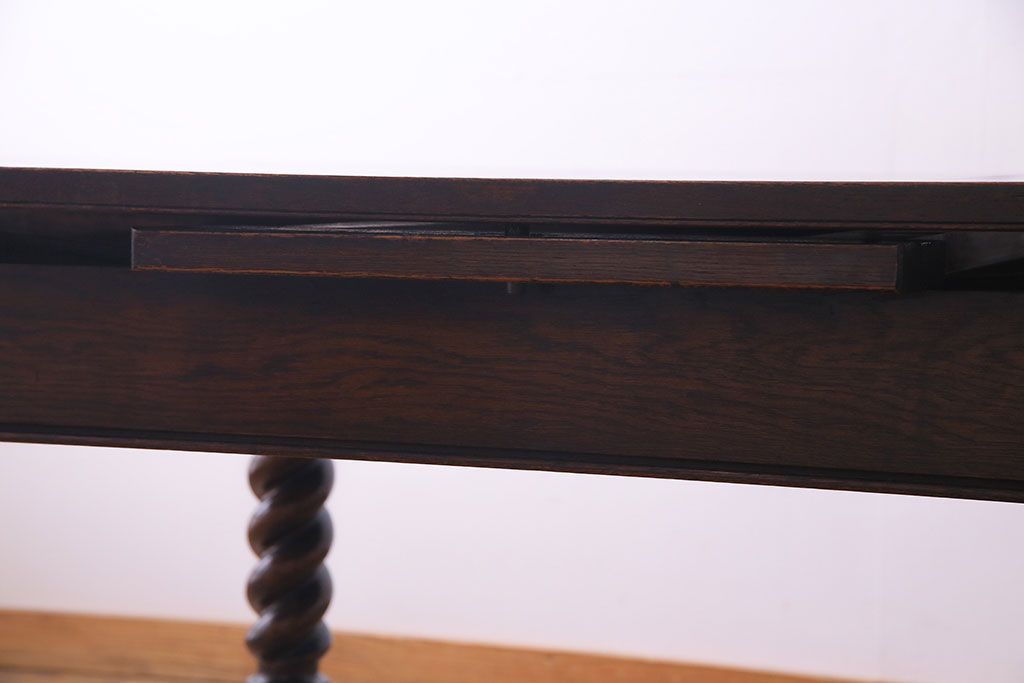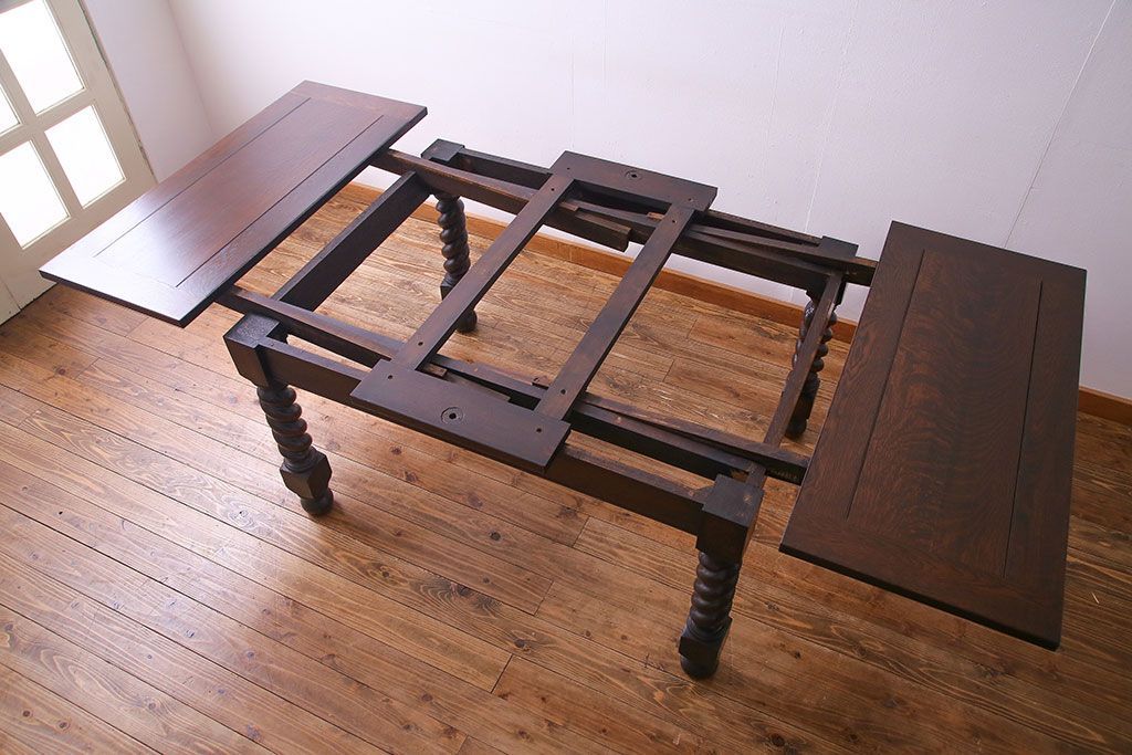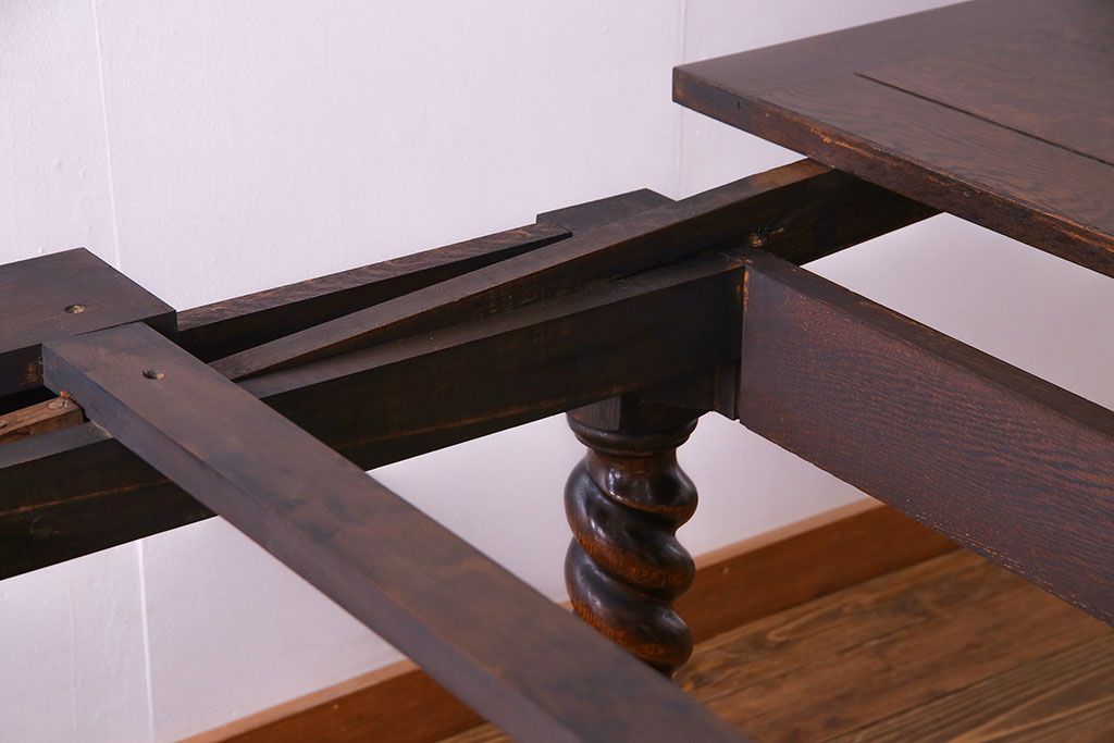 アンティーク家具 イギリスアンティーク 太めのツイストレッグが存在感を放つエクステンションテーブル(ダイニングテーブル、ドローリーフテーブル)