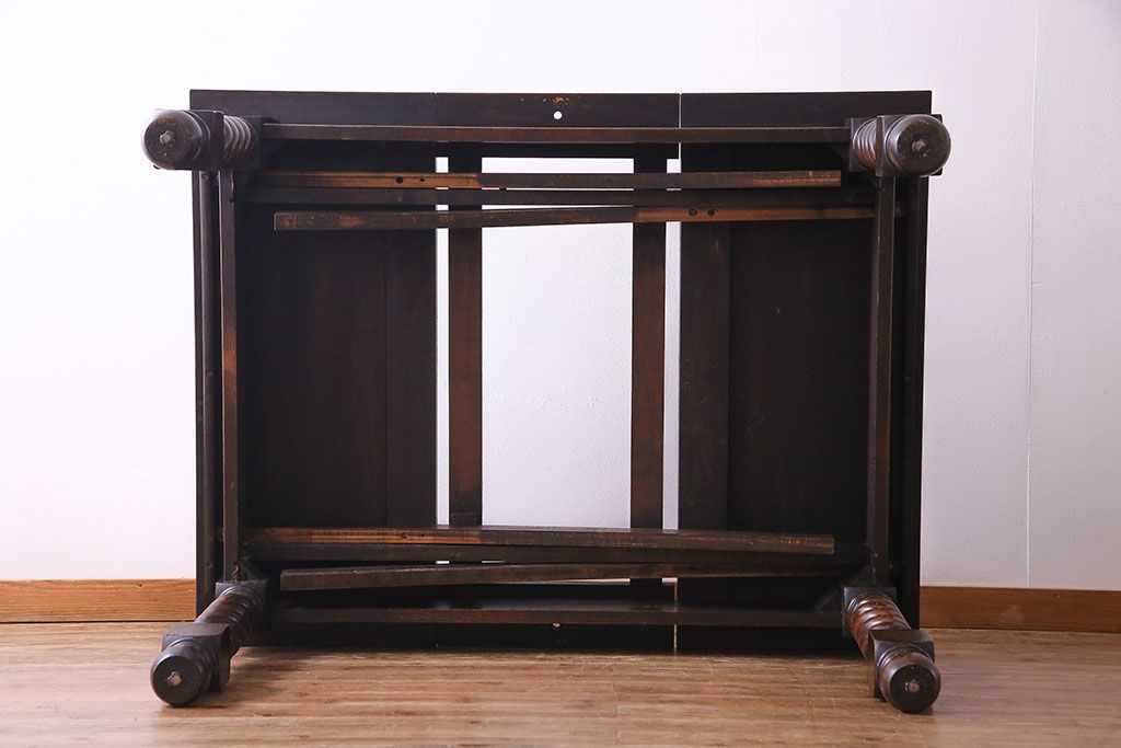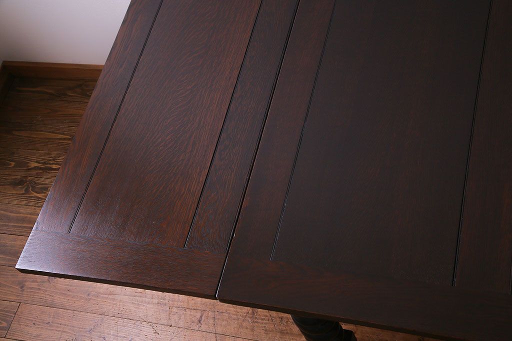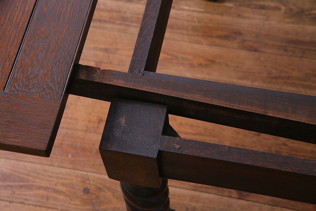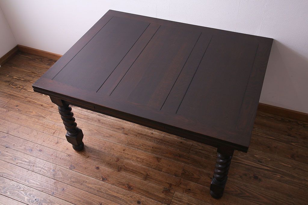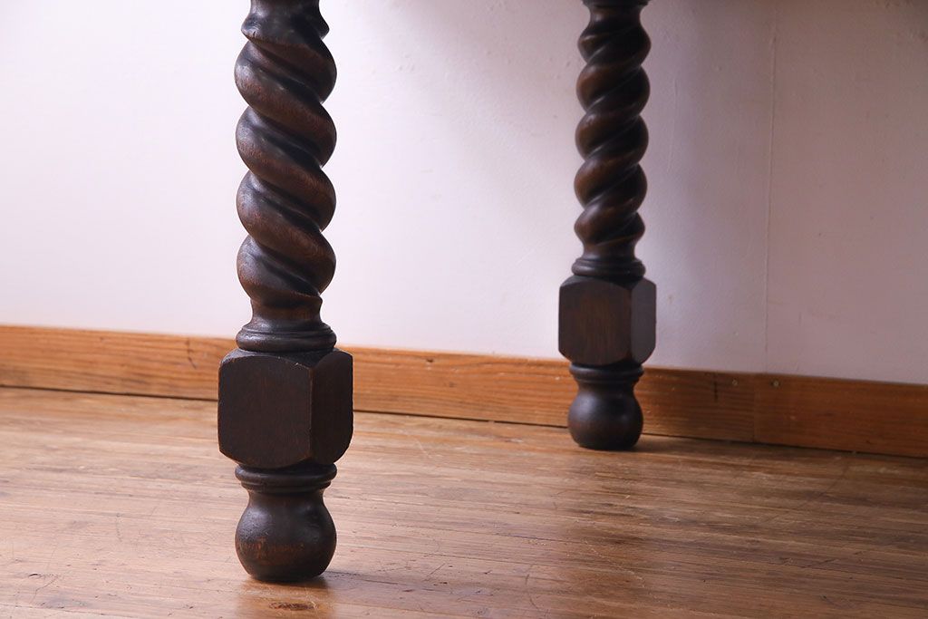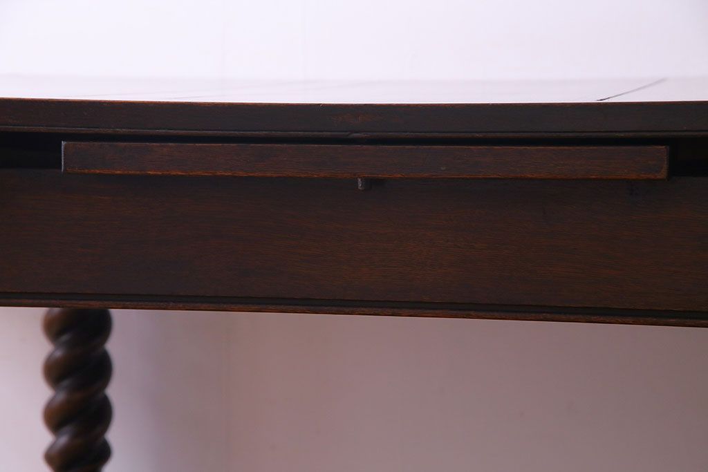 アンティーク家具 イギリスアンティーク 太めのツイストレッグが存在感を放つエクステンションテーブル(ダイニングテーブル、ドローリーフテーブル)