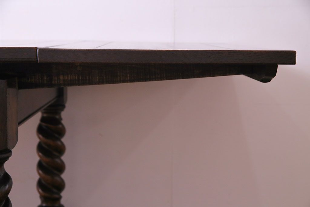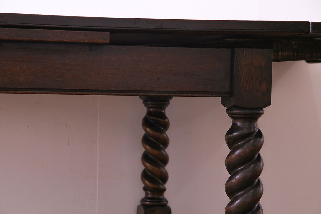 ラフジュ工房> テーブル> エクステンションテーブル > アンティーク家具 イギリスアンティーク 太めのツイストレッグが存在感を放つエクステンションテーブル(ダイニングテーブル、ドローリーフテーブル)