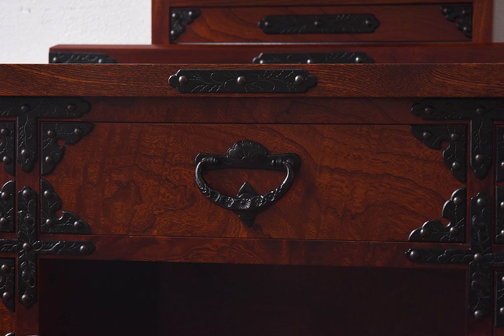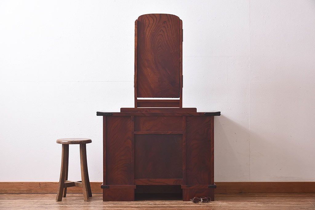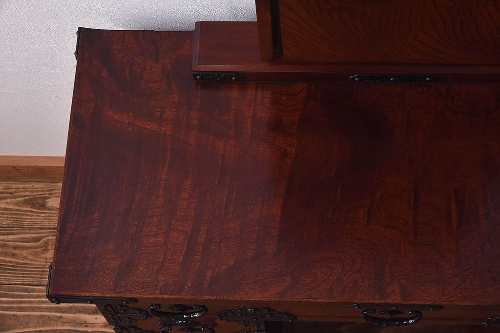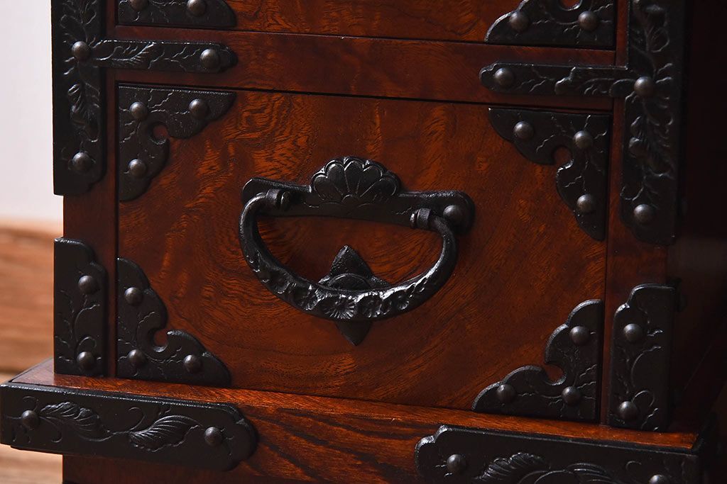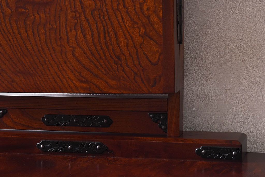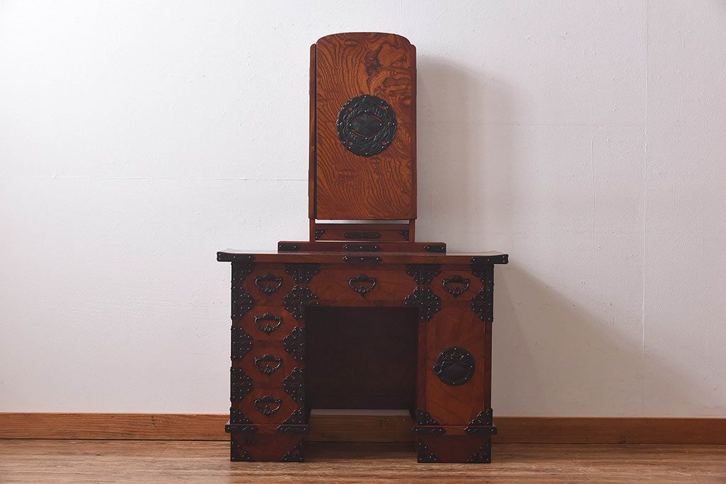 中古 岩谷堂箪笥 スツール付き 金具の装飾が見事な三面鏡(鏡台、ドレッサー)