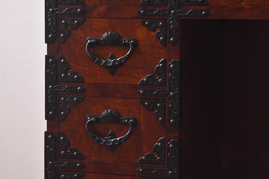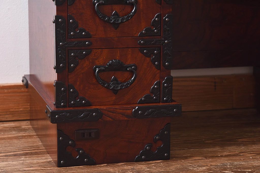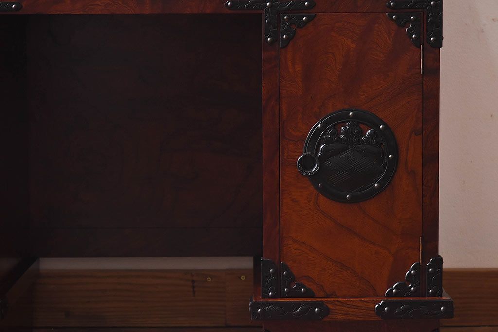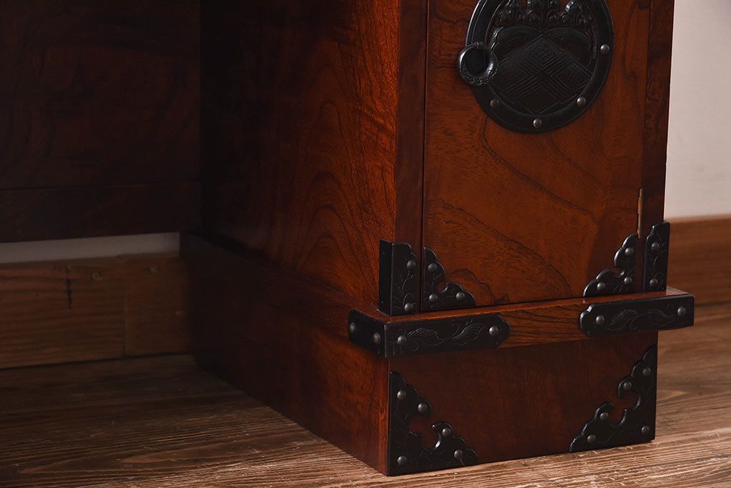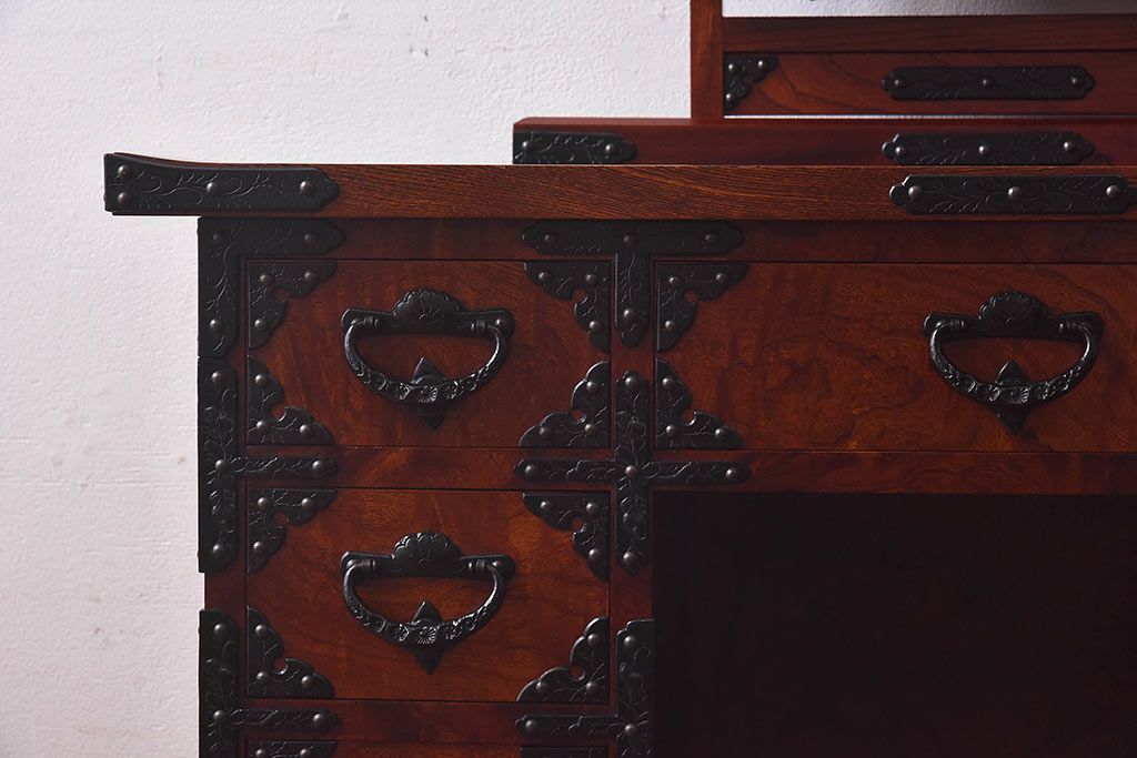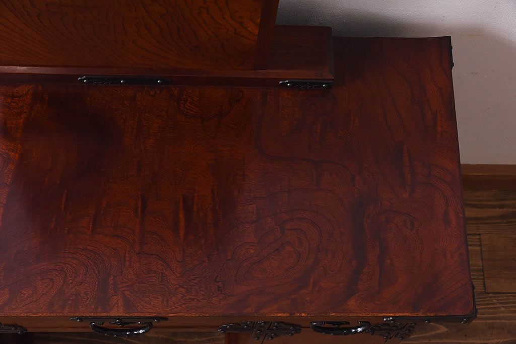 中古 岩谷堂箪笥 スツール付き 金具の装飾が見事な三面鏡(鏡台、ドレッサー)