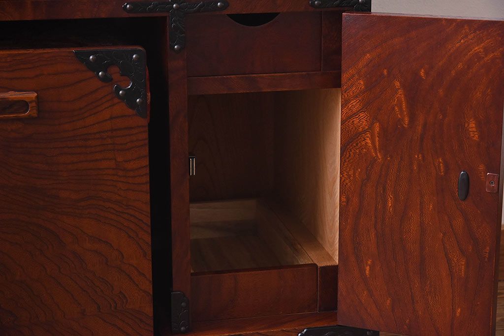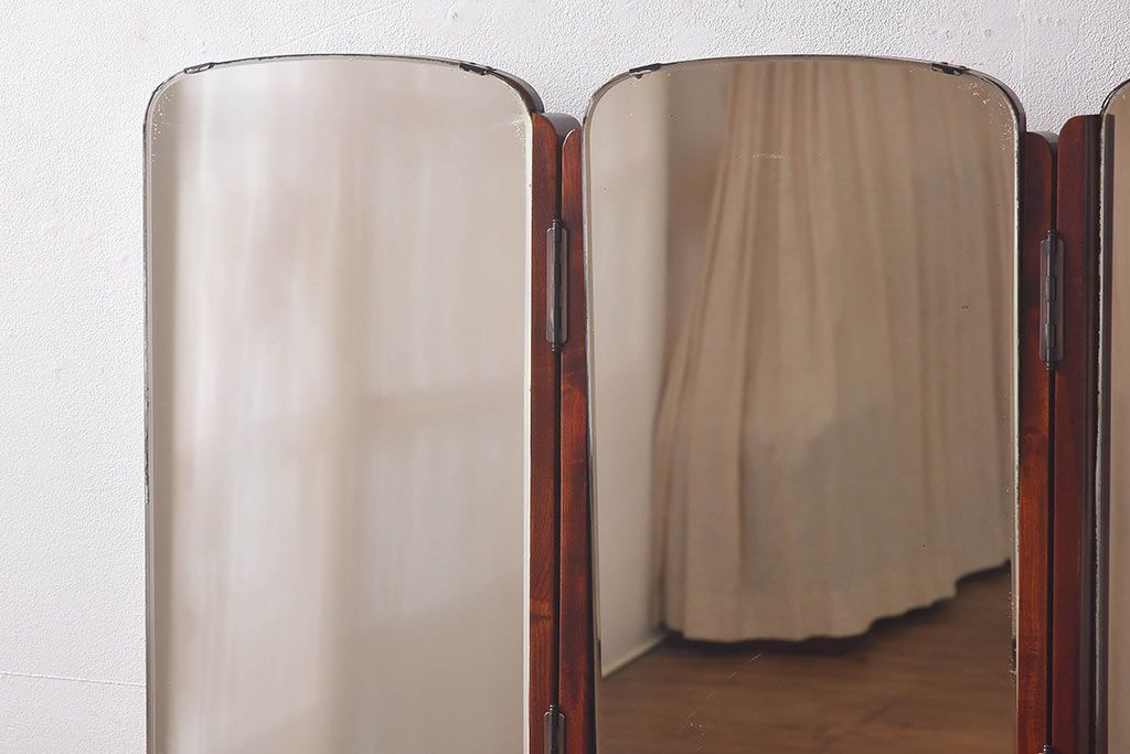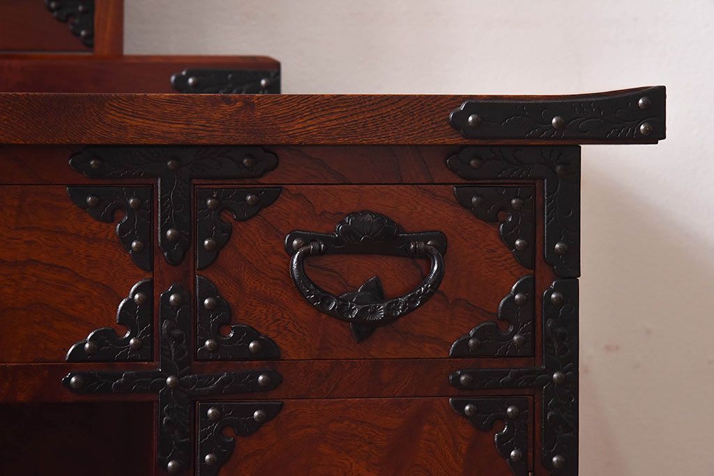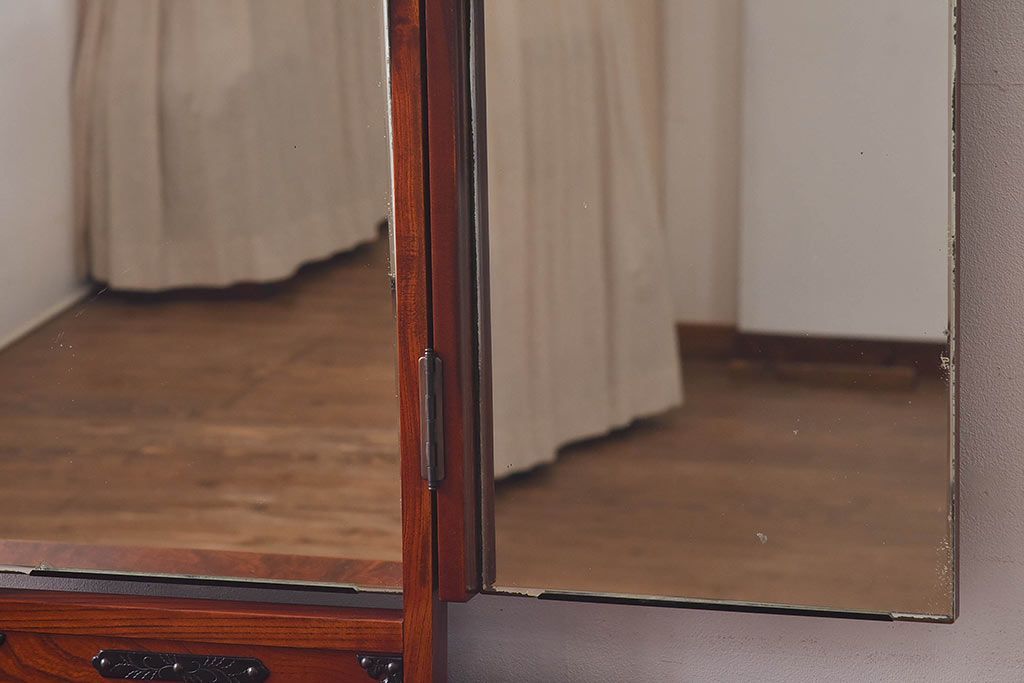 ラフジュ工房> ドレッサー・鏡台 > 中古 岩谷堂箪笥 スツール付き 金具の装飾が見事な三面鏡(鏡台、ドレッサー)
