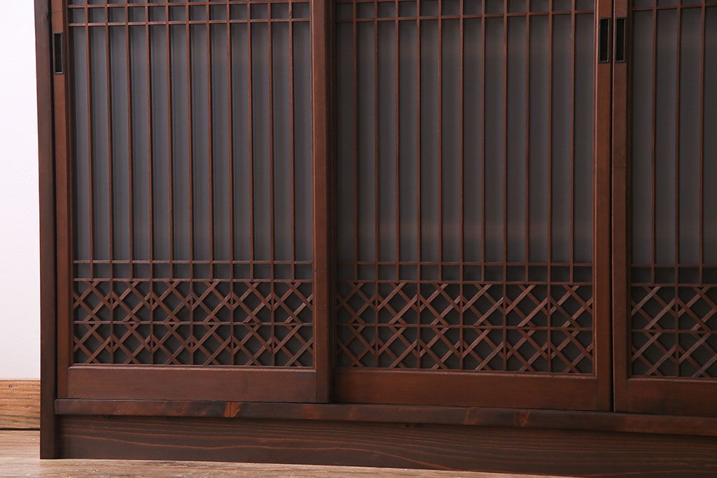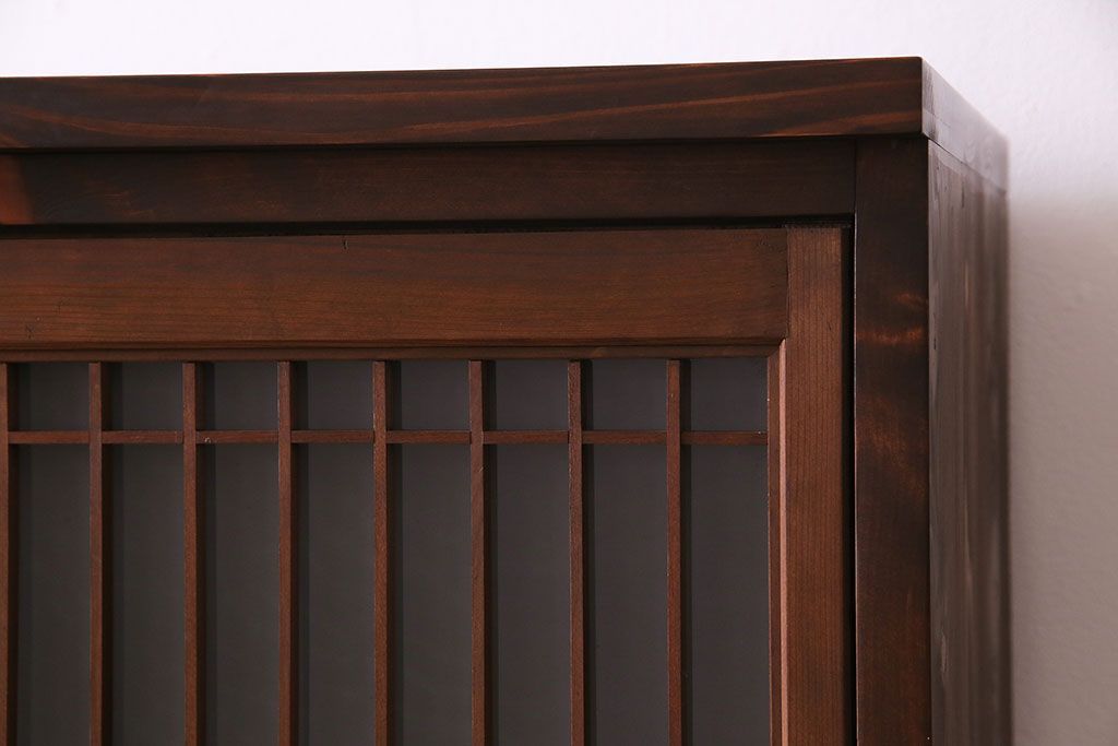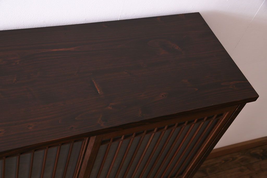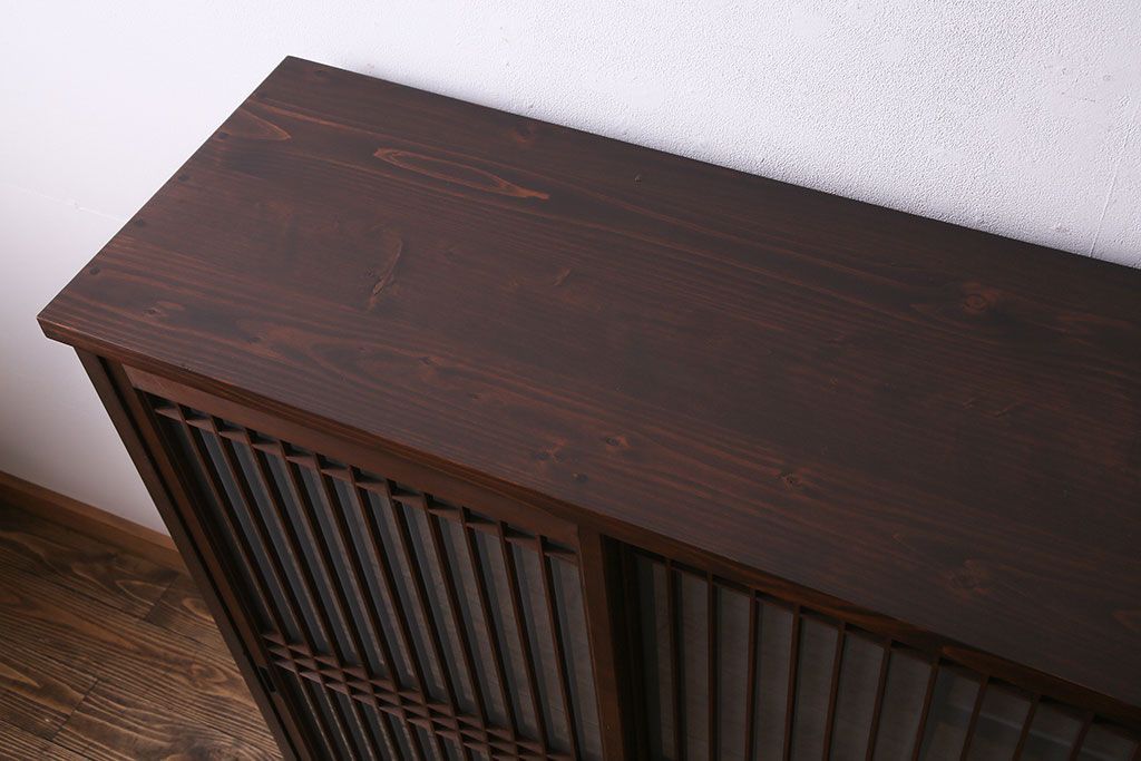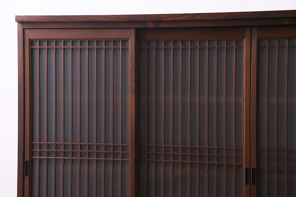 ラフジュ工房オリジナル 古い書院戸を取り入れた組子ガラス戸棚(収納棚、サイドボード)(1)