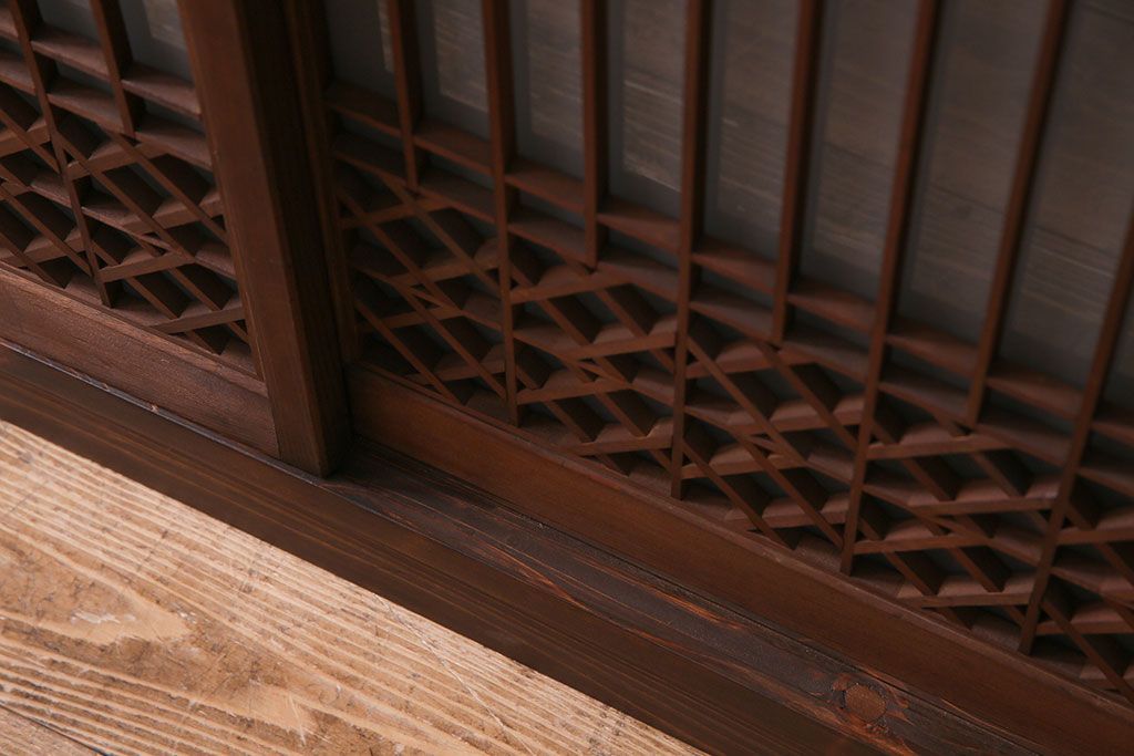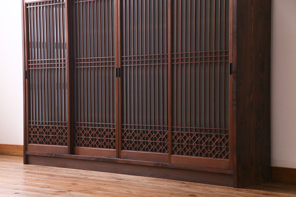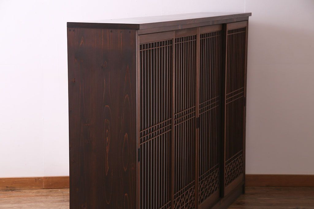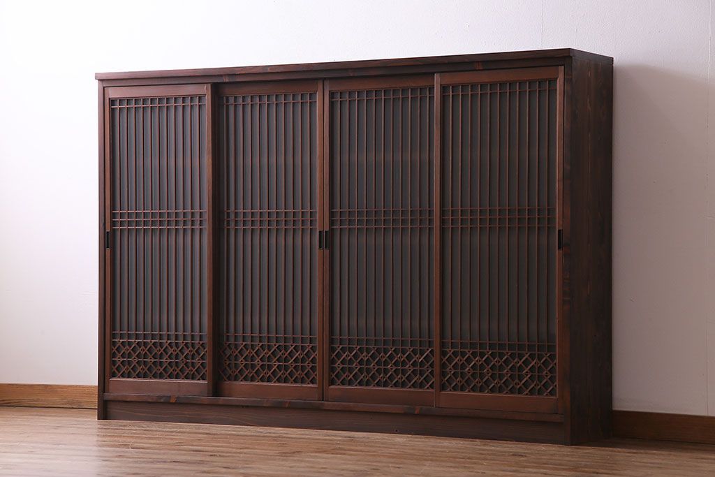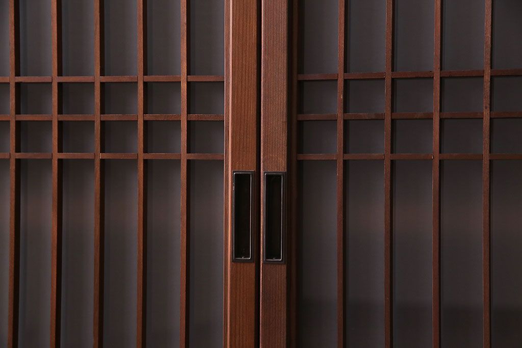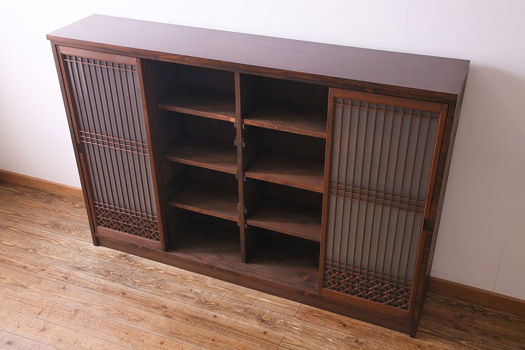 ラフジュ工房オリジナル 古い書院戸を取り入れた組子ガラス戸棚(収納棚、サイドボード)(1)