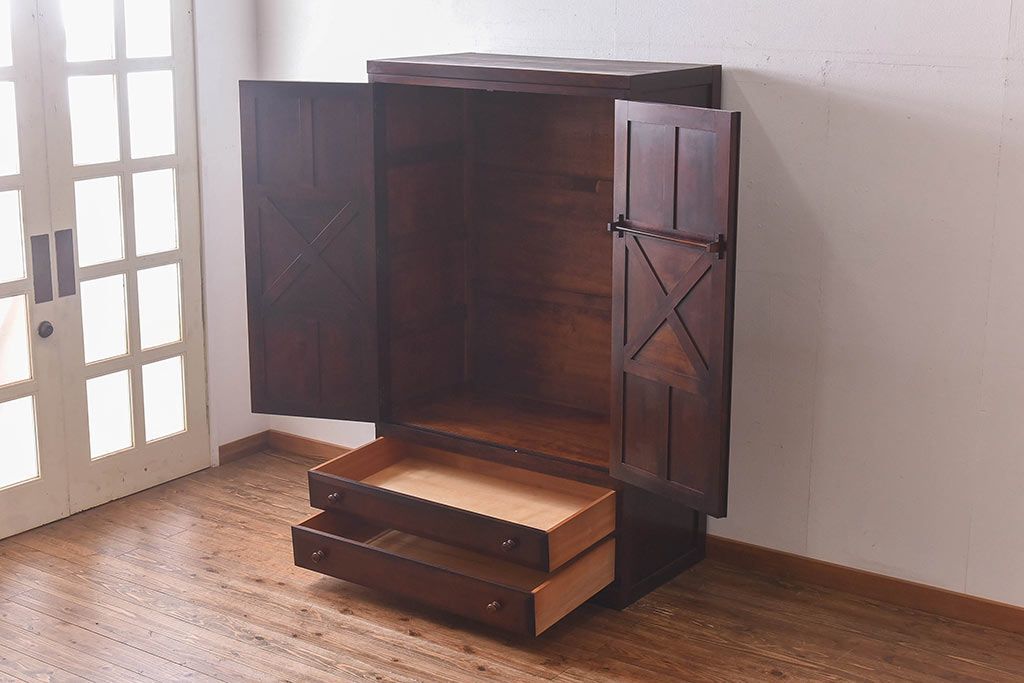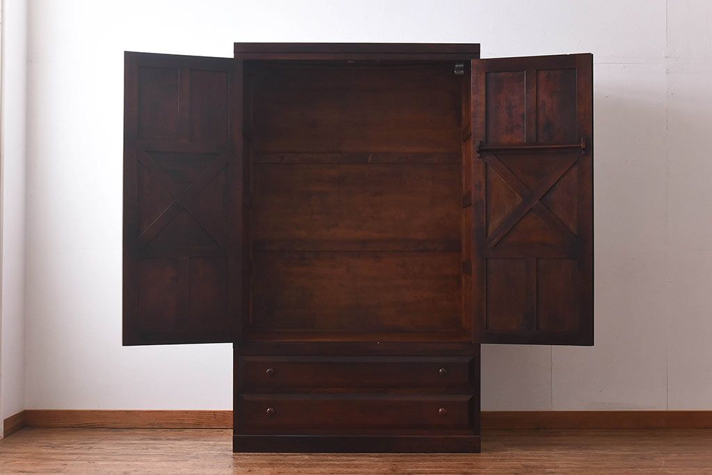 ラフジュ工房> ワードローブ・ロッカー> ワードローブ > 中古 松本民芸家具 シックな雰囲気が魅力的なワードローブ(チェスト、衣装箪笥)(1)