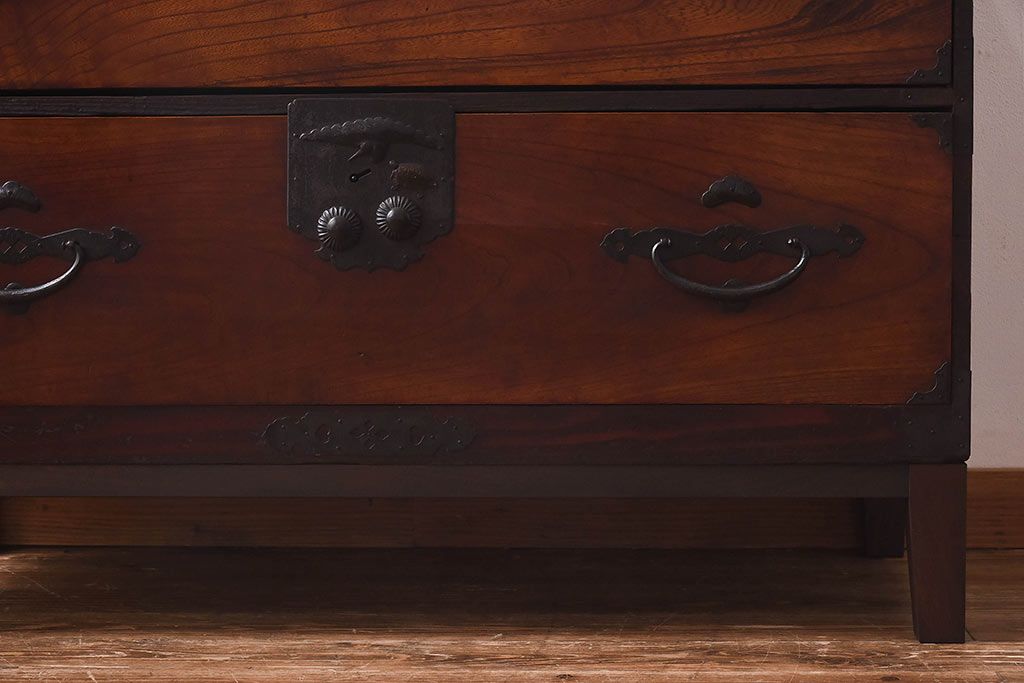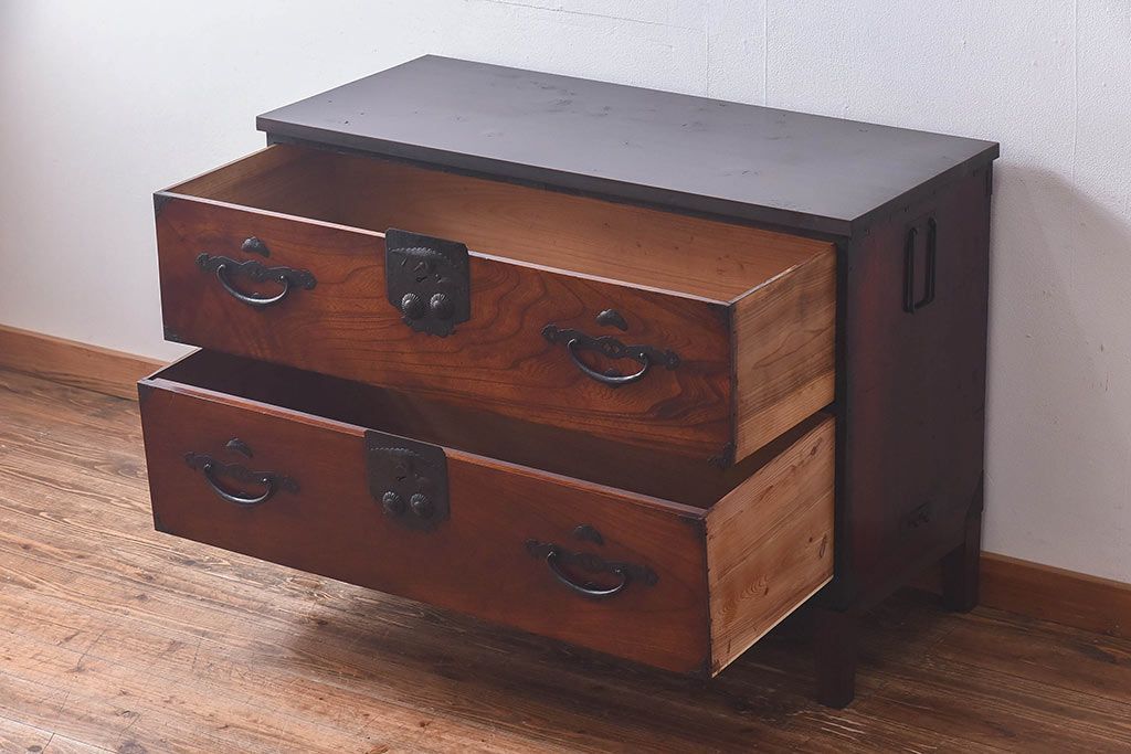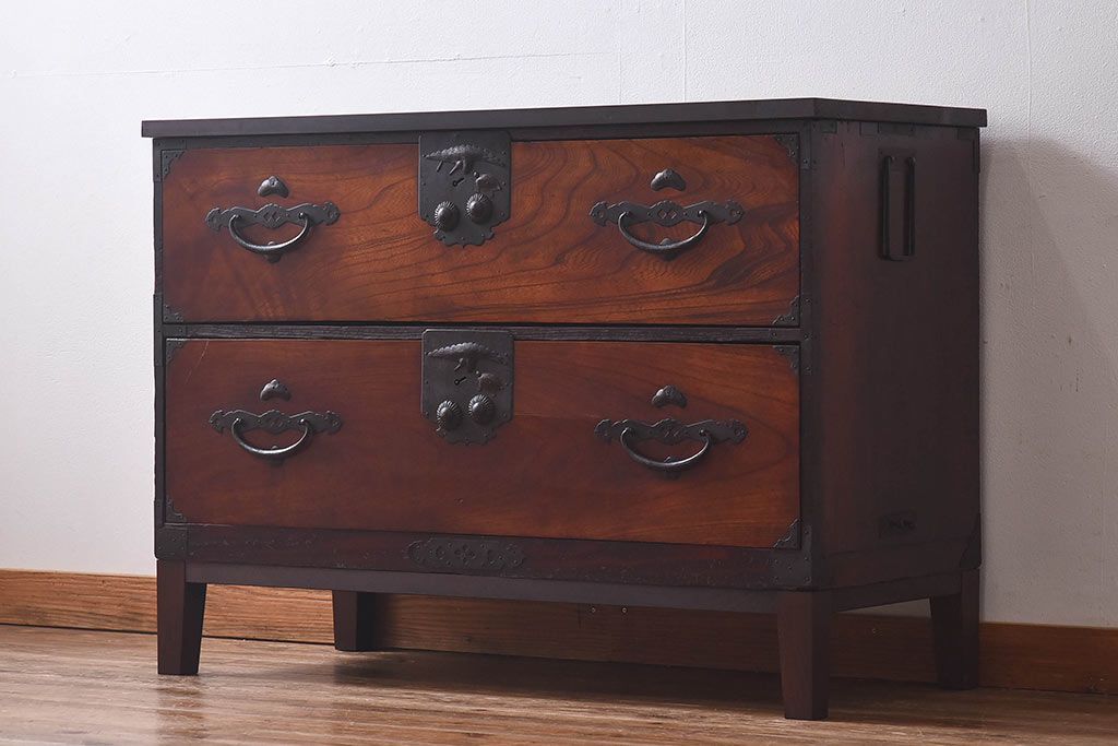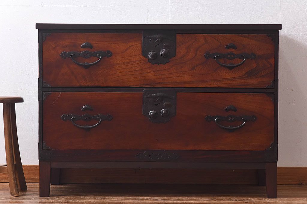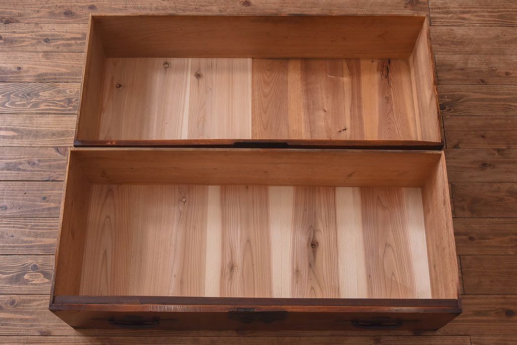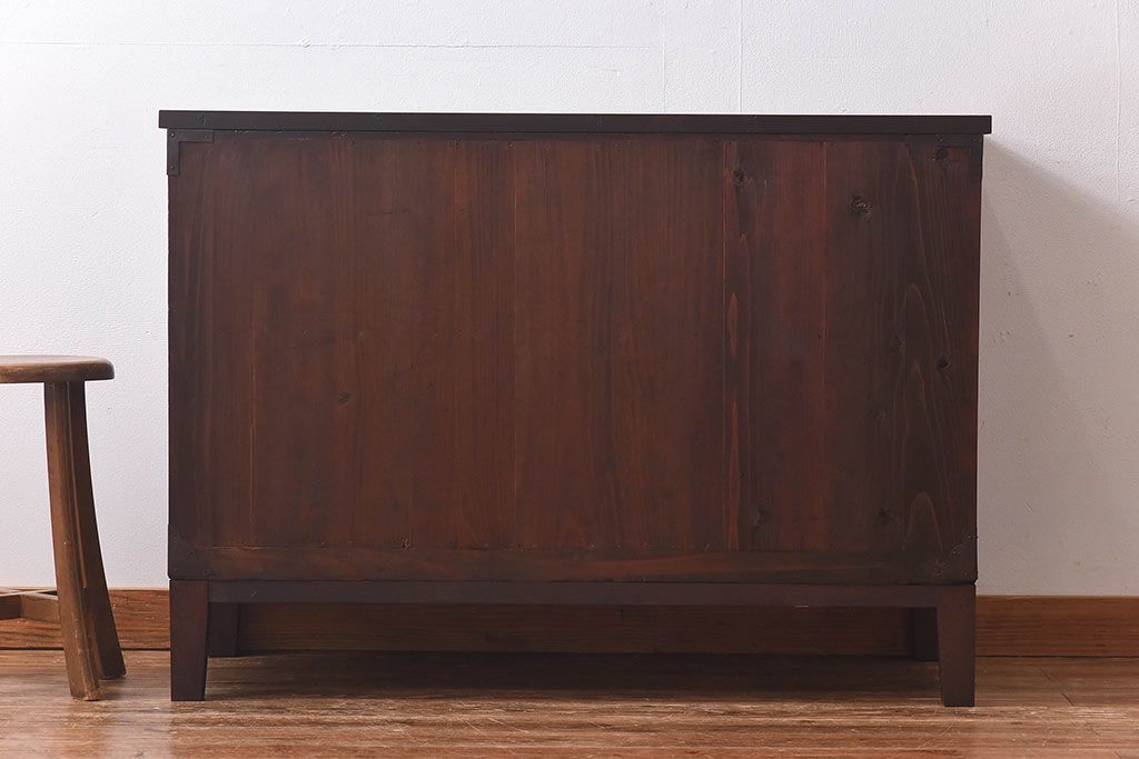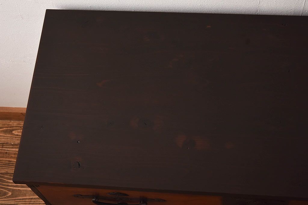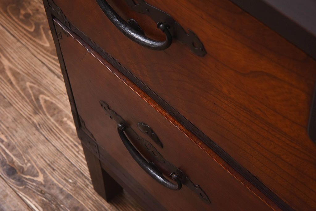 和箪笥> 衣装箪笥 > アンティーク家具 和製アンティーク 前面ケヤキ材 モダンな雰囲気の二本松箪笥ローボード(リビングボード、衣装箪笥)