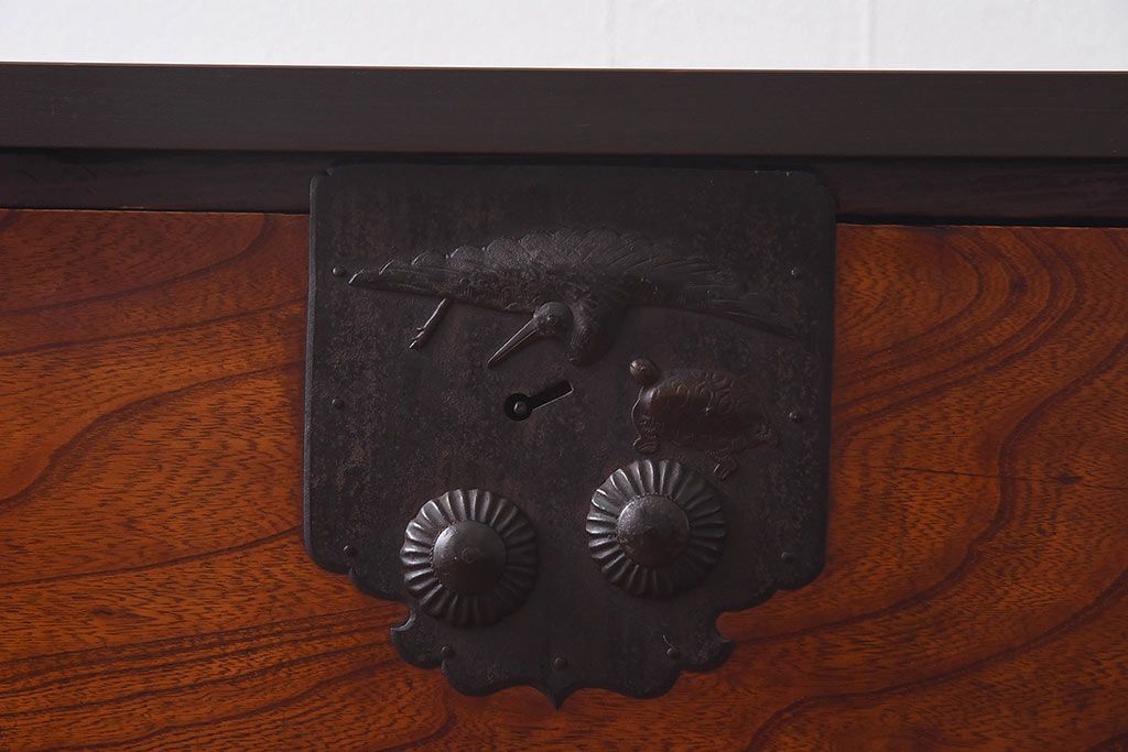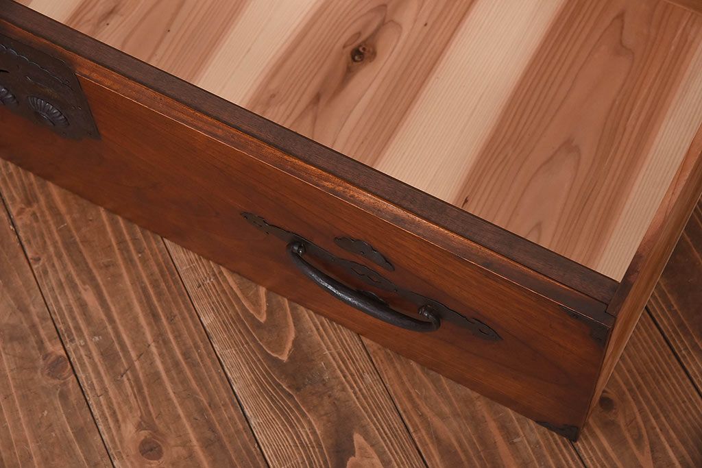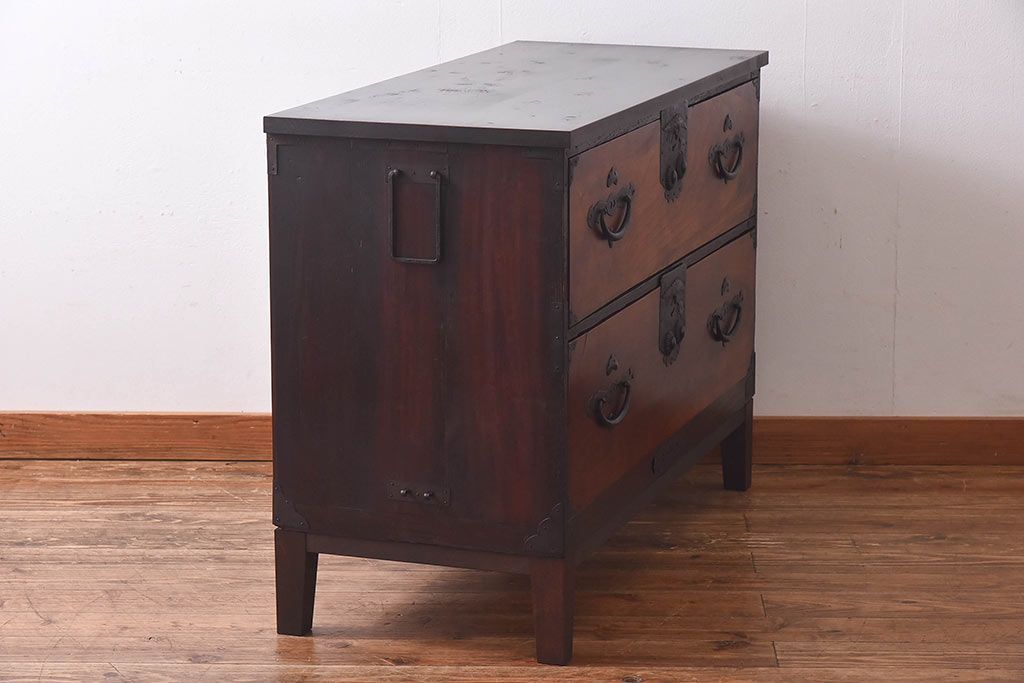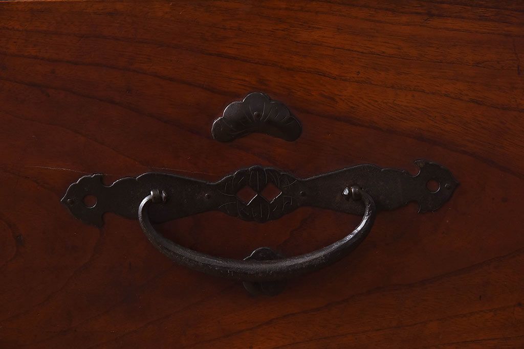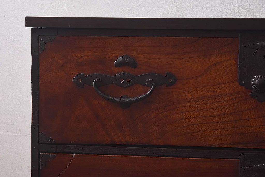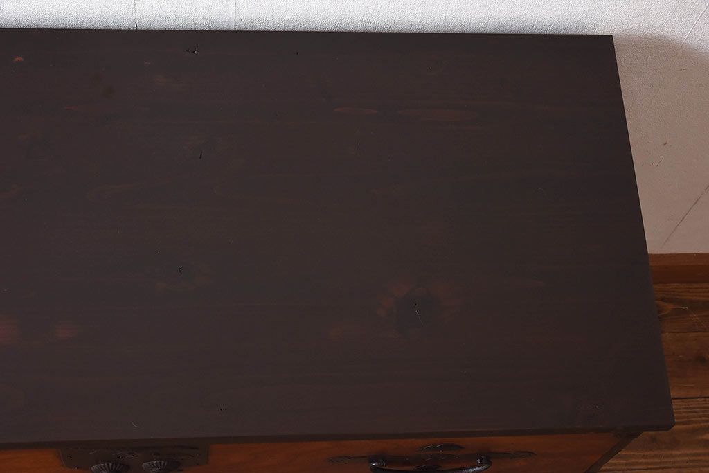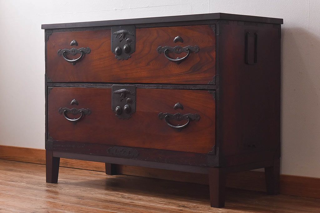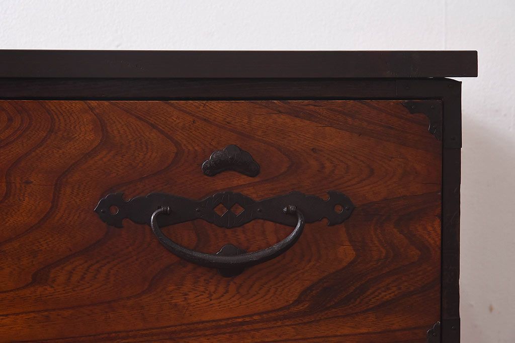 和箪笥> 衣装箪笥 > アンティーク家具 和製アンティーク 前面ケヤキ材 モダンな雰囲気の二本松箪笥ローボード(リビングボード、衣装箪笥)