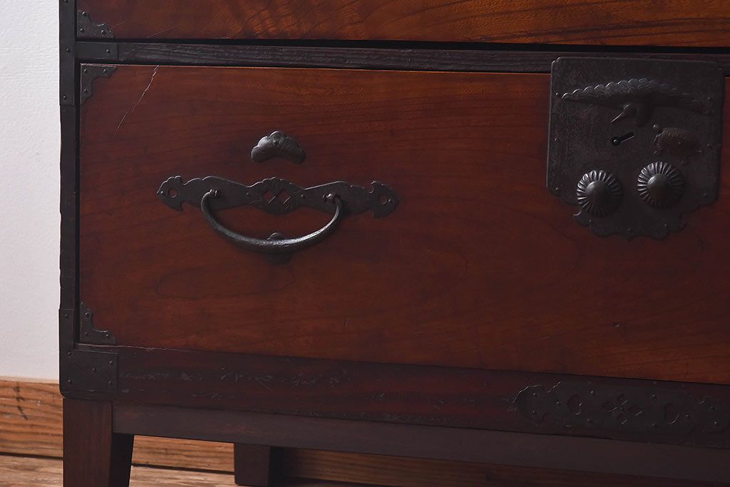 和箪笥 > アンティーク家具 和製アンティーク 前面ケヤキ材 モダンな雰囲気の二本松箪笥ローボード(リビングボード、衣装箪笥)