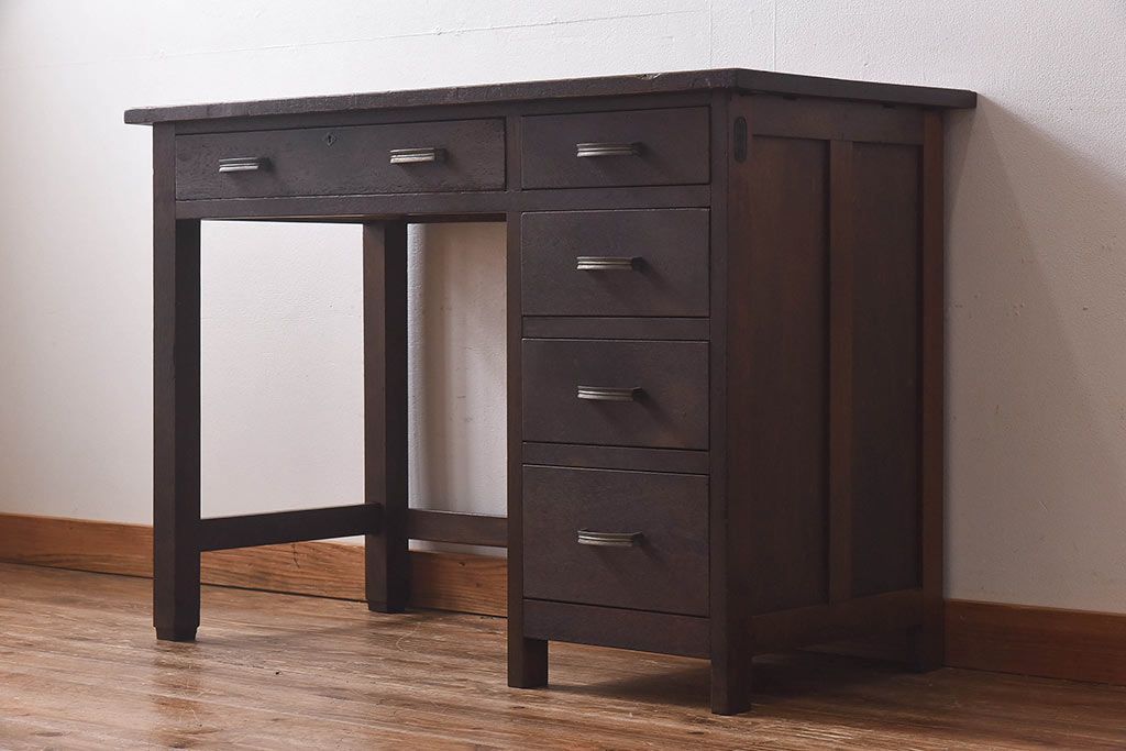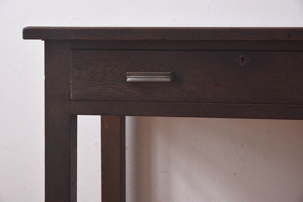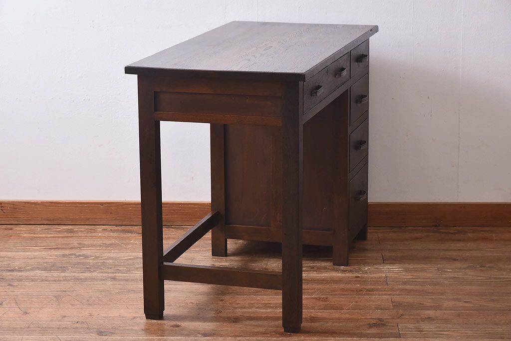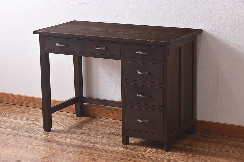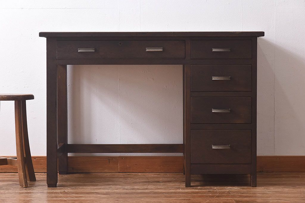 レトロ家具 昭和レトロ ナラ材製 古い木の落ち着いた雰囲気が魅力の薄型デスク(片袖机、在宅ワーク、在宅用作業台、ワークデスク)