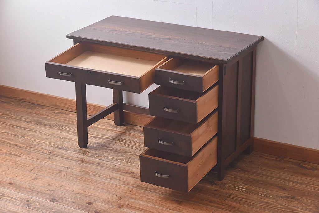 デスク> 子供机 > レトロ家具 昭和レトロ ナラ材製 古い木の落ち着いた雰囲気が魅力の薄型デスク(片袖机、在宅ワーク、在宅用作業台、ワークデスク)