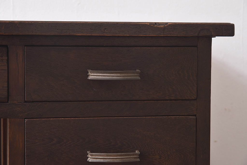 テーブル> 作業台 > レトロ家具 昭和レトロ ナラ材製 古い木の落ち着いた雰囲気が魅力の薄型デスク(片袖机、在宅ワーク、在宅用作業台、ワークデスク)