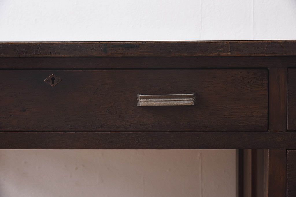 デスク> ワークデスク > レトロ家具 昭和レトロ ナラ材製 古い木の落ち着いた雰囲気が魅力の薄型デスク(片袖机、在宅ワーク、在宅用作業台、ワークデスク)