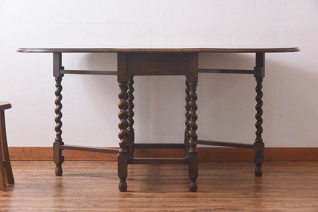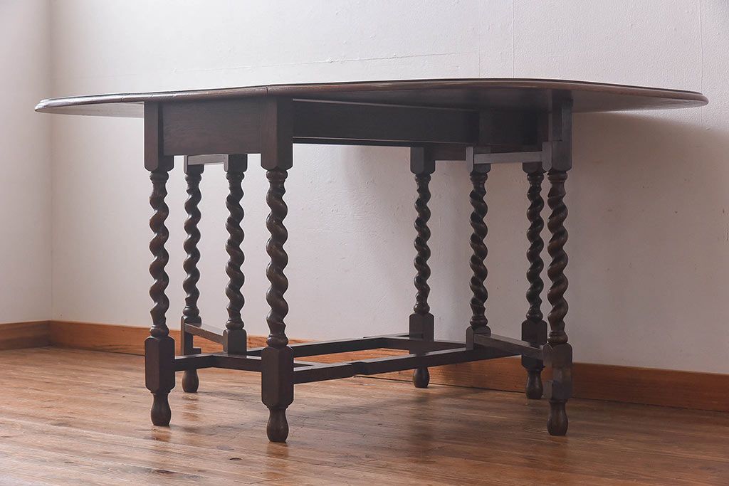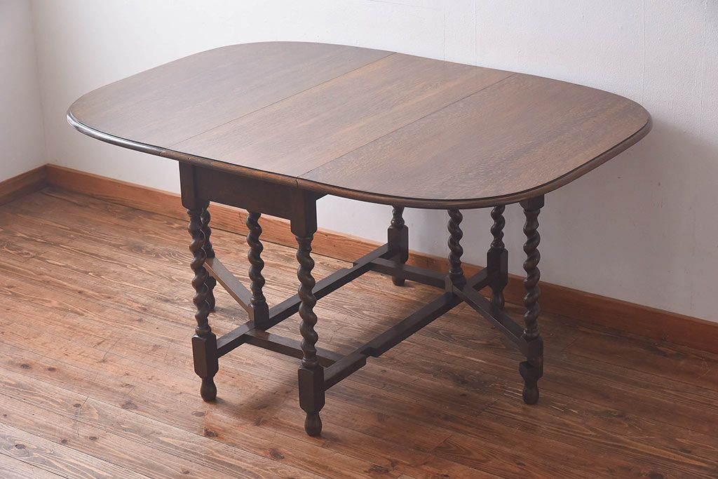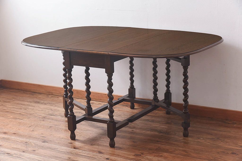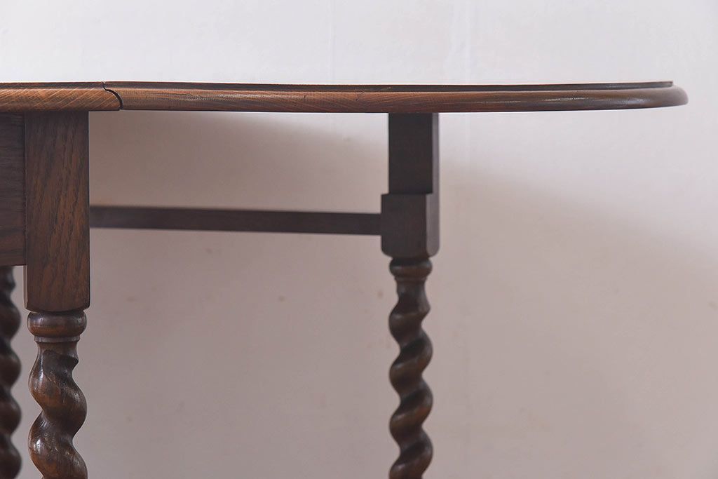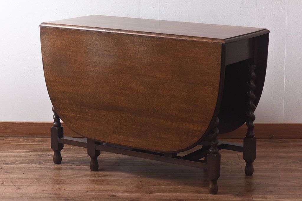 アンティーク家具 アンティーク オーク材製 ツイストレッグが上品な印象のバタフライテーブル(エクステンションテーブル、 ダイニングテーブル)