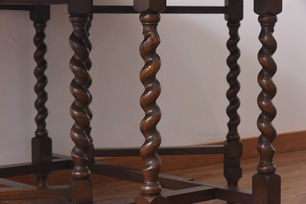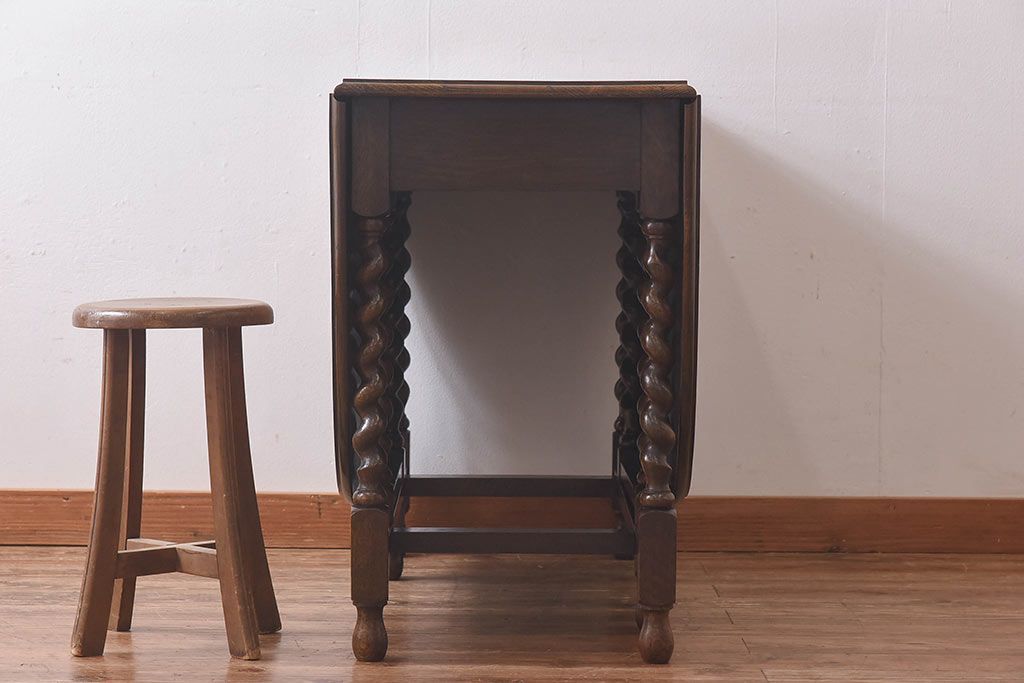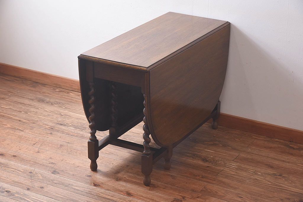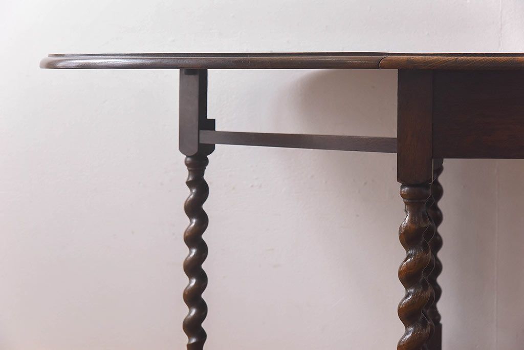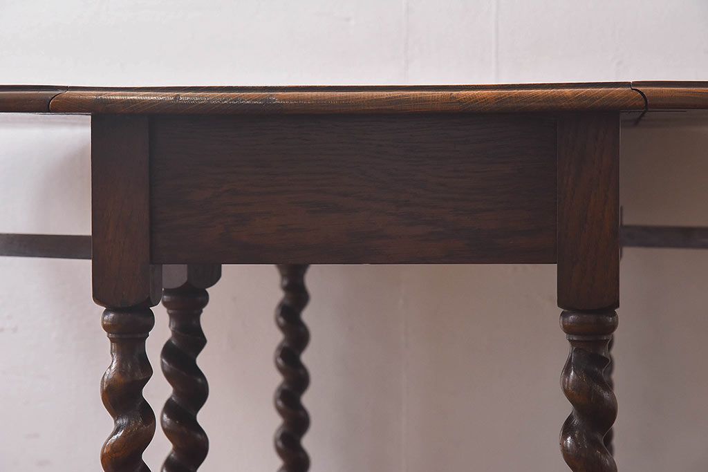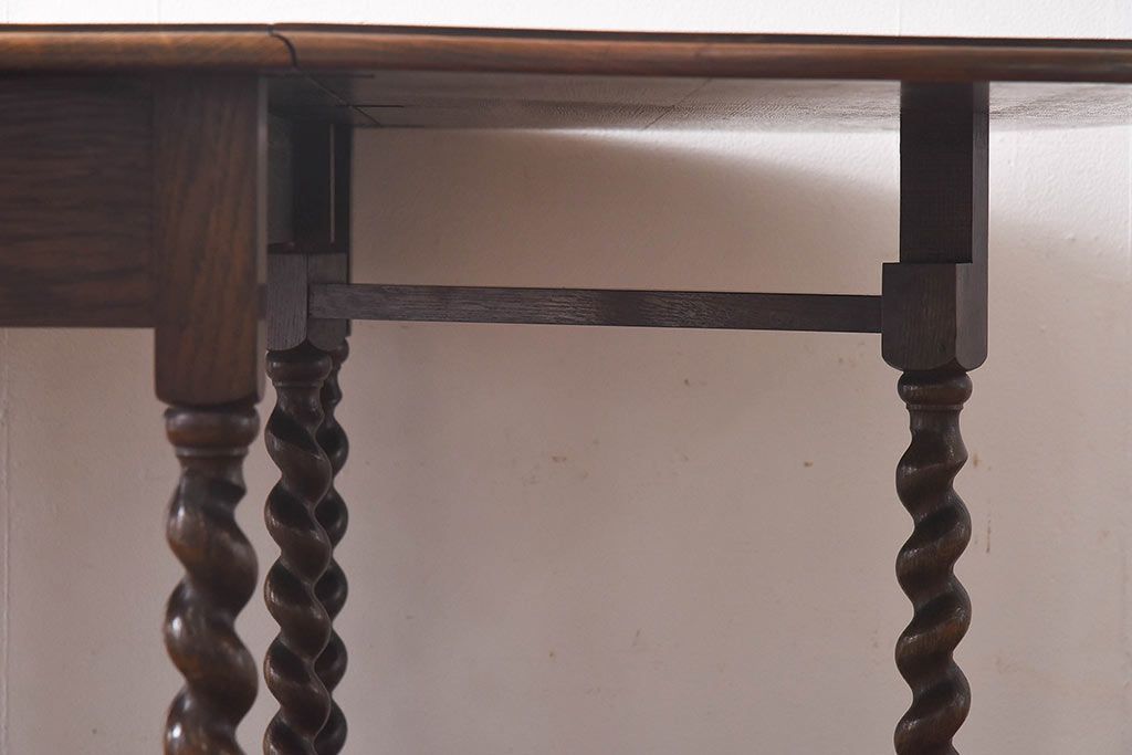 アンティーク家具 アンティーク オーク材製 ツイストレッグが上品な印象のバタフライテーブル(エクステンションテーブル、 ダイニングテーブル)