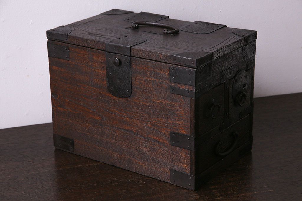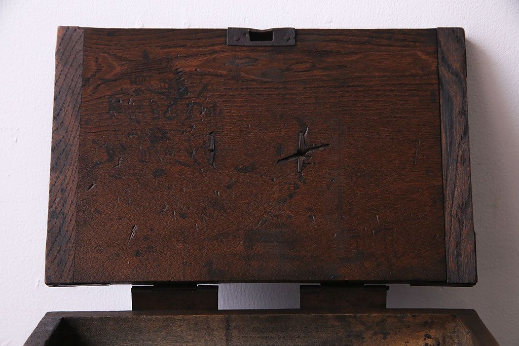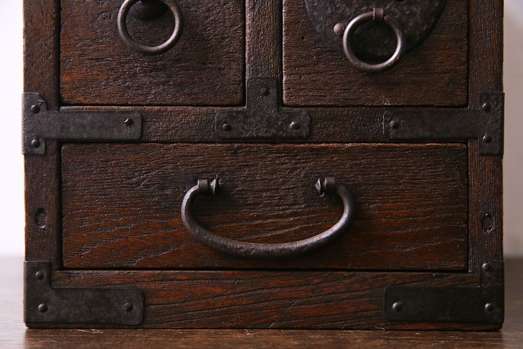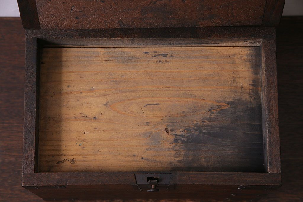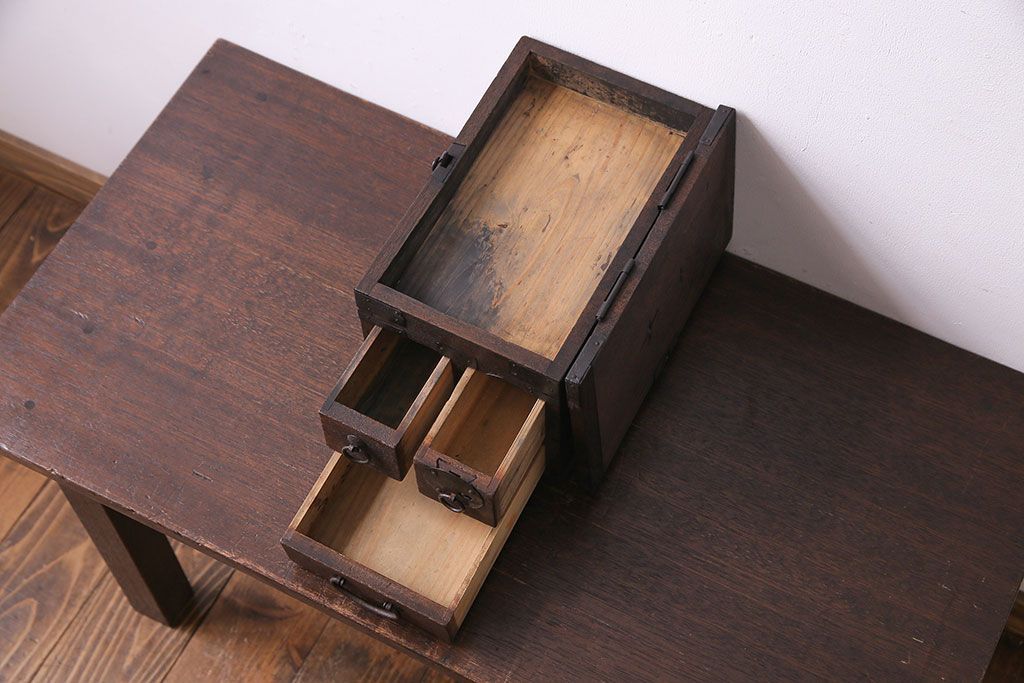 小物収納・トランク> 小引き出し > アンティーク雑貨 和製アンティーク 栓材 古さを感じさせる木の風合いが魅力的な硯箱(小引き出し、小物入れ、木箱)