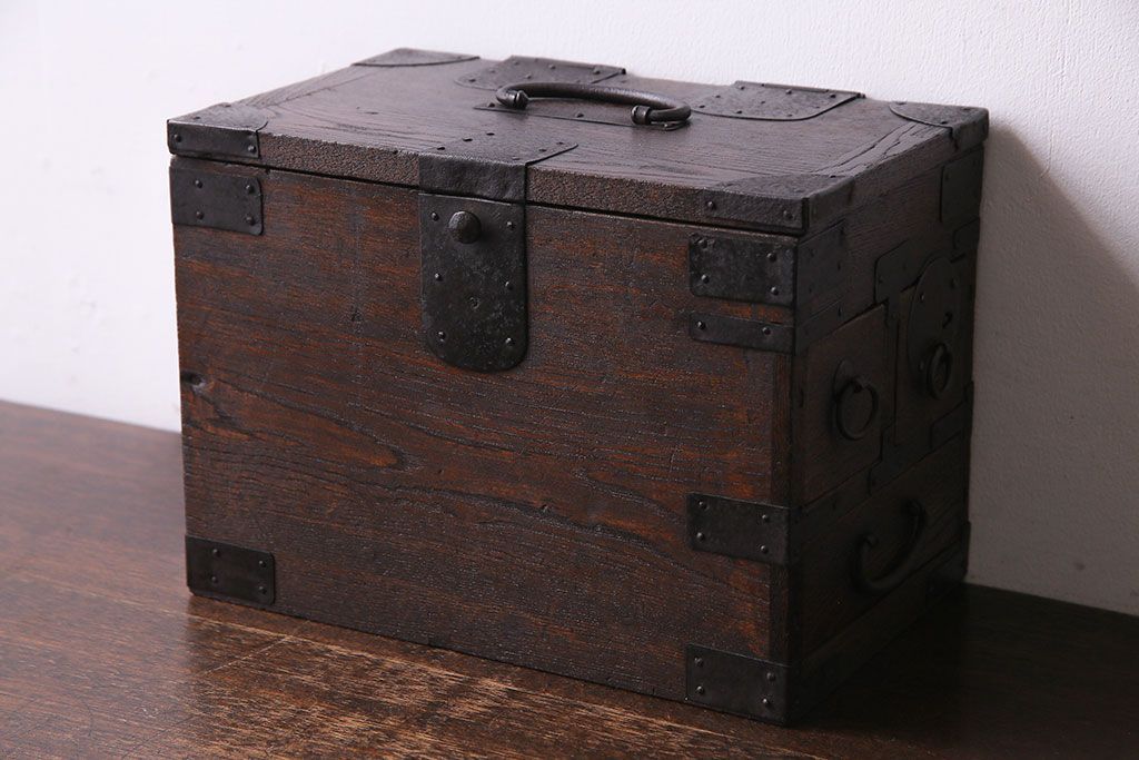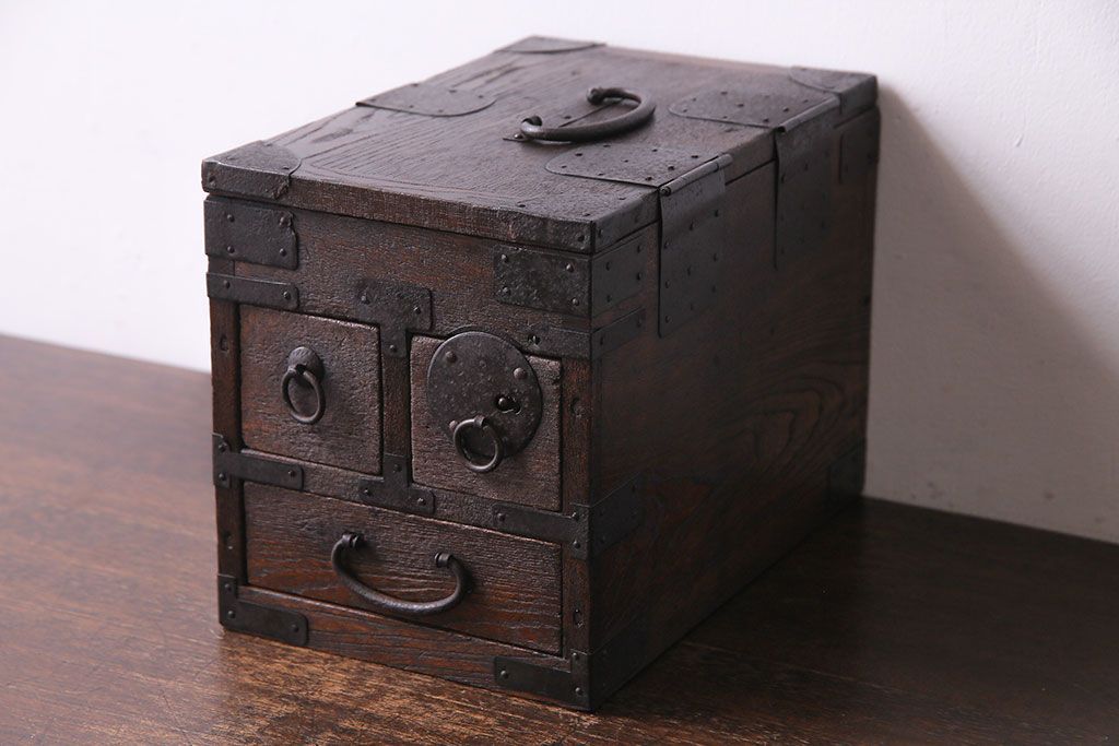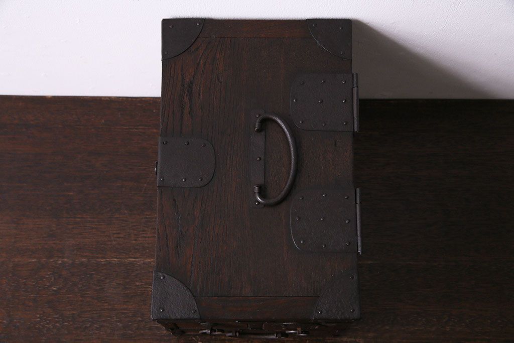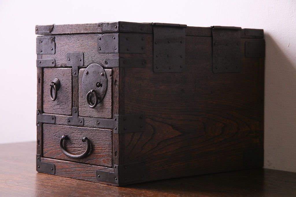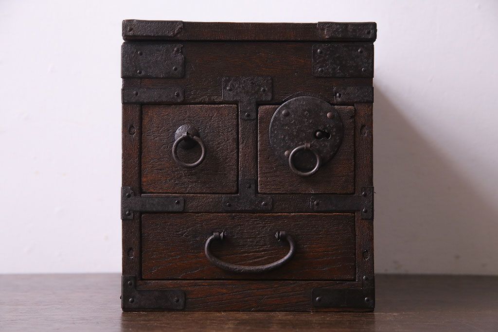 小物収納・トランク> 小引き出し > アンティーク雑貨 和製アンティーク 栓材 古さを感じさせる木の風合いが魅力的な硯箱(小引き出し、小物入れ、木箱)