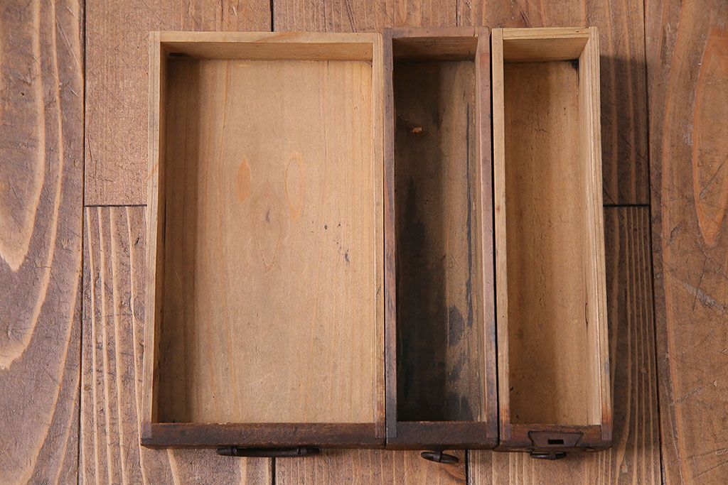 アンティーク雑貨 和製アンティーク 栓材 古さを感じさせる木の風合いが魅力的な硯箱(小引き出し、小物入れ、木箱)