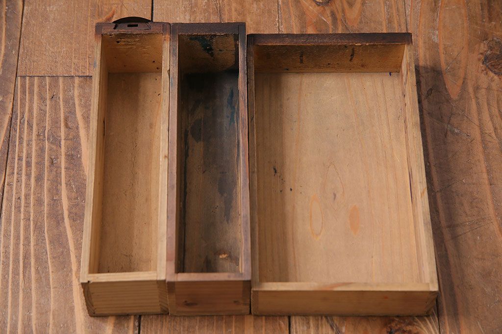 小物収納・トランク> 木箱 > アンティーク雑貨 和製アンティーク 栓材 古さを感じさせる木の風合いが魅力的な硯箱(小引き出し、小物入れ、木箱)