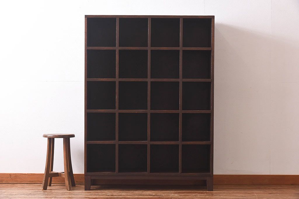 レトロ家具 昭和レトロ 5×4マス 正方形のマス目がすっきりとした印象の収納棚(陳列棚、飾り棚、オープンラック)(1)