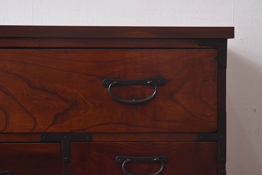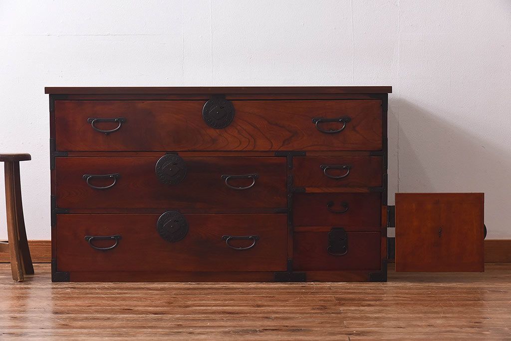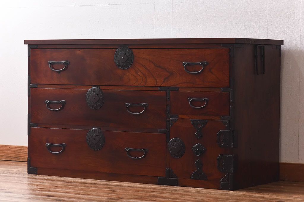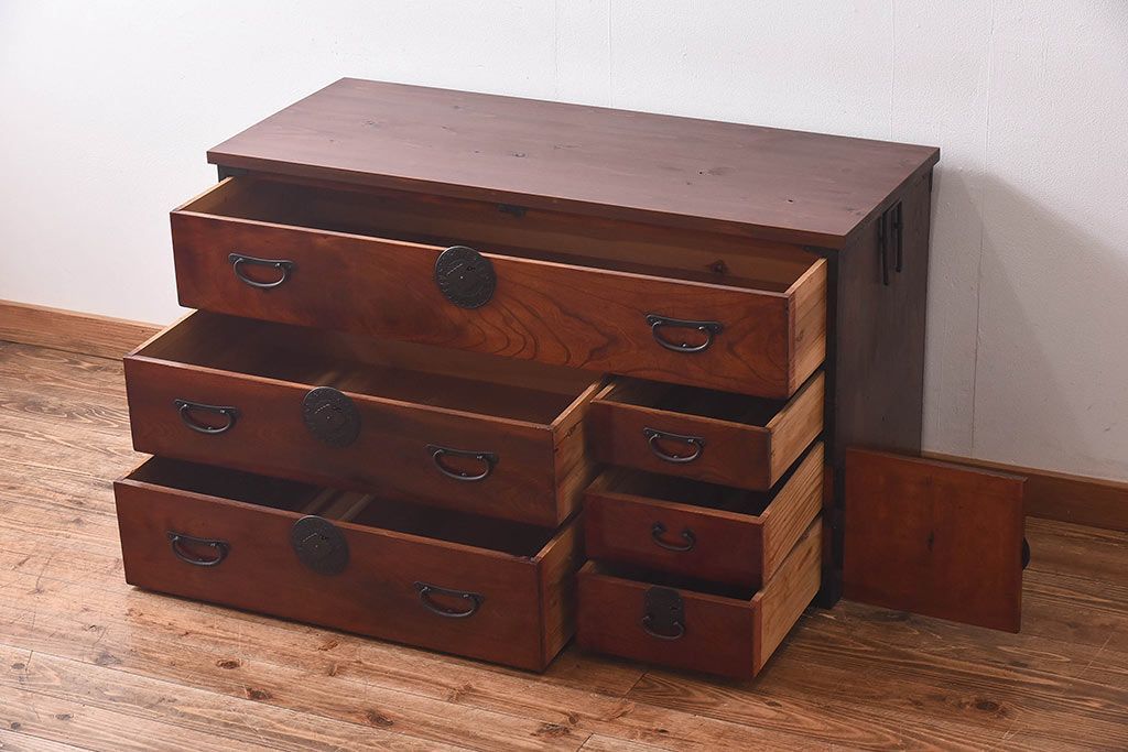 アンティーク家具 和製アンティーク 前面ケヤキ材 相馬箪笥をリメイクしたローボード(ローチェスト、引き出し、リビングボード)