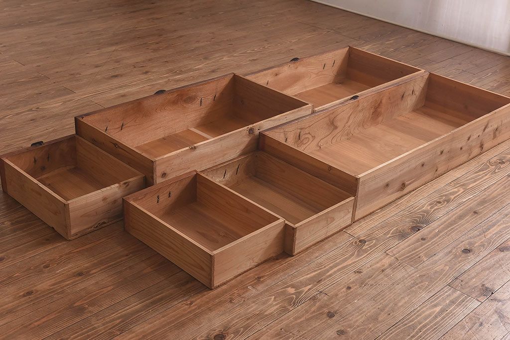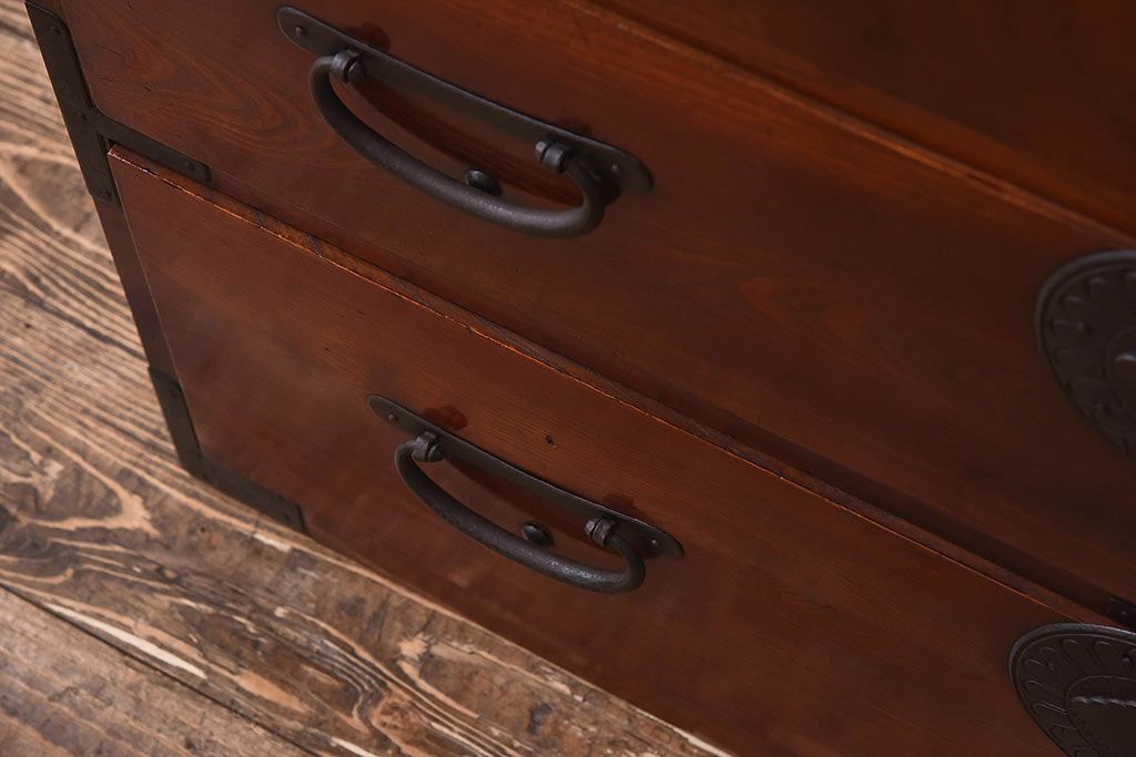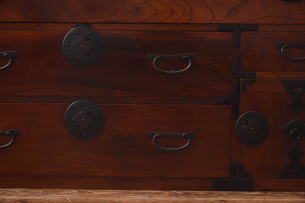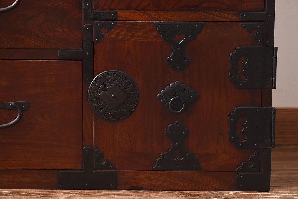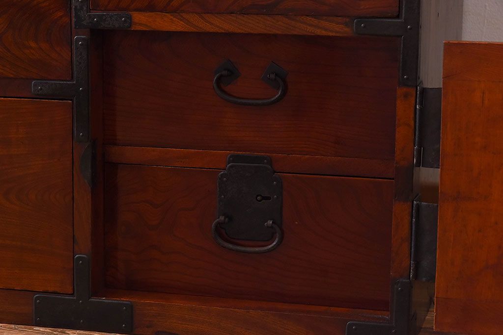 アンティーク家具 和製アンティーク 前面ケヤキ材 相馬箪笥をリメイクしたローボード(ローチェスト、引き出し、リビングボード)