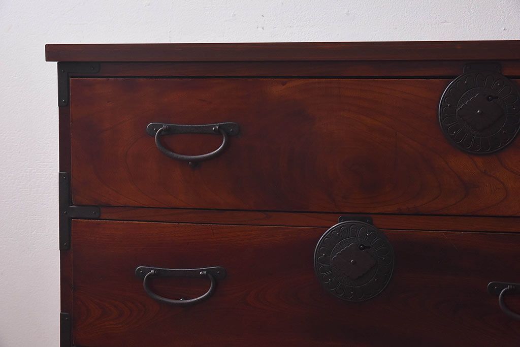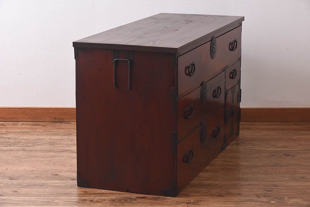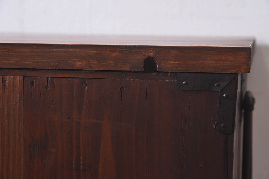 ラフジュ工房> 和箪笥> 衣装箪笥 > アンティーク家具 和製アンティーク 前面ケヤキ材 相馬箪笥をリメイクしたローボード(ローチェスト、引き出し、リビングボード)