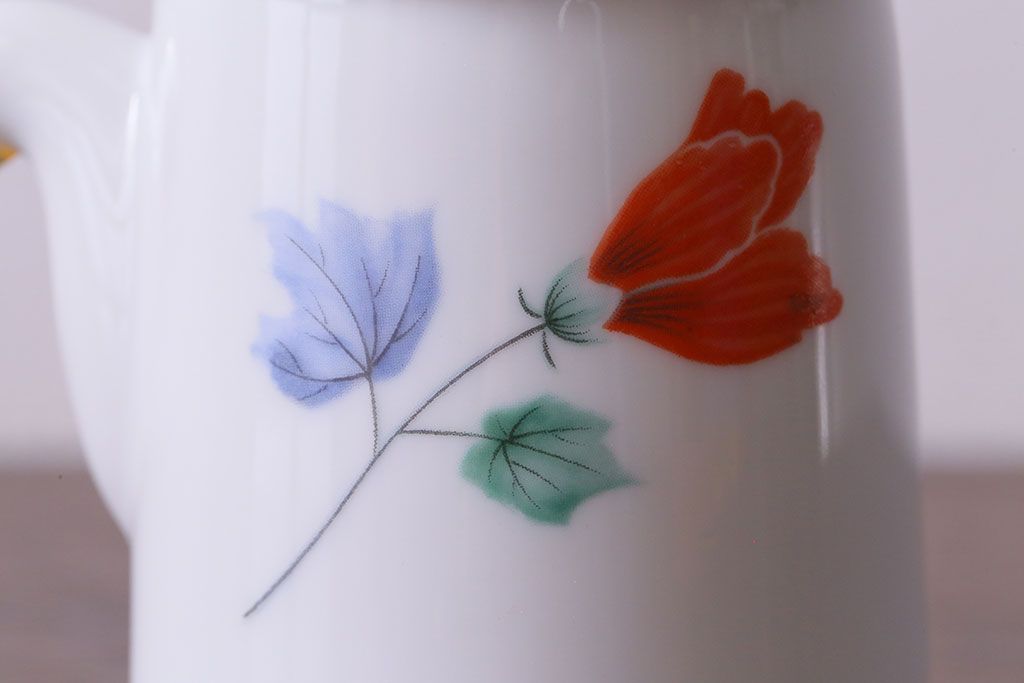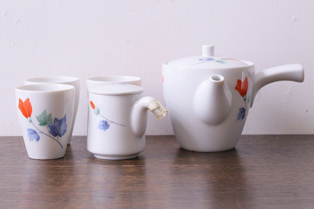 昭和中期 日本陶器・ノリタケ(則武)芙蓉柄急須・湯飲み・しょうゆ差しセット