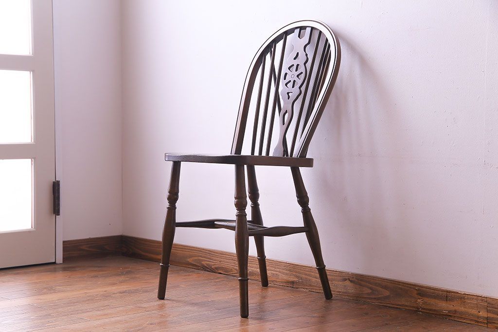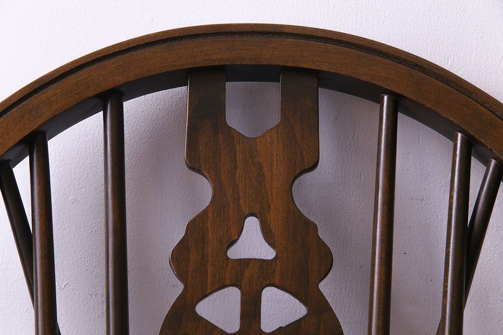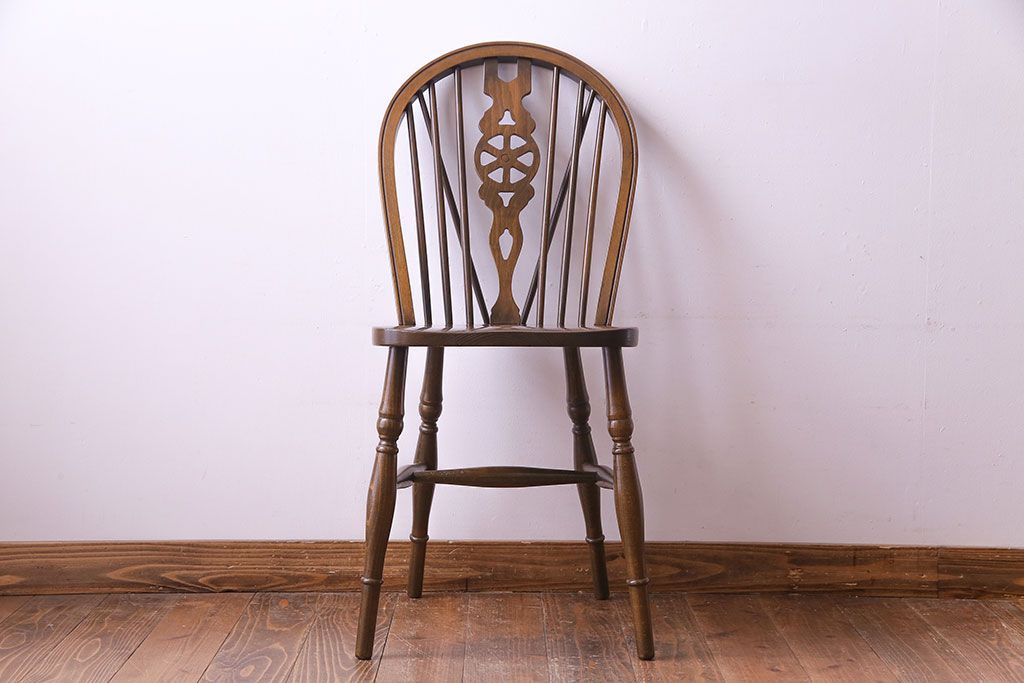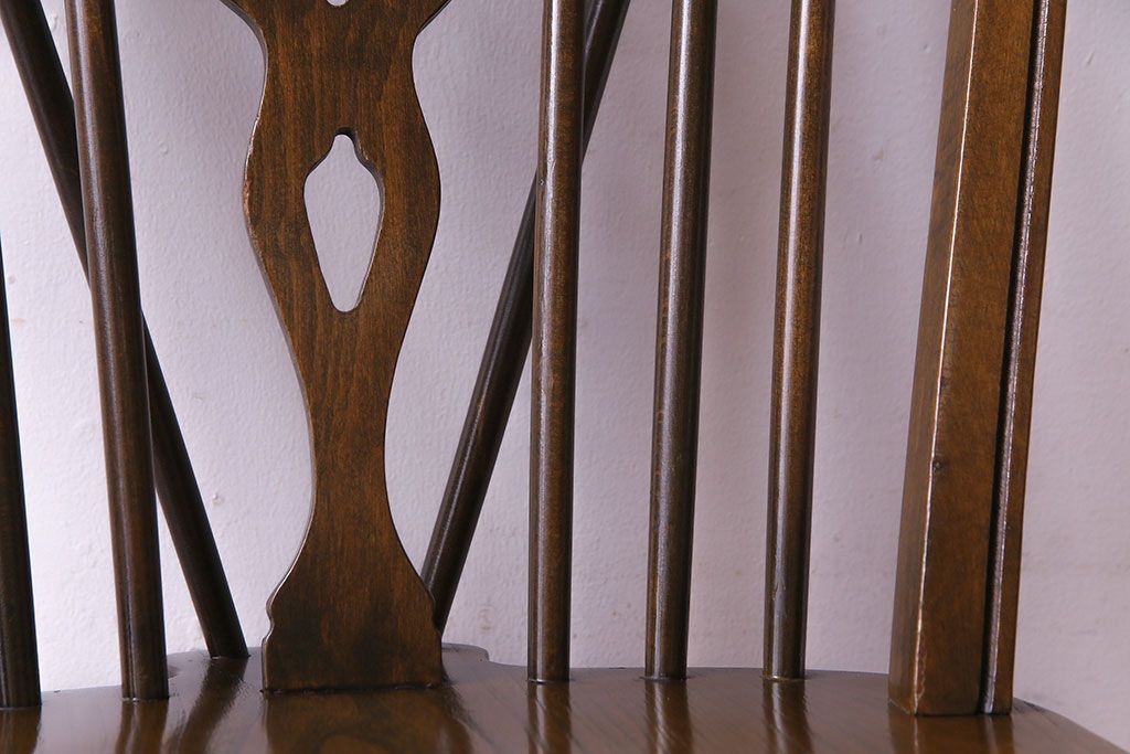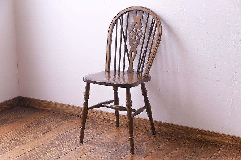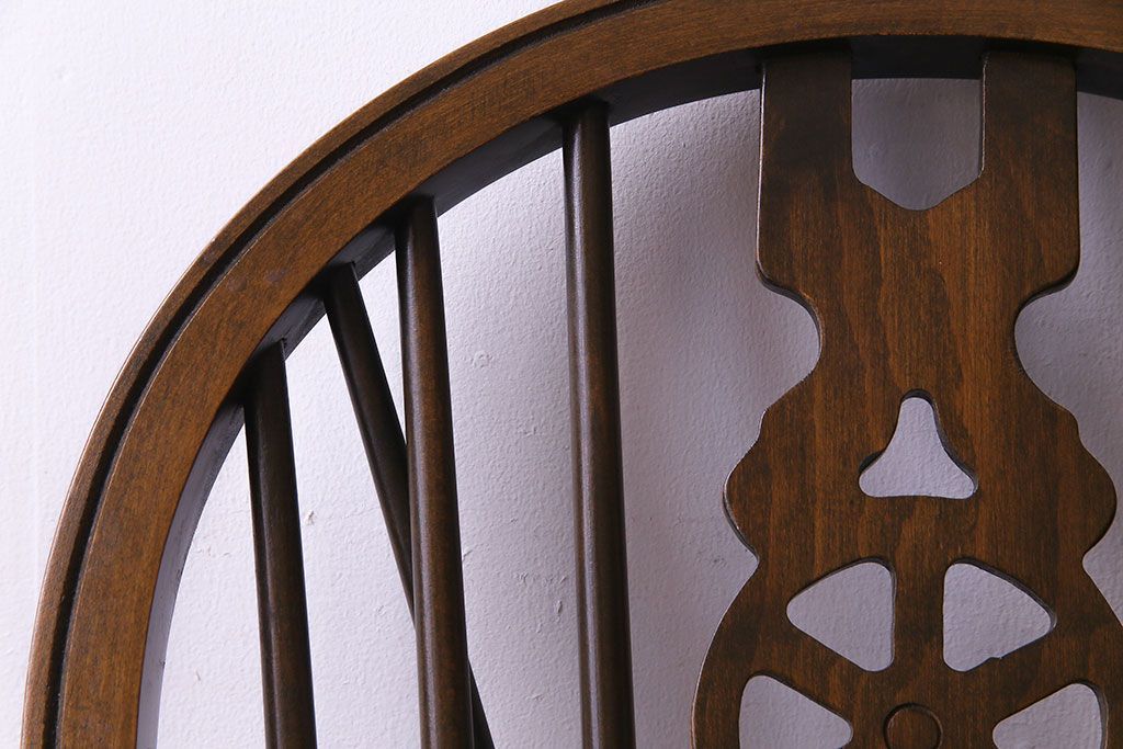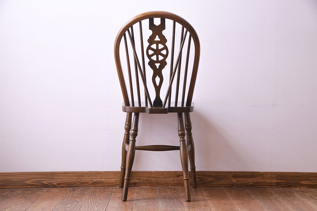 ヴィンテージ家具 イギリスビンテージ アーチ形の背もたれが美しいホイールバックチェア(カントリーチェア、ダイニングチェア、イス)(3)