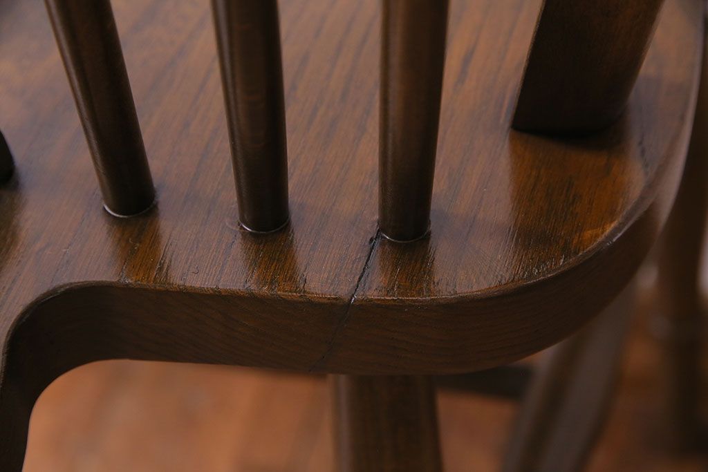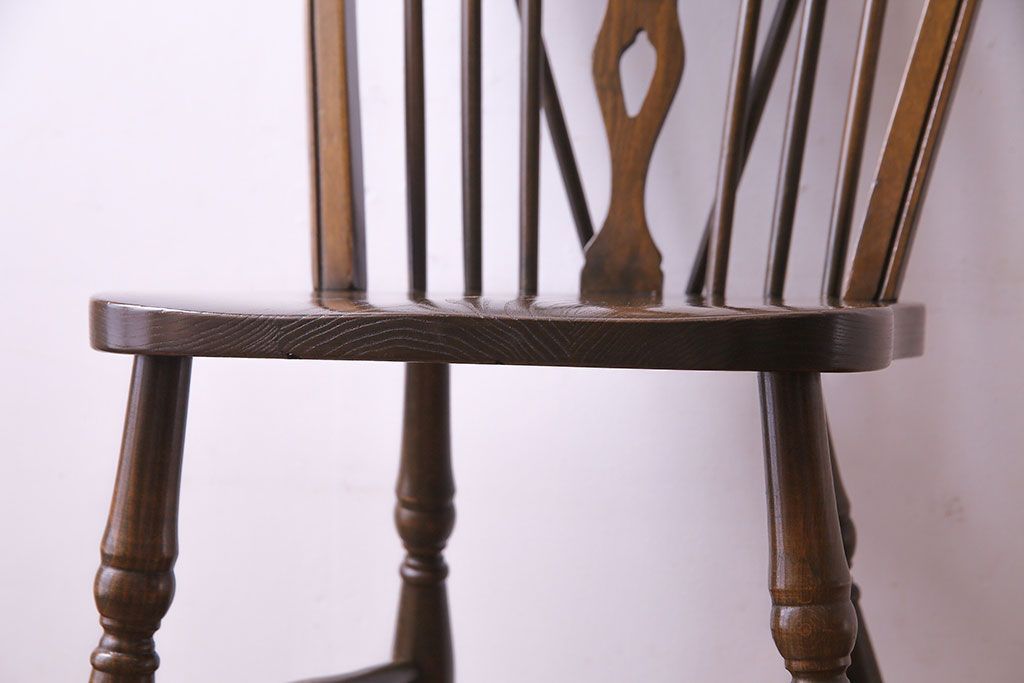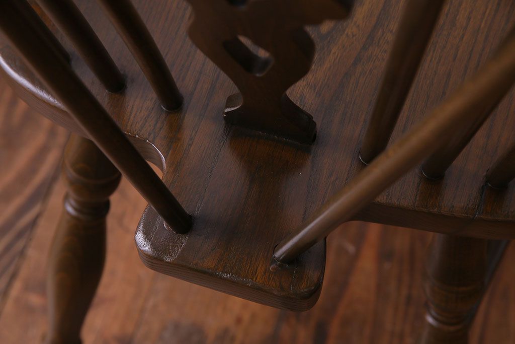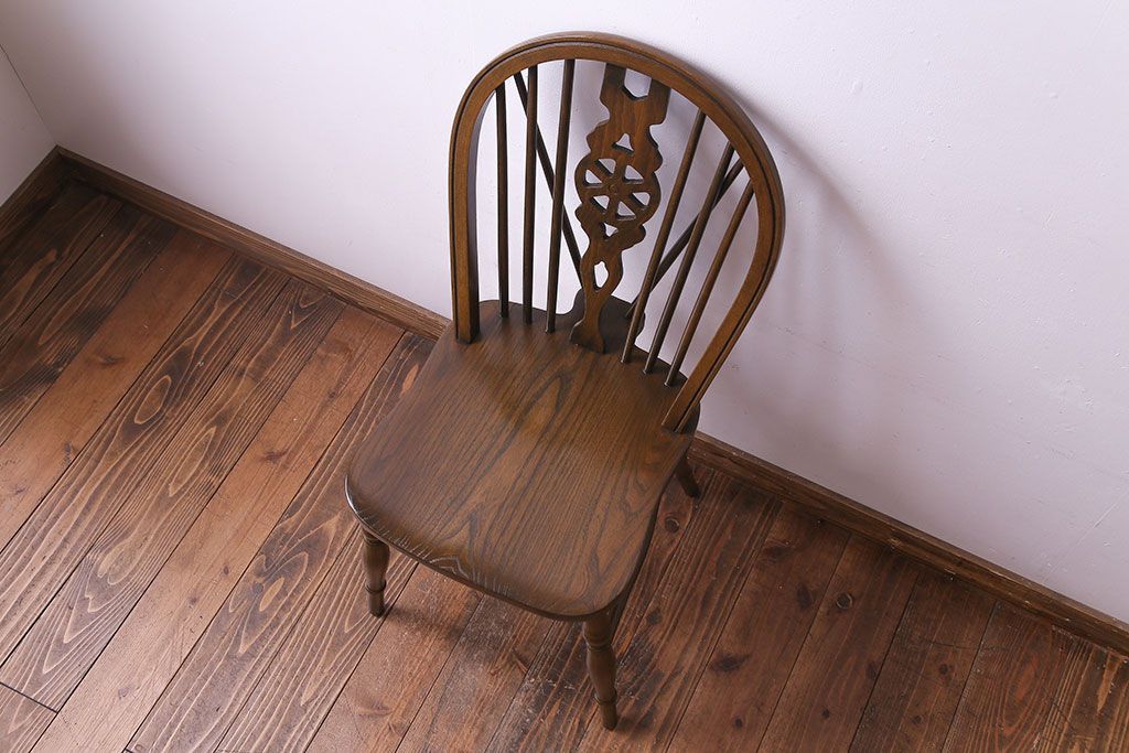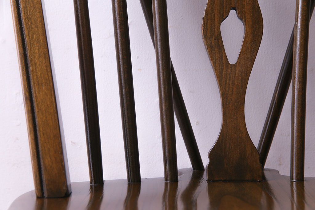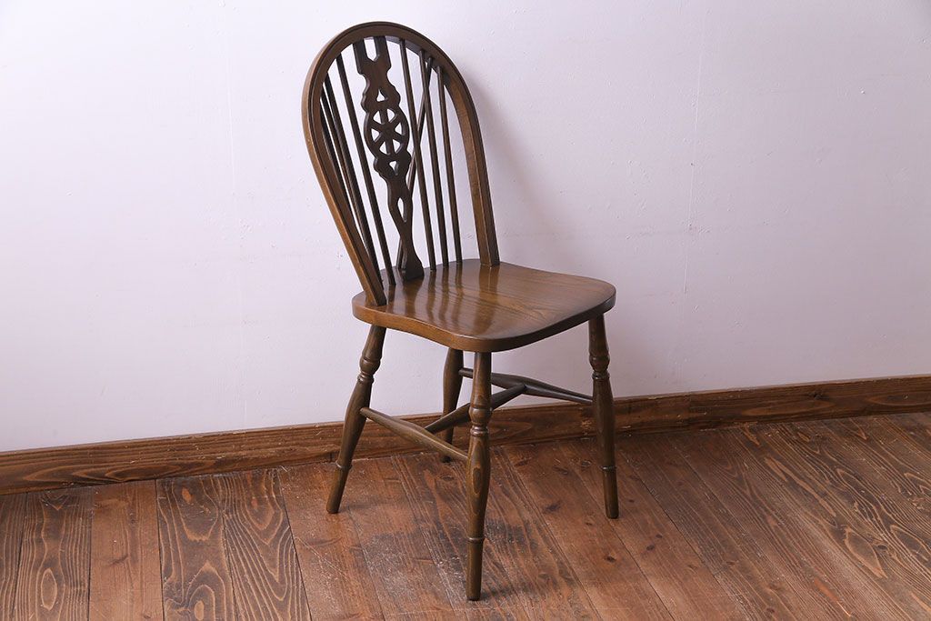 ヴィンテージ家具 イギリスビンテージ アーチ形の背もたれが美しいホイールバックチェア(カントリーチェア、ダイニングチェア、イス)(3)