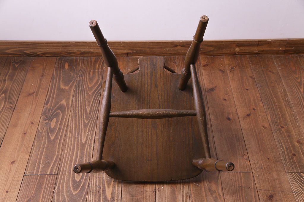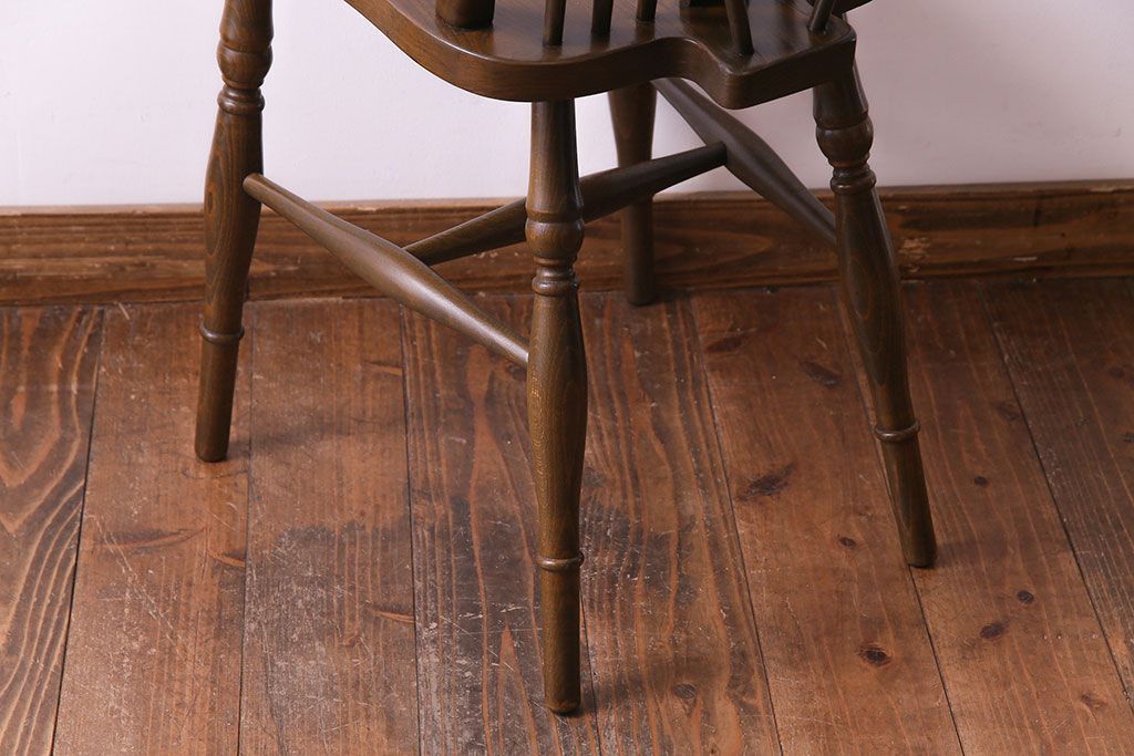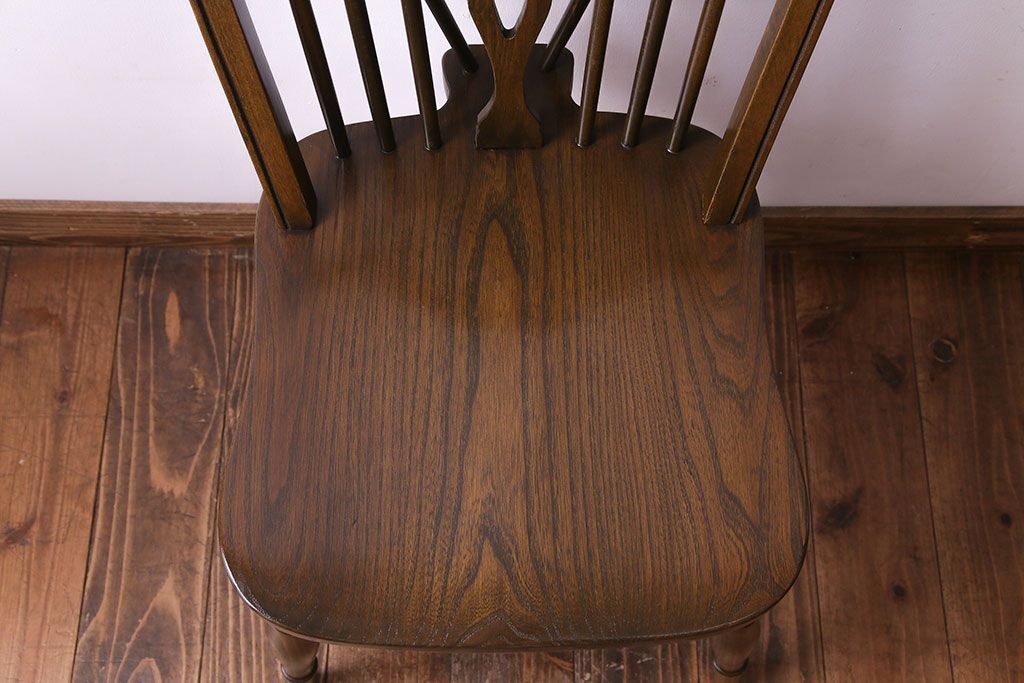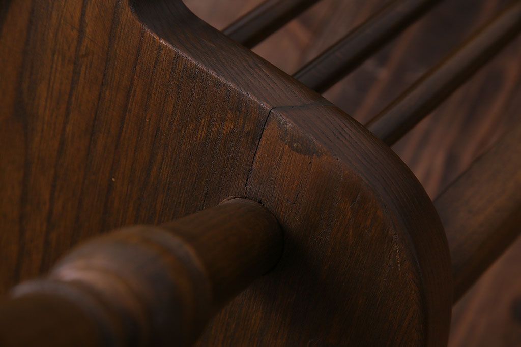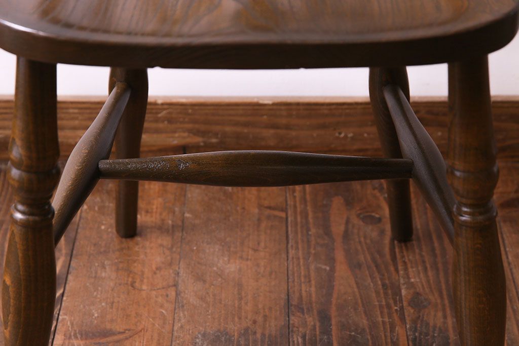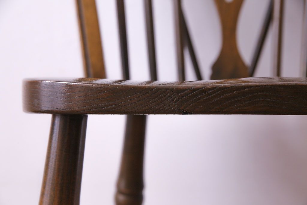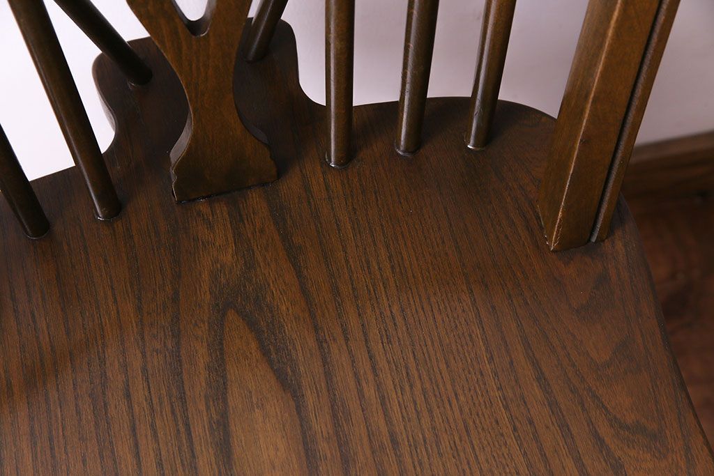 ヴィンテージ家具 イギリスビンテージ アーチ形の背もたれが美しいホイールバックチェア(カントリーチェア、ダイニングチェア、イス)(3)