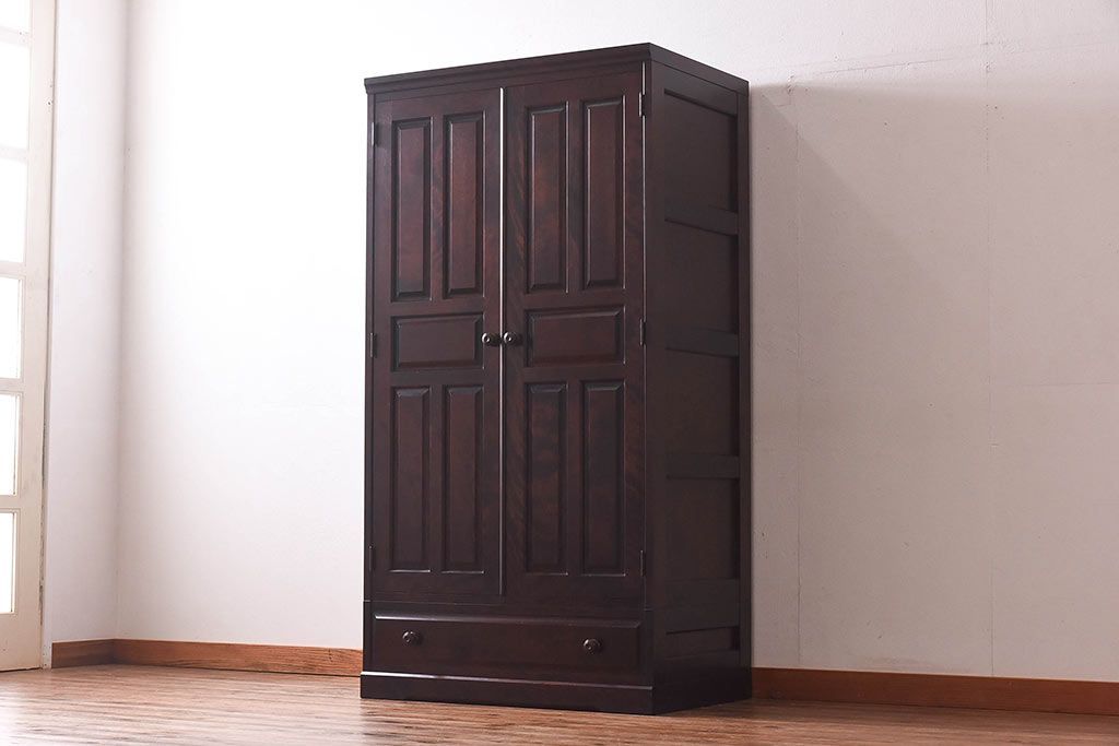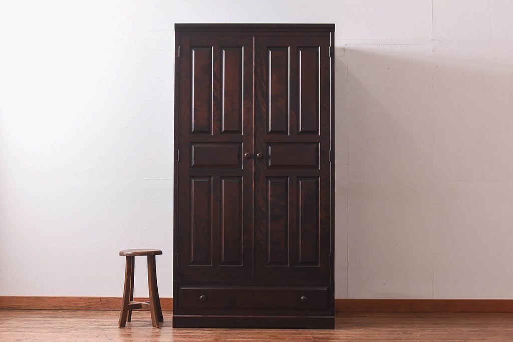 ラフジュ工房> ワードローブ・ロッカー> ワードローブ > 中古 北海道民芸家具 上品ですっきりとした印象の#516ワードローブ(収納棚、洋服タンス)
