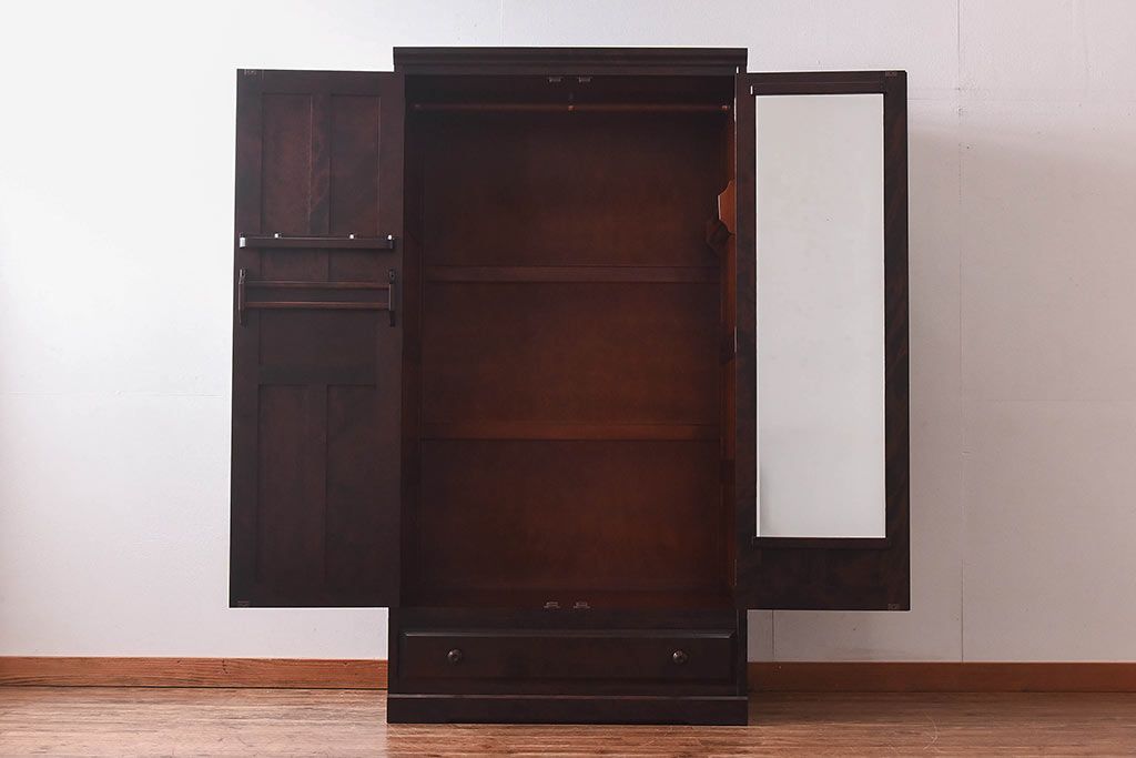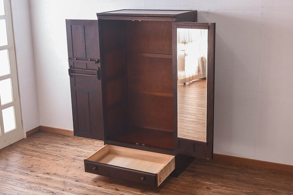 中古 北海道民芸家具 上品ですっきりとした印象の#516ワードローブ(収納棚、洋服タンス)